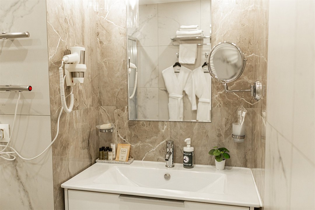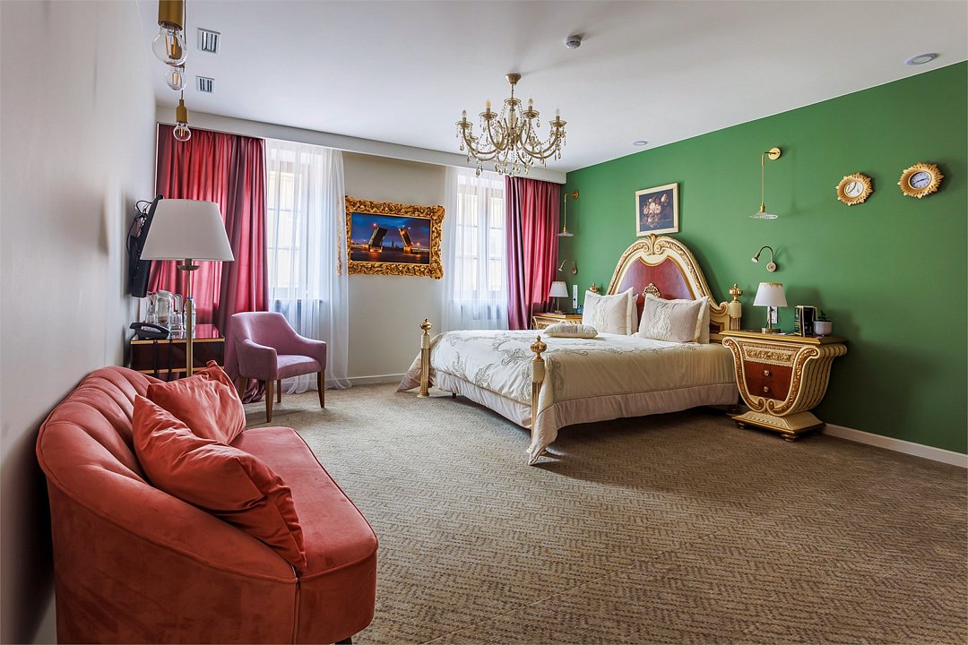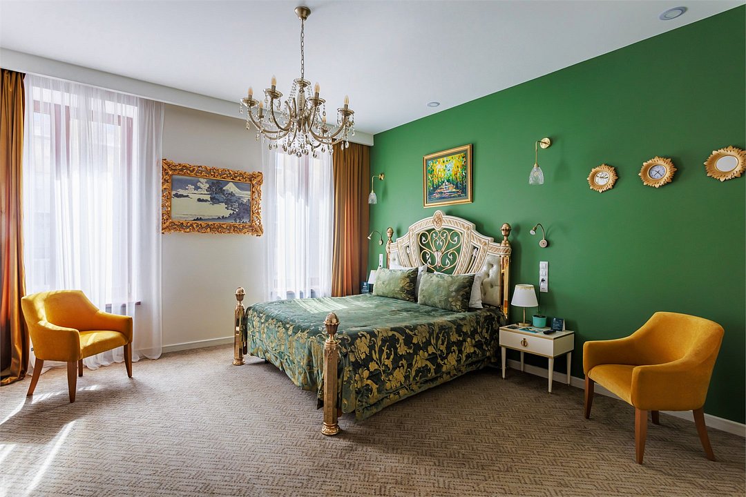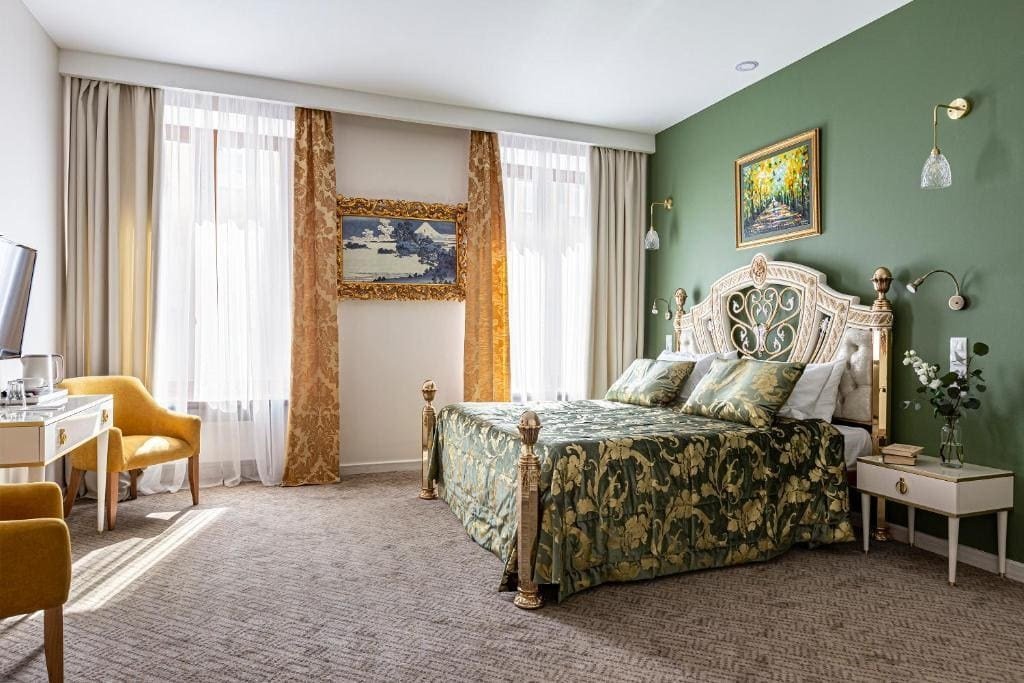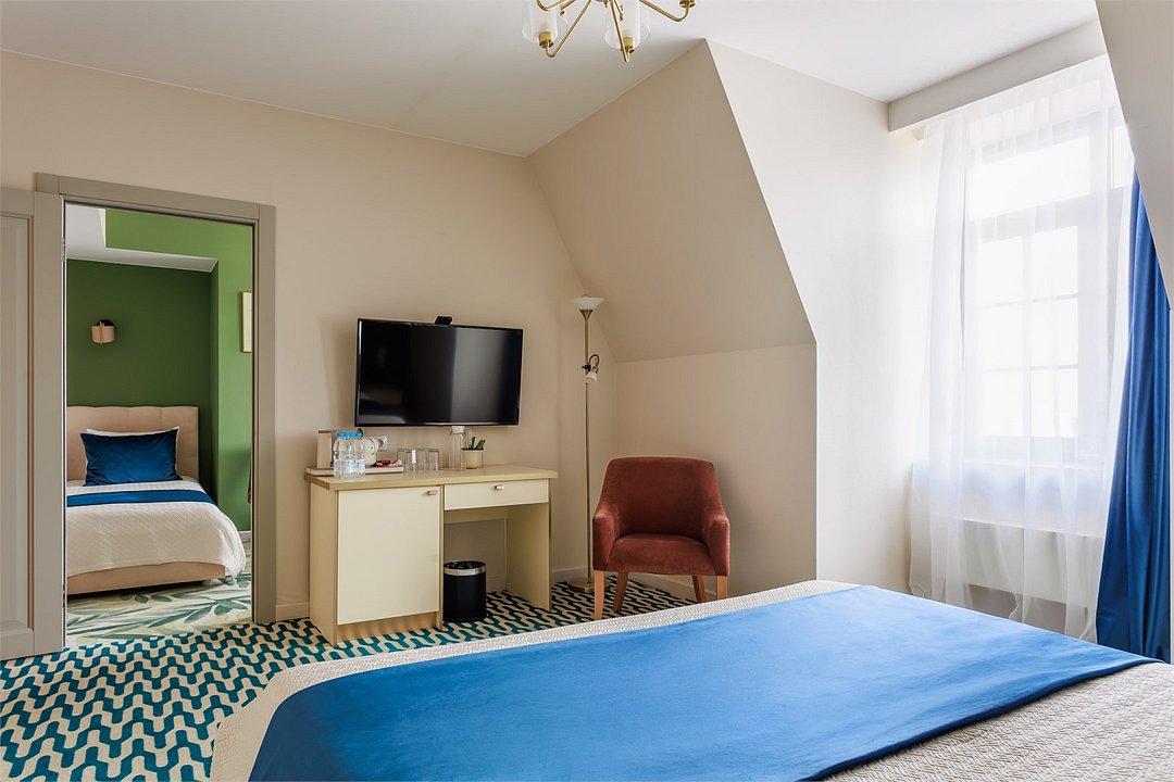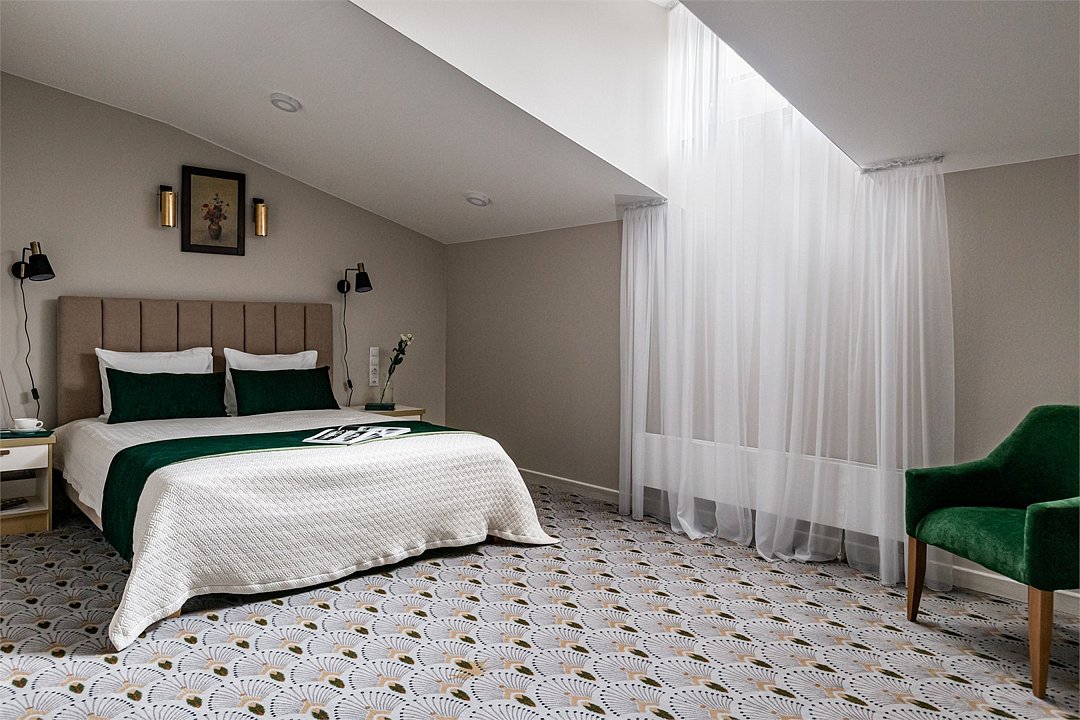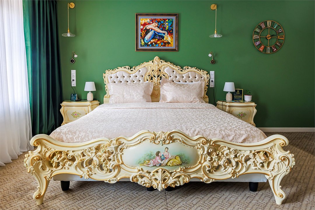 Изысканные и просторные номера для истинных ценителей роскоши. В классическом интерьере великолепного номера гармонично уживаются элементы современного дома. Атмосфера гармонии и уюта – здесь всё способствует беззаботному отдыху.Услуги и удобства