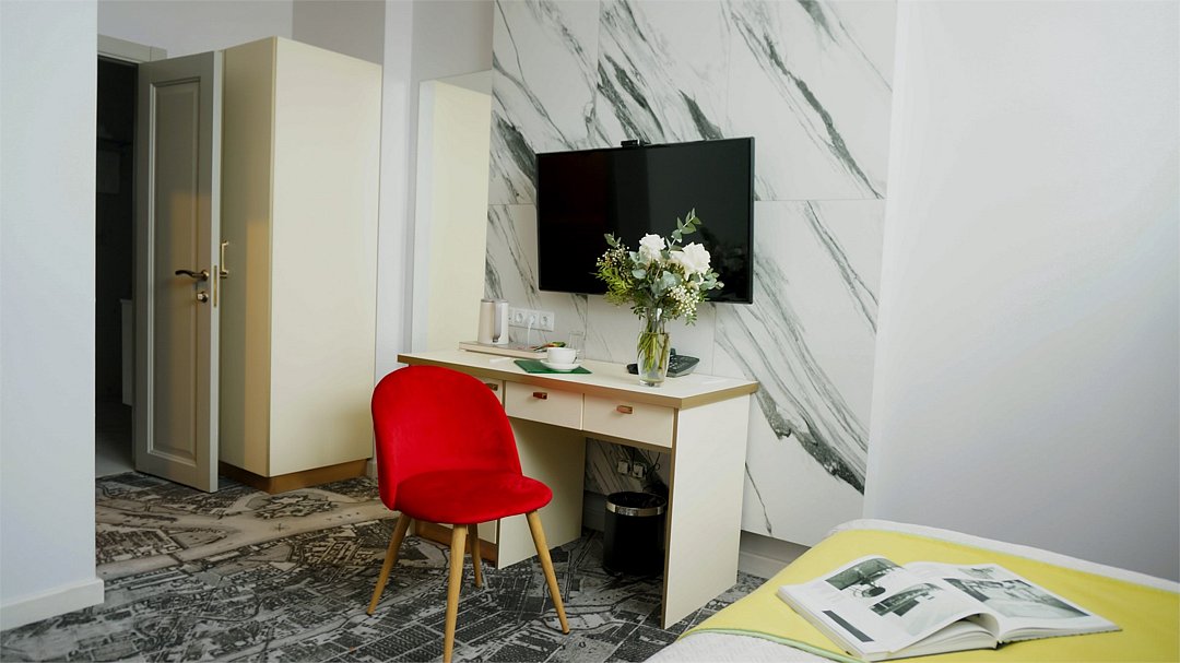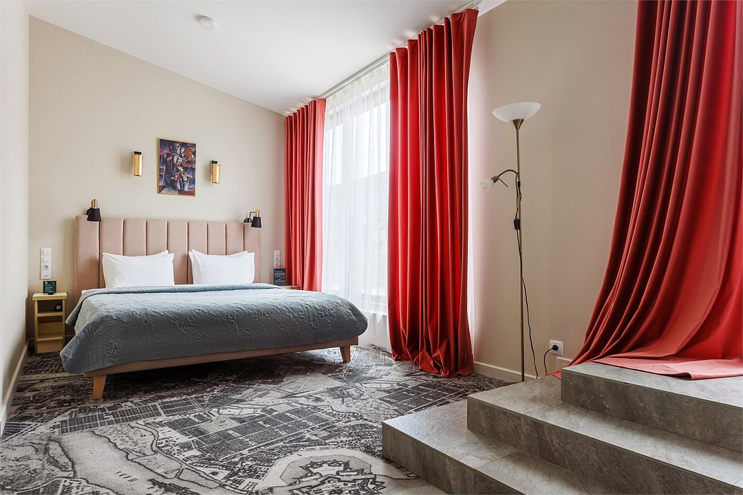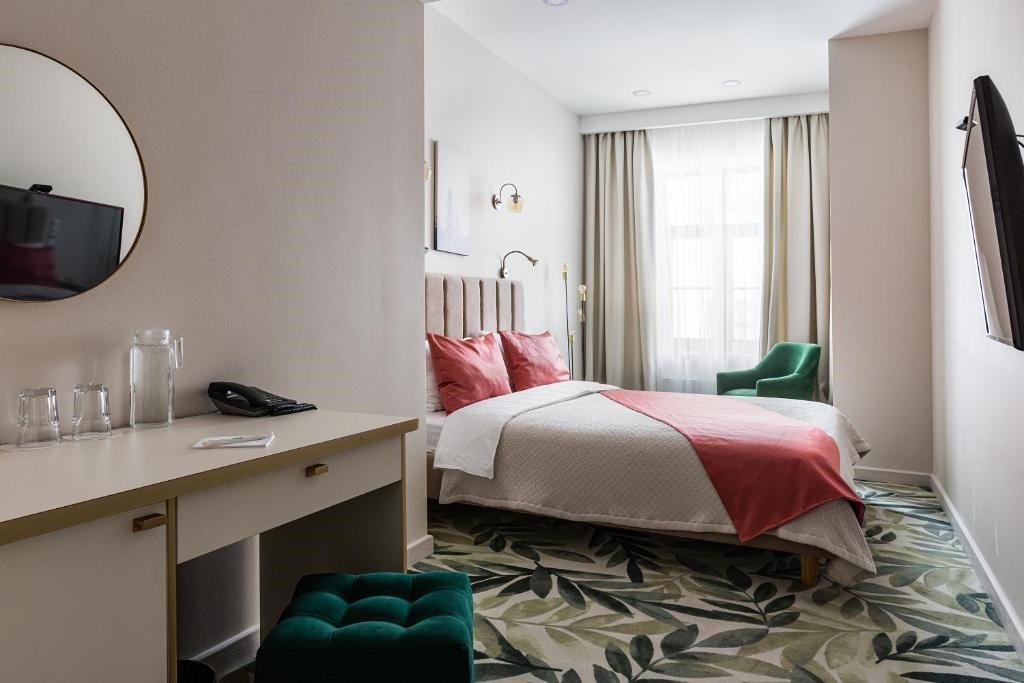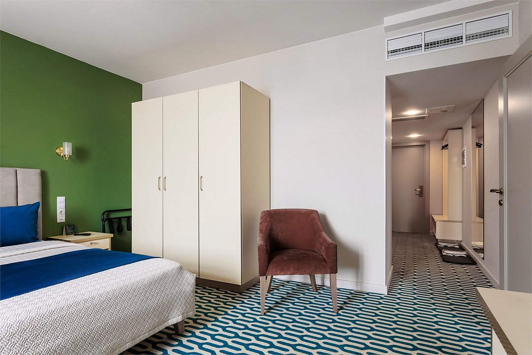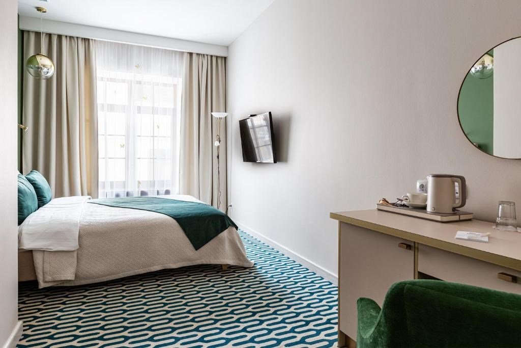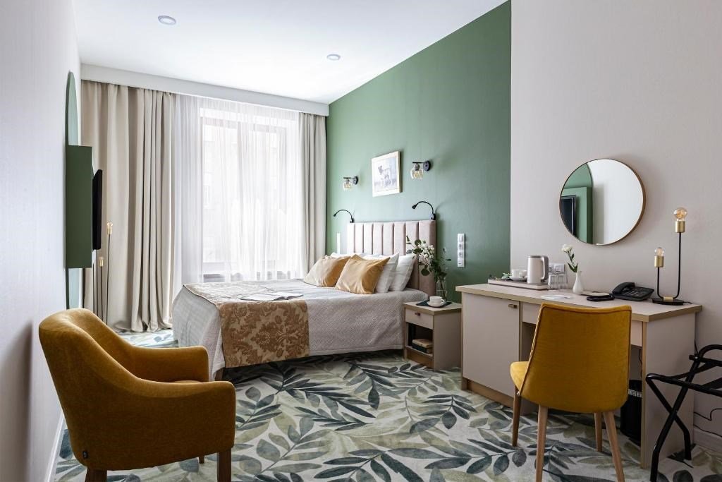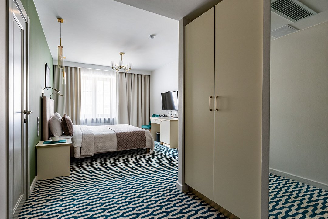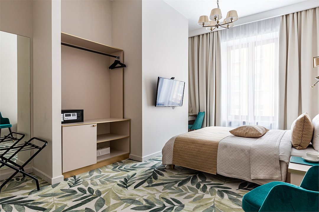 Более просторные и изящные в сравнении с номерами стандартной категории, номера категории Улучшенный стандарт призваны обеспечить качественный комфортный отдых любому гостю. Приятные дизайнерские мелочи, выделяющие этот тип номеров среди остальных, удобства, необходимые для работы и отдыха. В номерах данной категории могут размещаться один или два гостя. В данных номерах установлена 1 двуспальная кровать. В номерах данной категории могут размещаться один или два гостя. В некоторых номерах возможно наличие межкомнатной двери с высоким уровнем шумоизоляции.Услуги и удобства