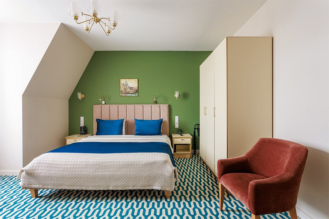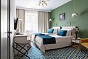 Просторные номера категории Полулюкс (Делюкс) состоят из спальни и собственной ванной комнаты со всеми необходимыми туалетными принадлежностями и феном. В них вы найдете всё необходимое для спокойного и уютного отдыха. В номерах данной категории могут размещаться один или два гостя. Некоторые номера отличаются наличием мансардного окна.Услуги и удобства
