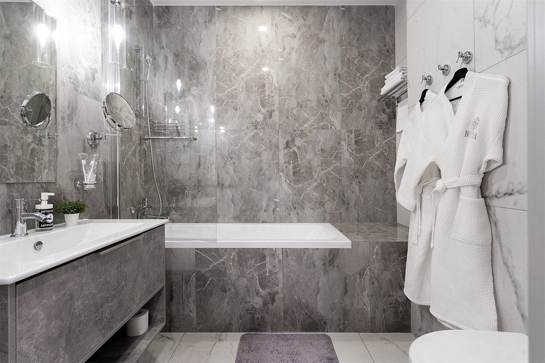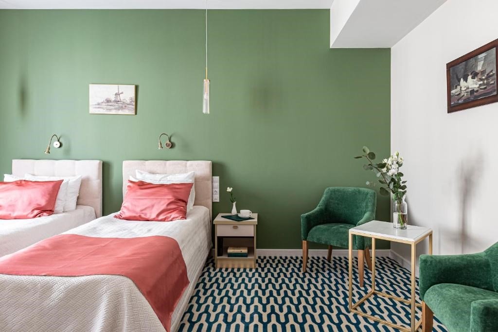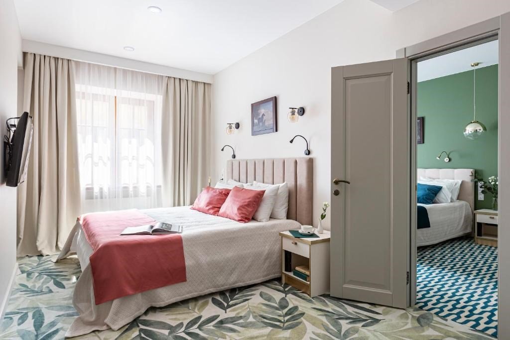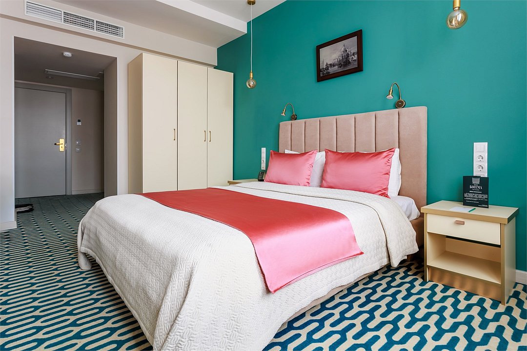 Для путешествующих большой компанией в номерном фонде отеля "Богема" специально отведены просторные смежные номера, позволяющие разместить до 4 человек. Данный номер состоит из двух номеров с раздельными спальнями и двумя ванными комнатами.Услуги и удобства