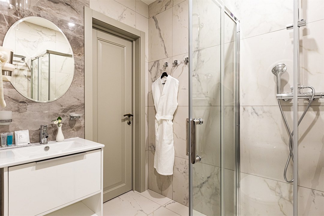 кабельное телевидение, Wi-Fi, телефон, кондиционер, настольные лампы, фен, система безопасности, электронные замки, кофемашина, ванная комната, банные принадлежности, банные полотенца, тапочки, гигиенические средства, кровать «King size», стулья, шкаф для одежды, вешалки, журнальный столик, багажная тумба, зеркало, эксклюзивная мебель, мини-бар, письменные принадлежности, чайный набор, обслуживание номеров, сейф, чайник, унитаз, мягкая мебель, ковровое покрытие, отопление, душ, вид на город, плиточное покрытие, кресло, высокие потолки, стол, туалетные средства, цифровое тв, телевизор с плоским экраном, мини-холодильник, гостиничная парфюмерия, номер для некурящих, USB-порт, антибактериальное средство для рук, неограниченное посещение СПАВ гостиничном номере