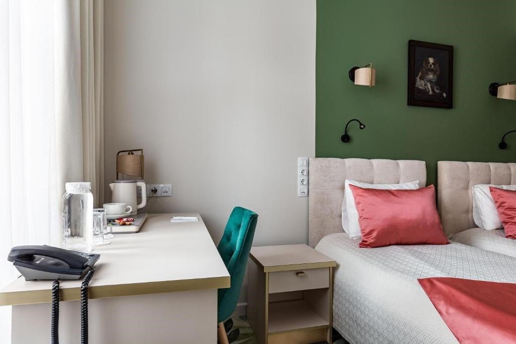 кабельное телевидение, Wi-Fi, телефон, кондиционер, настольные лампы, фен, система безопасности, электронные замки, ванная комната, банные принадлежности, халаты, банные полотенца, тапочки, косметические средства, две односпальные кровати, шкаф для одежды, вешалки, багажная тумба, пуфики, чайный набор, обслуживание номеров, сейф, раковина, мягкая мебель, ковровое покрытие, отопление, душ, вид на город, плиточное покрытие, стул, стол, туалетные средства, телевизор с плоским экраном, мини-холодильник, гостиничная парфюмерия, USB-порт, антибактериальное средство для рук, неограниченное посещение СПАВ гостиничном номере