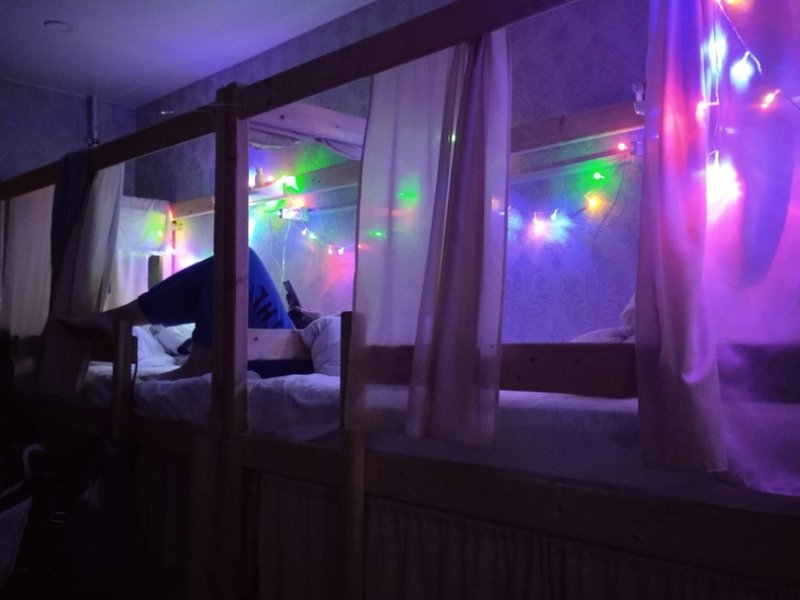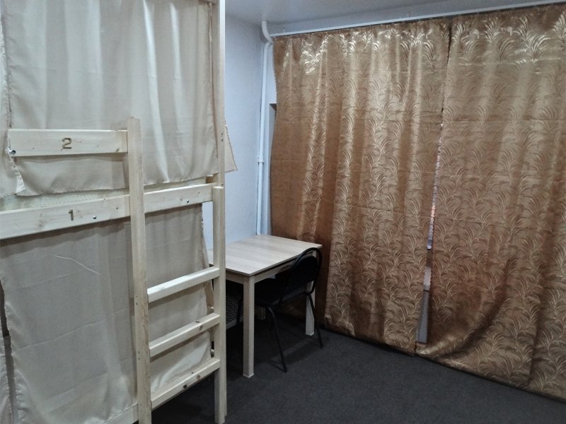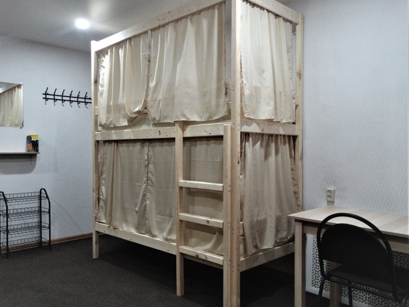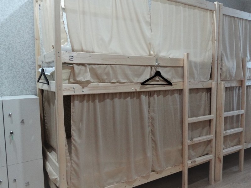 ...четыре двухярусные кровати.Индивидуальные шкафчики,стол,телевизор,зеркало,шторы на каждую кровать,индивидуальные розетки и освещение,плечики для одежды.В номере