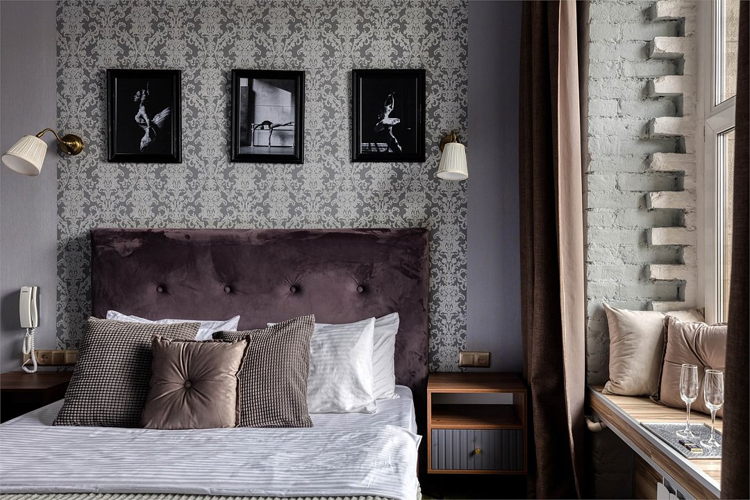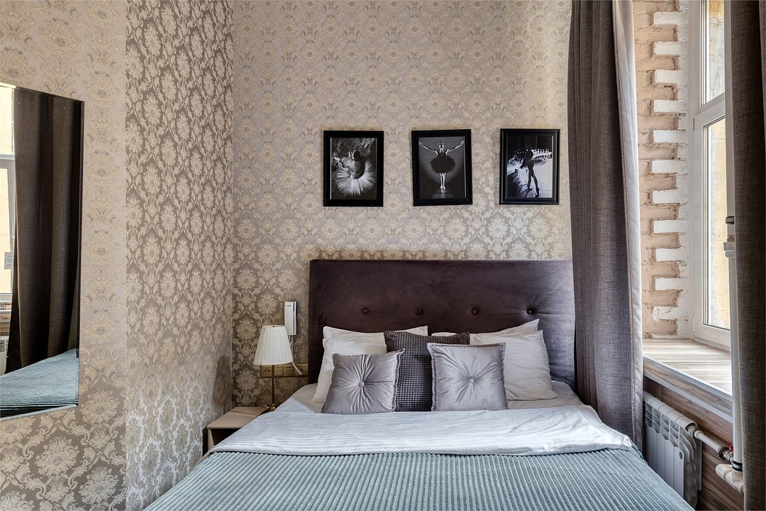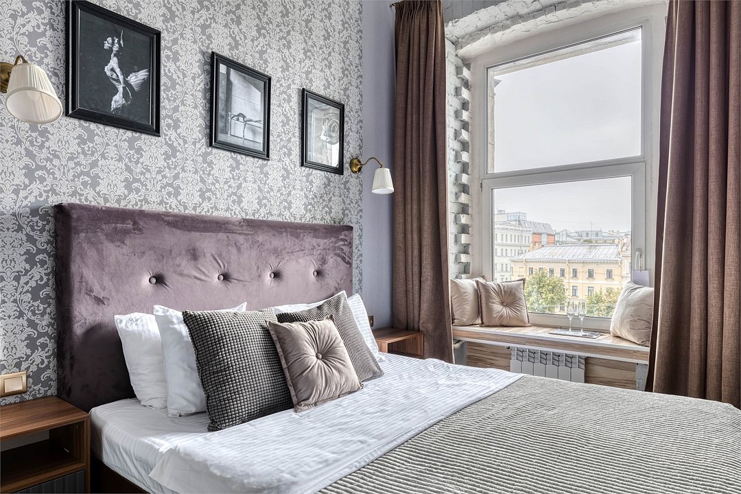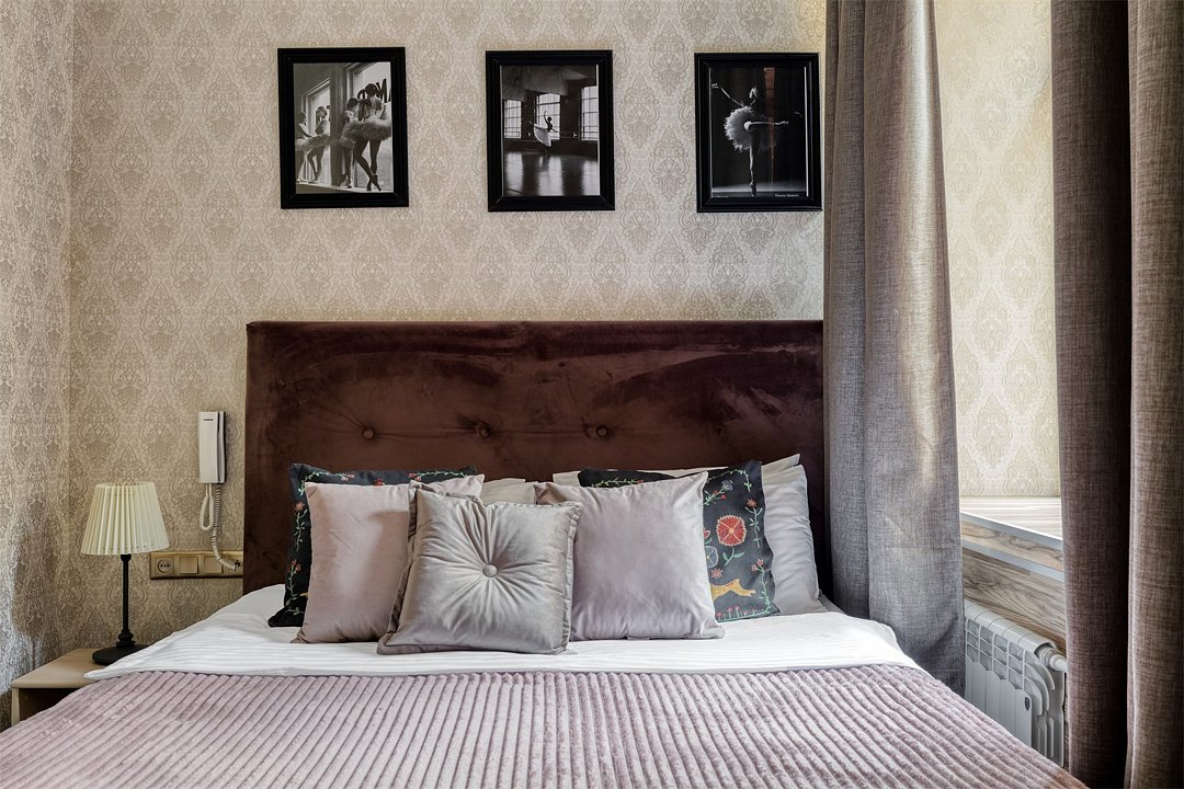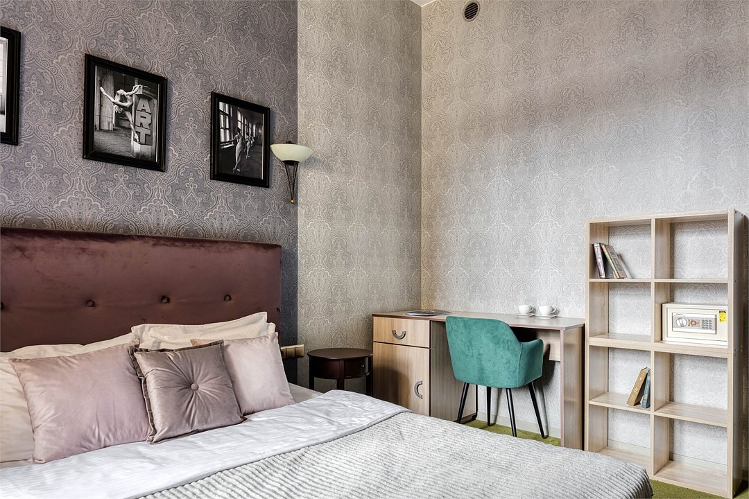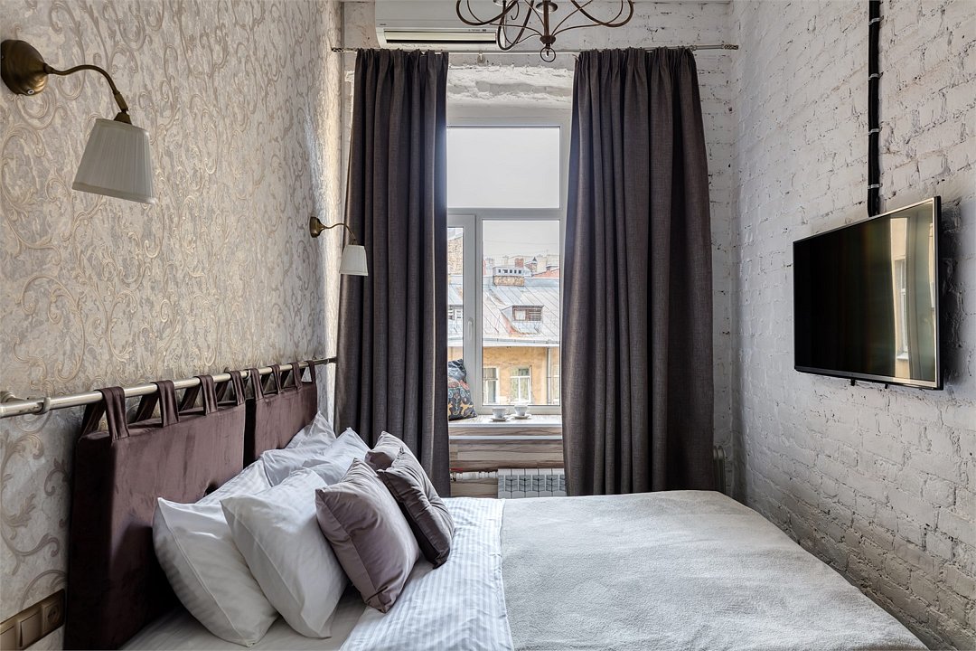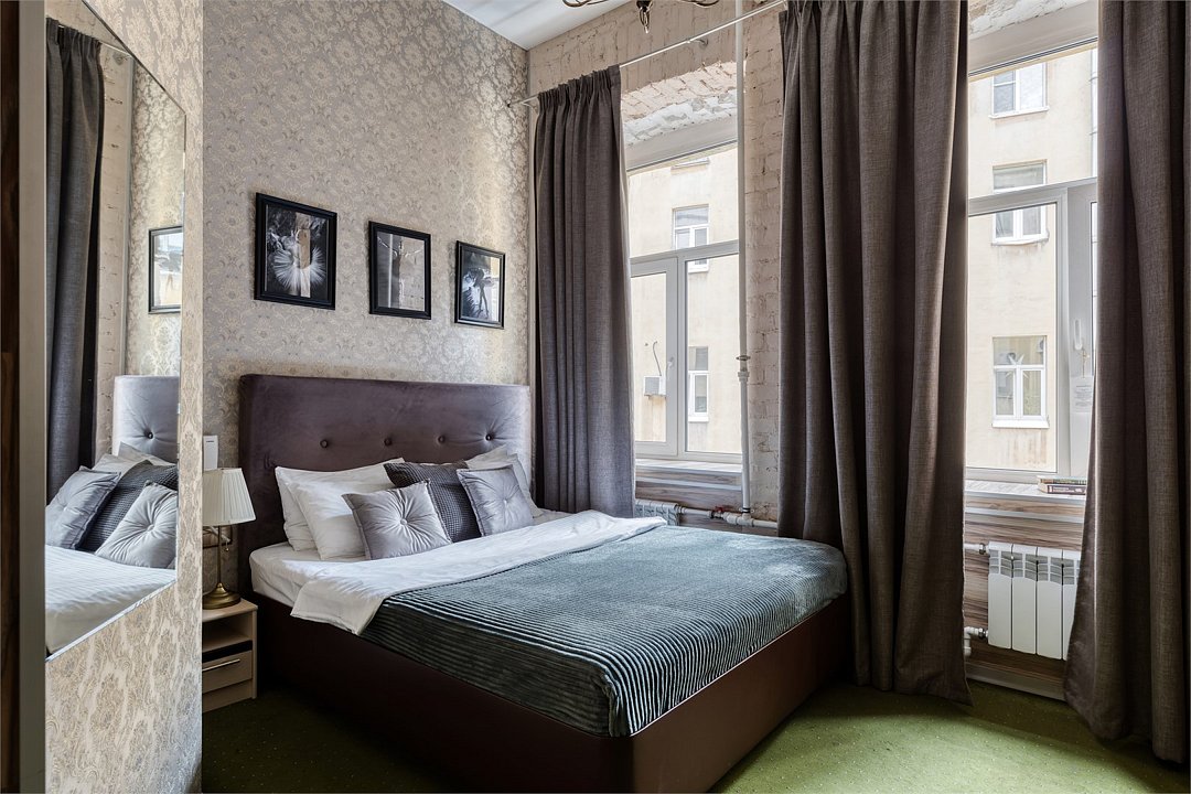 Уютный двухместный номер с одной кроватью размера Queen Size. Из номера выходит вид либо во внутренний двор либо на Фонтанку.Услуги и удобства