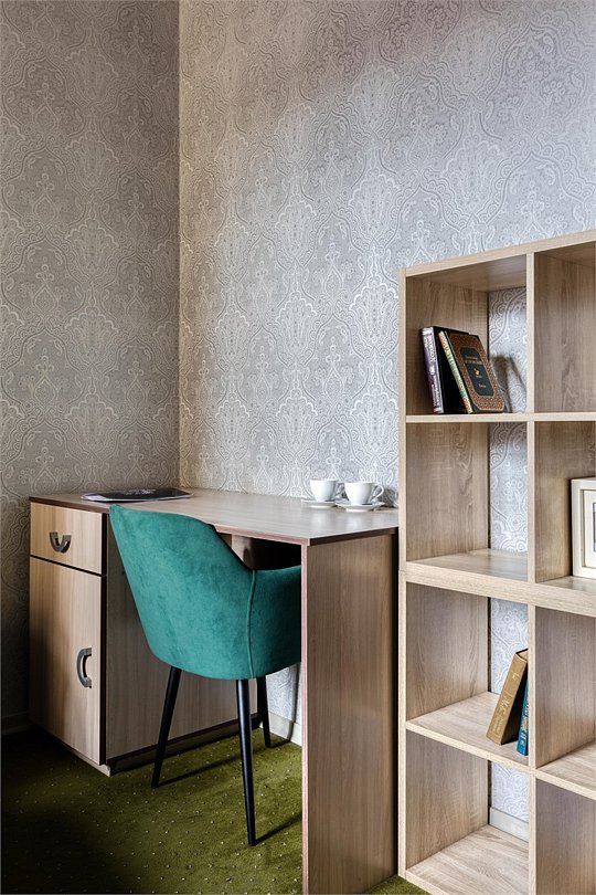 Wi-Fi, фен, электронные замки, обогреватель, ванна, халаты, тапочки, кровать «Queen size», тумбы, стулья, шкаф для одежды, зеркало, унитаз, раковина, кулер на этаже, вид во двор, стол, туалетные средства, телевизор с плоским экраном, мини-холодильник, номер для некурящих, вешалки-плечики, можно с питомцамиВ номере