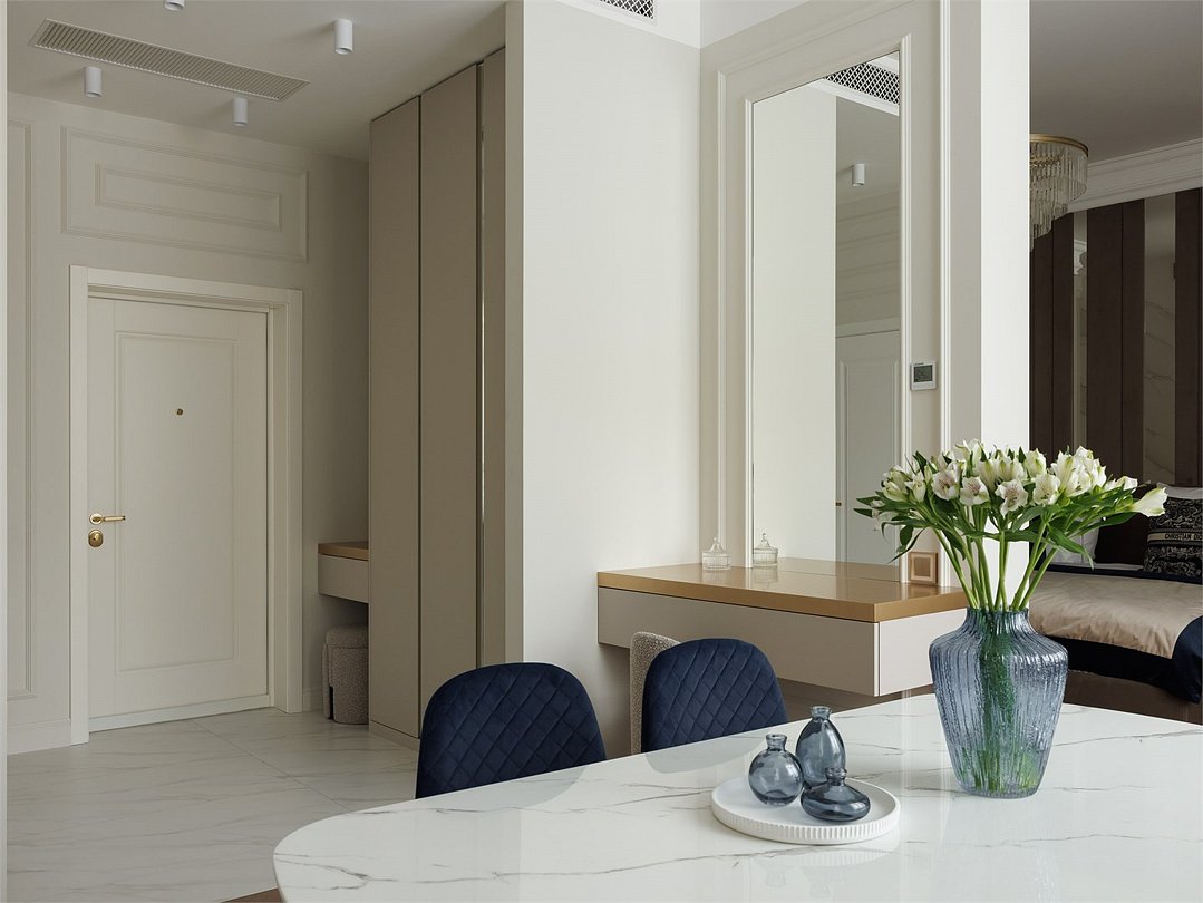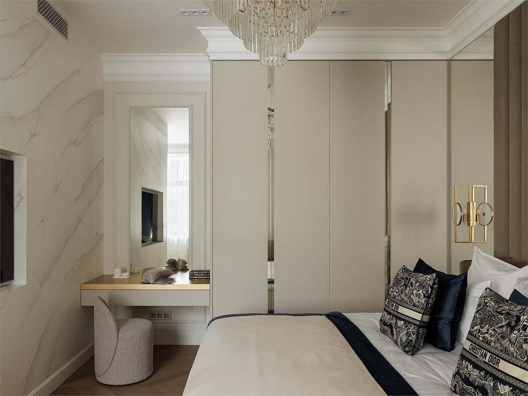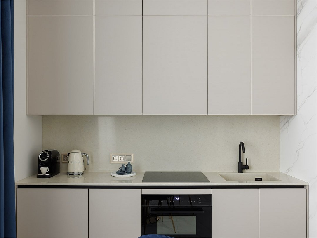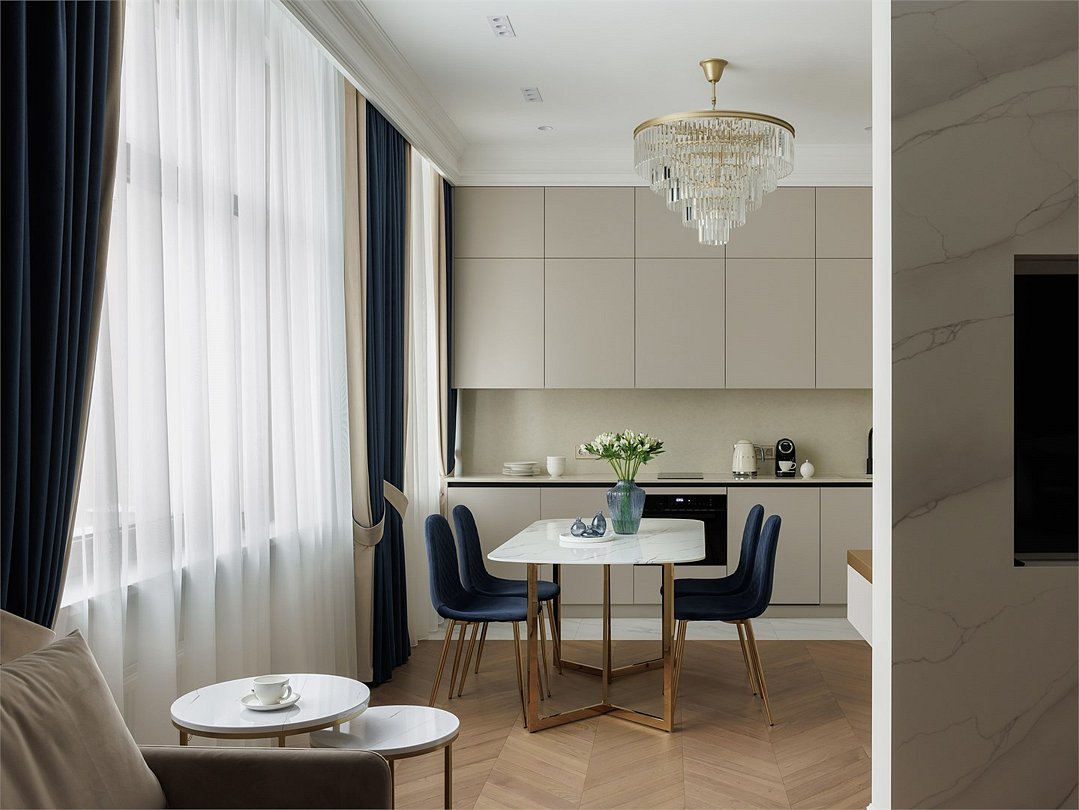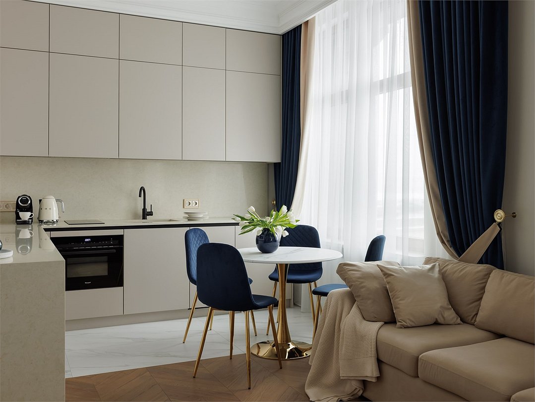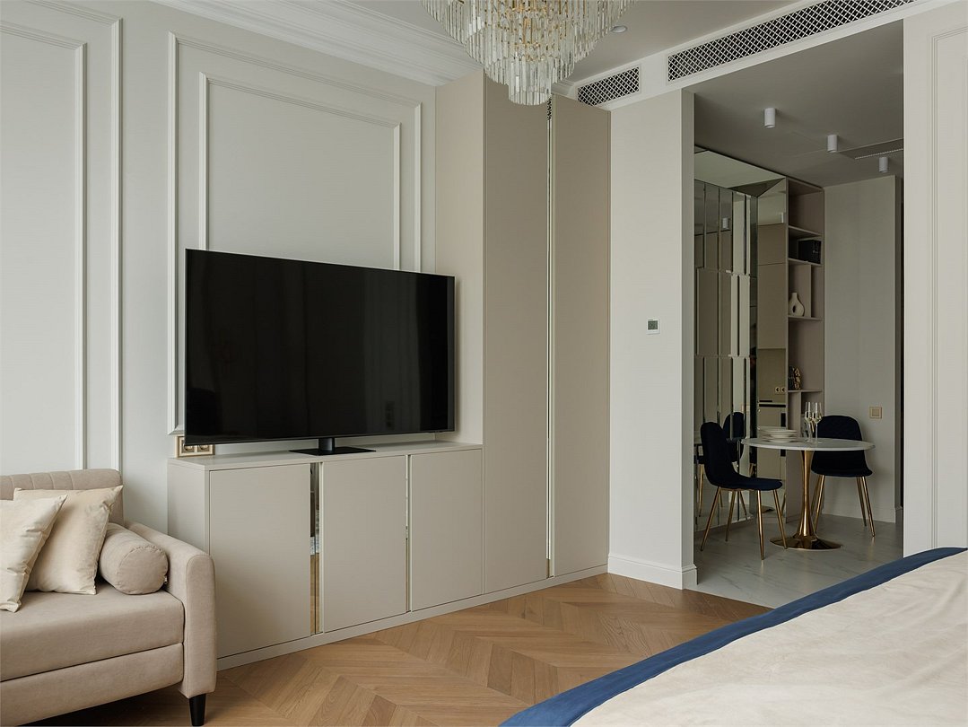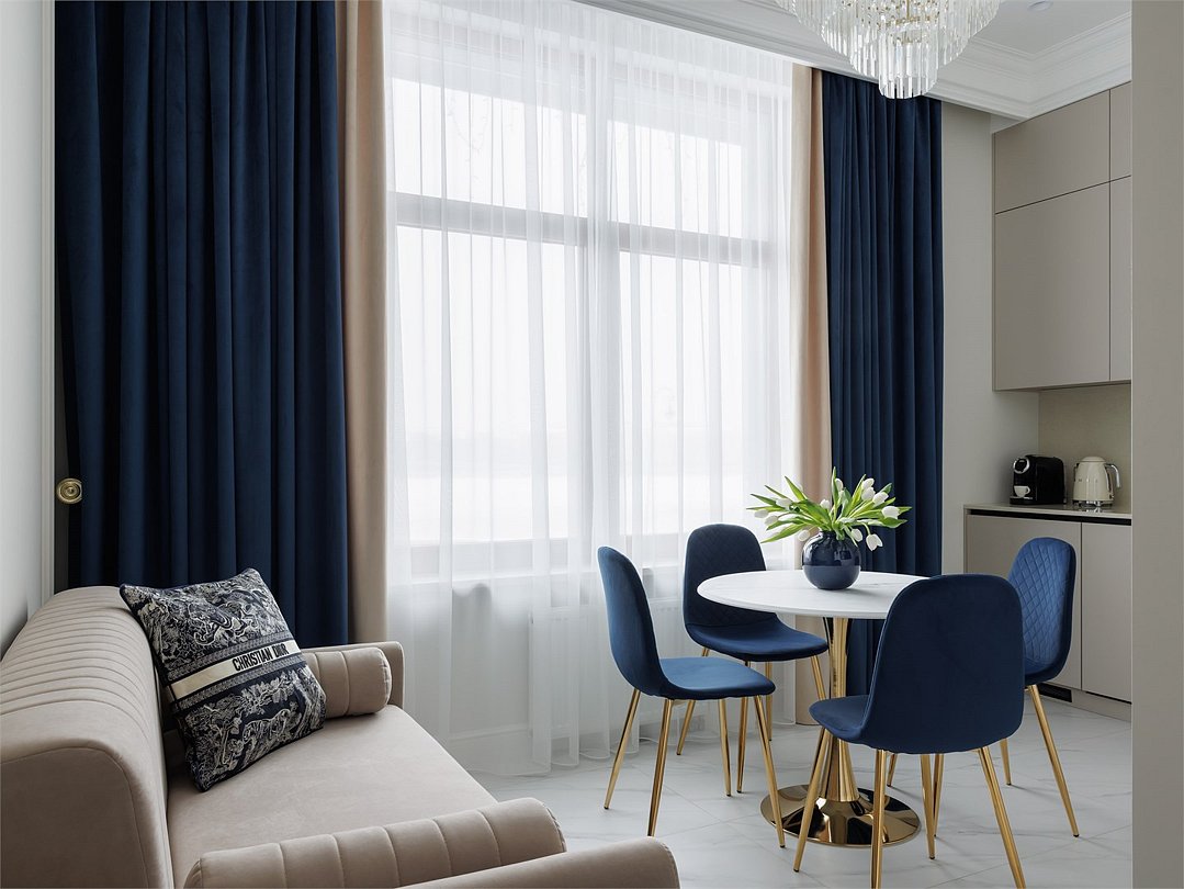 Апартамент-студия объединяет в себе кухню, спальню и прихожую. Санузел совмещенный с ванной. Кухня оборудована, кофемашиной, небольшим холодильником, посудомоечная машина, варочная плита, электрическим чайником, набором посуды. Система кондиционирования. Беспроводной интернет. Кабельное телевидение. Туалетные принадлежности Hermes, фен (Dyson) ,теплый пол.Услуги и удобства