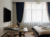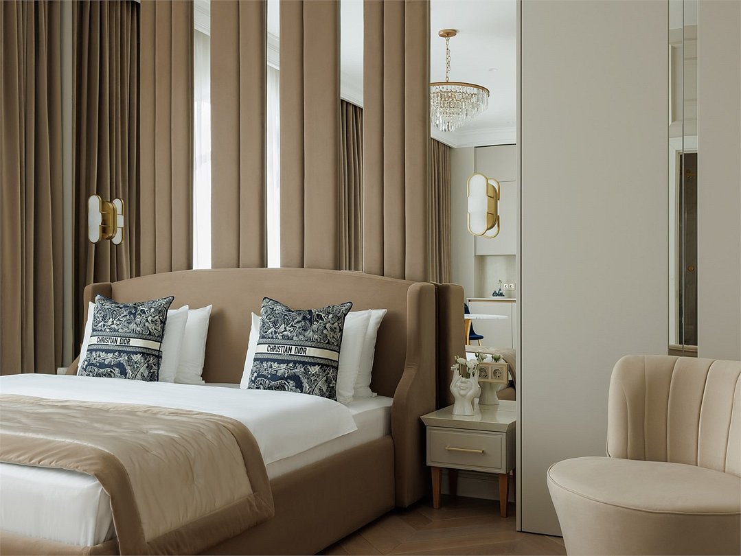 Премиальные апартаменты с отдельной спальней, кухней-гостиной и прихожую Основной санузел совмещен с ванной. Кухня оборудована двухкомфорочной плитой, не большим холодильником, электрическим чайником, кофе машиной, набором посуды. Система кондиционирования. Беспроводной интернет. Кабельное телевидение. Туалетные принадлежности Hermes, фен (Dyson).Услуги и удобства