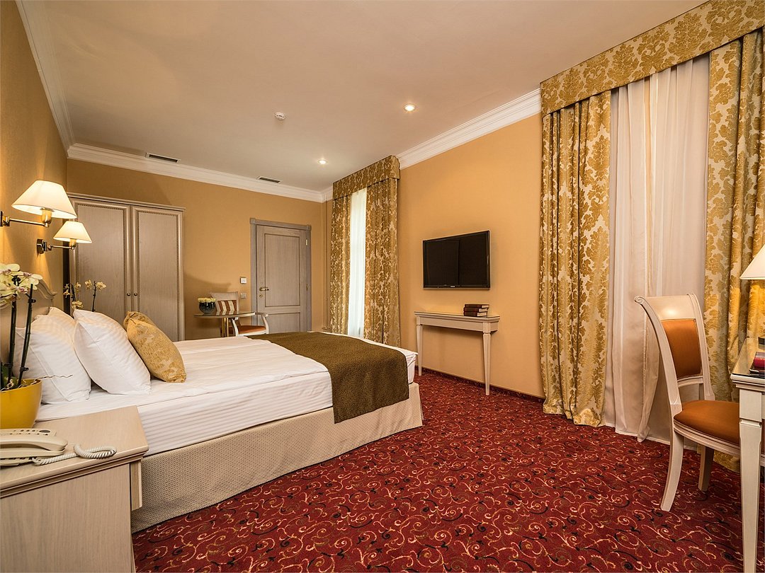 кабельное телевидение, Wi-Fi, интернет, фен, электронные замки, ванная комната, теплый пол, банные полотенца, тапочки, две односпальные кровати, стулья, шкаф для одежды, вешалки, зеркало, обслуживание номеров, сейф, унитаз, раковина, ковровое покрытие, душ, вид на город, кулер на этаже, вид во двор, высокие потолки, стул, стол, тумба, туалетные средства, внутренний телефон, телевизор с плоским экраном, мини-холодильник, гостиничная парфюмерия, номер для некурящих, чайная станцияВ номере