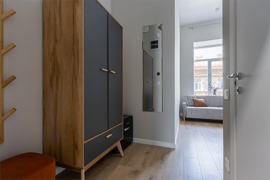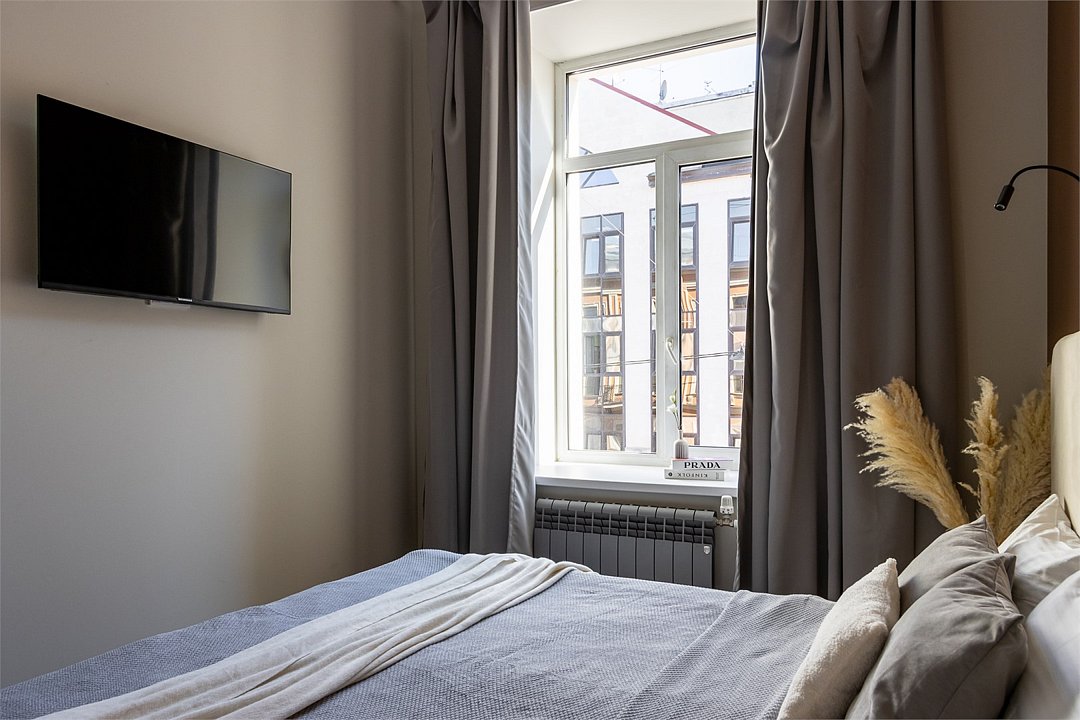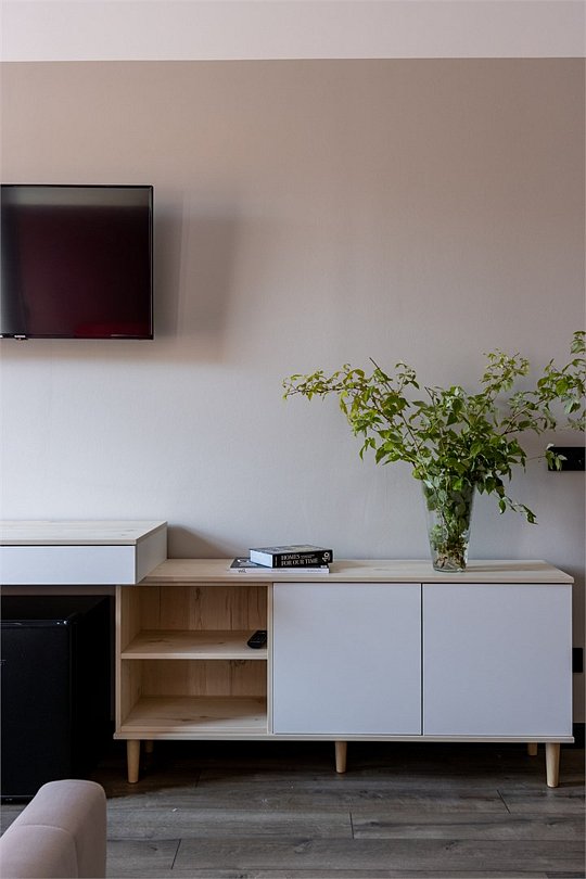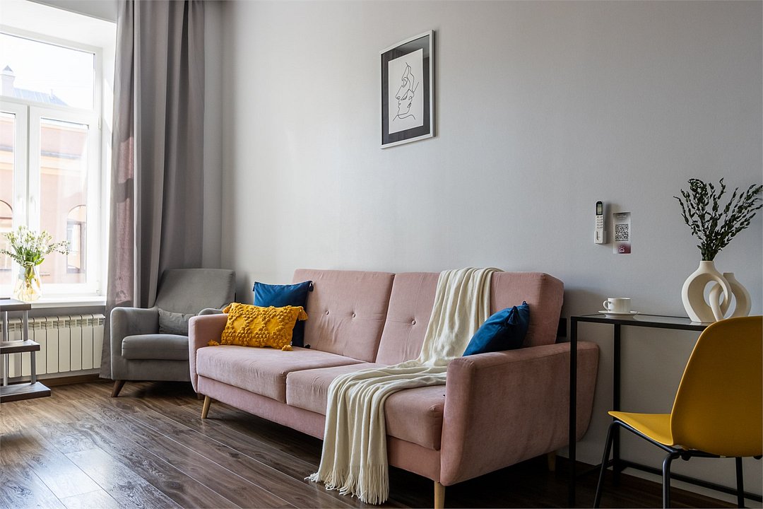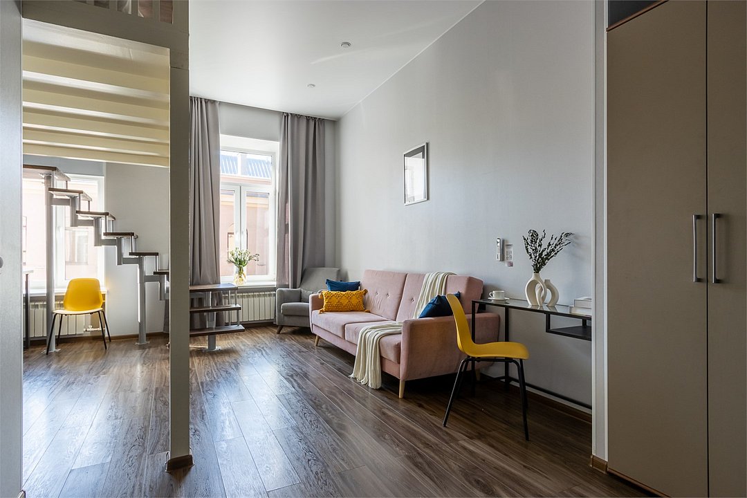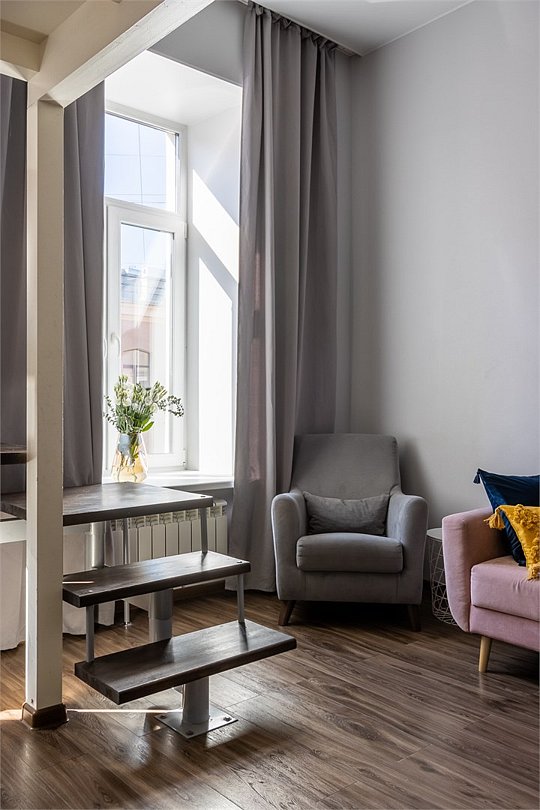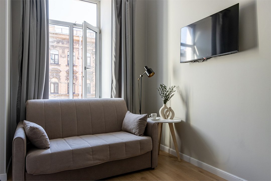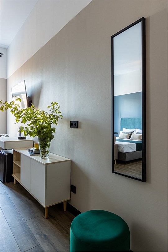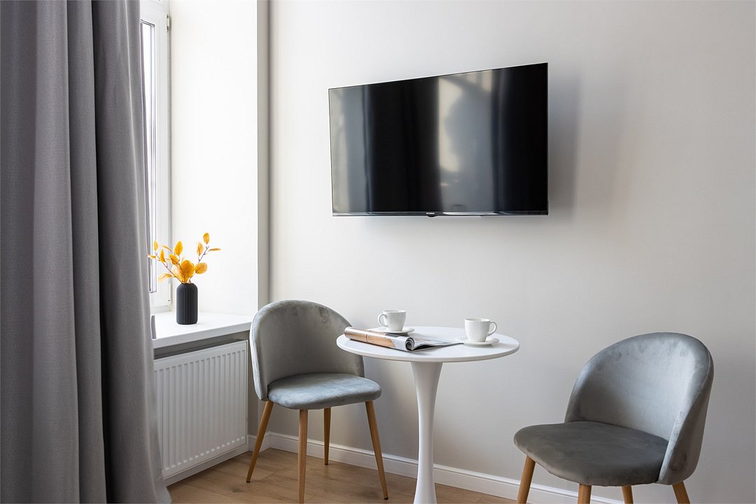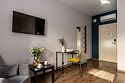 Звукоизолированный номер-студио с мини-кухней и кондиционером. В собственной ванной комнате: • Душ • Фен • Бесплатные туалетно-косметические принадлежности • Тапочки • Полотенца Вид: • Вид на город • Вид во внутренний дворик Удобства апартаментов: • Мини-кухня • Холодильник • Плита • Микроволновая печь • Кухонные принадлежности • Кондиционер • Телефон • Отопление • Деревянный или паркетный пол • Звукоизоляция • Услуга «звонок-будильник» • Москитная сетка • Шкаф или гардероб • Белье • Лестница для доступа к верхним этажам • Вешалка для одежды Бесплатный Wi-Fi! Курение: запрещеноУслуги и удобства