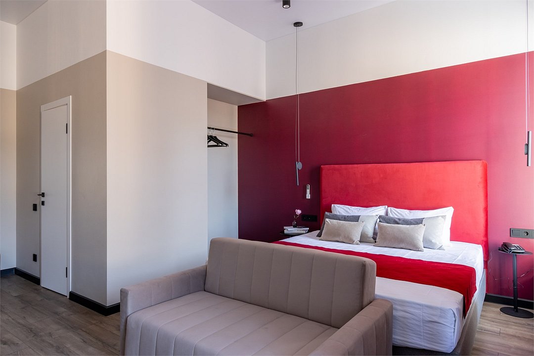 Двухуровневый номер с мини-кухней, двуспальной кроватью и диваном. В собственной ванной комнате: • Душ • Фен • Бесплатные туалетно-косметические принадлежности • Тапочки • Полотенца Вид: • Вид на город • Вид во внутренний дворик Удобства апартаментов: • Диван • Двуспальная кровать • Мини-кухня • Холодильник • Плита • Микроволновая печь • Кухонные принадлежности • Кондиционер • Телефон • Отопление • Деревянный или паркетный пол • Звукоизоляция • Услуга «звонок-будильник» • Москитная сетка • Шкаф или гардероб • Белье • Лестница для доступа к верхним этажам • Вешалка для одежды Бесплатный Wi-Fi! Курение: запрещеноУслуги и удобства