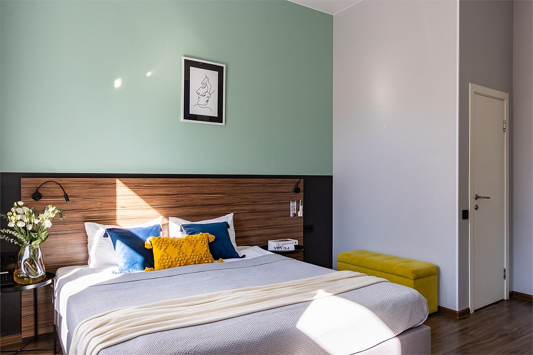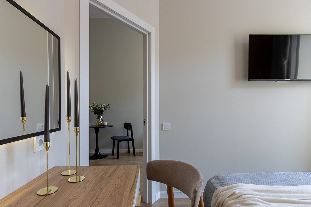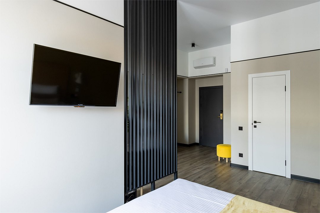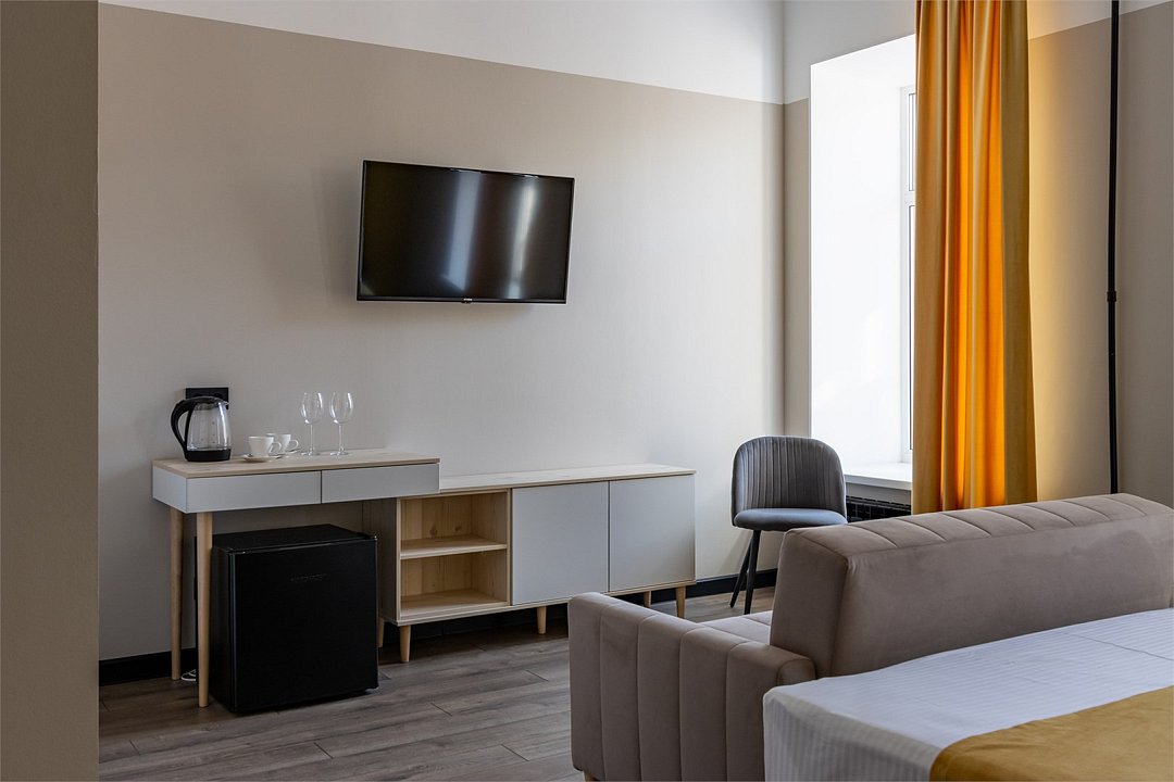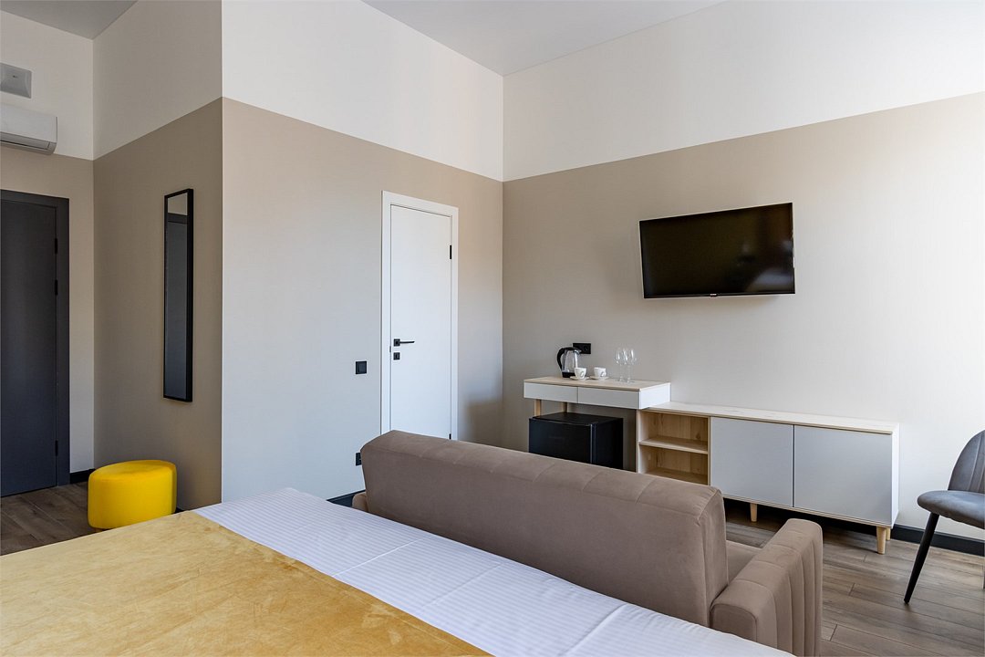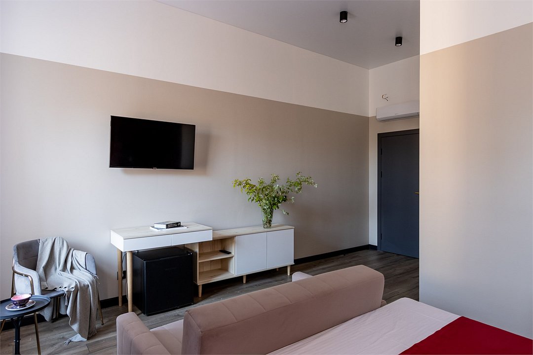 телевизор, кабельное телевидение, Wi-Fi, интернет, кондиционер, светильник, фен, душевая кабина, санузел, тапочки, косметические средства, двуспальная кровать, диван, тумбы, стулья, шкаф для одежды, обеденный стол, зеркало, две комнаты, чайный набор, чайник, унитаз, раковина, косметическое зеркало, питьевая вода, отопление, душ, туалетный столик, стул, стол, туалетный столик, туалетные средства, туалет, диван-кровать, внутренний телефон, телевизор с плоским экраном, мини-холодильник, москитная сетка, номер для некурящих, межкомнатная дверь, уборка номера, бутилированная вода, мыло, затемняющая штора, можно с питомцамиВ номере