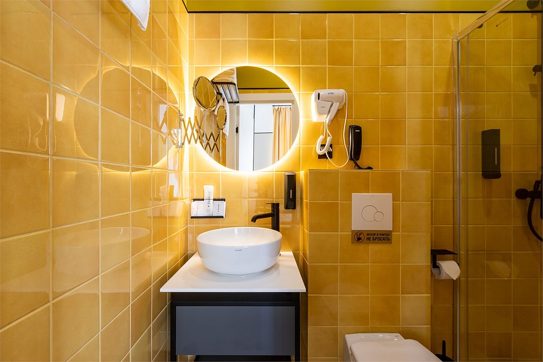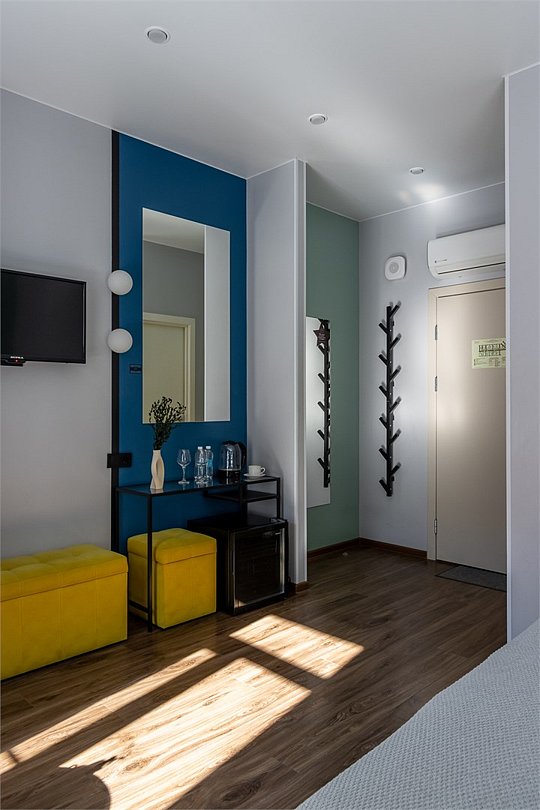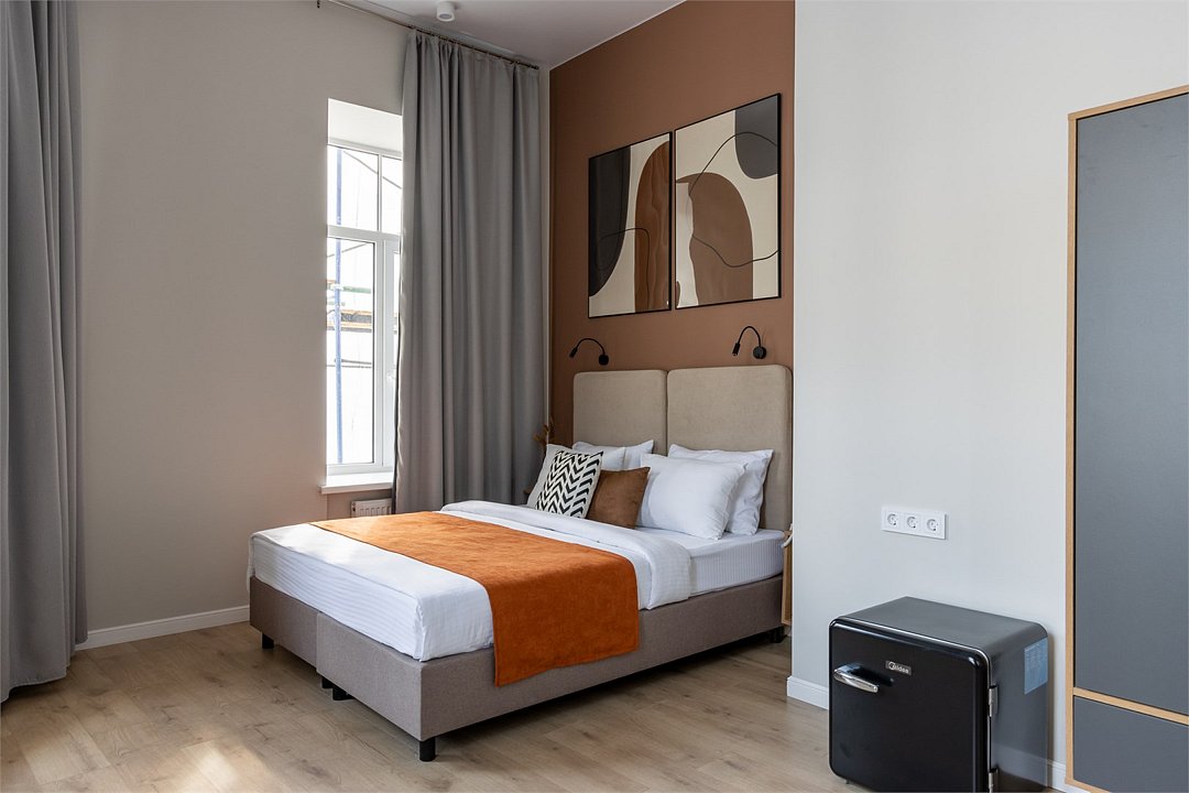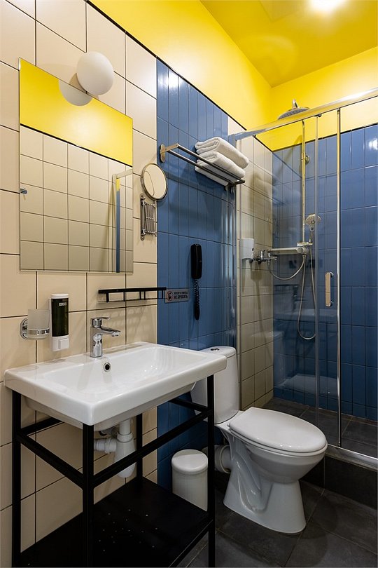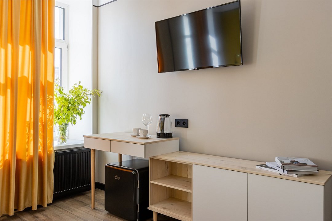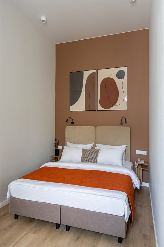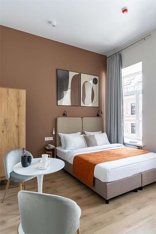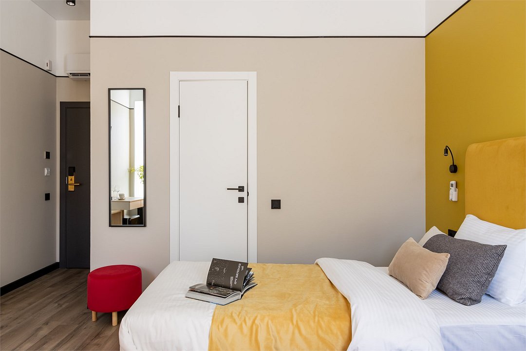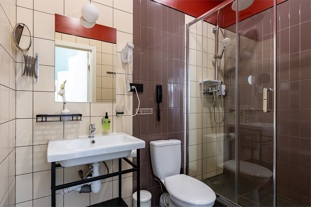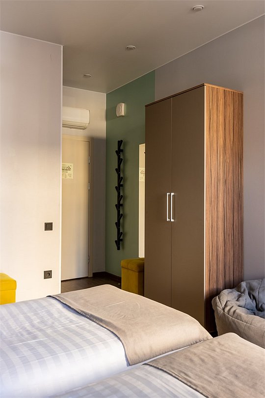Звукоизолированный двухместный номер с 1 кроватью или 2 раздельными кроватями, электрическим чайником и плоским телевизором. В собственной ванной комнате: • Душ • Фен • Бесплатные туалетно-косметические принадлежности • Тапочки • Полотенца Вид: • Вид на город • Вид во внутренний дворик Услуги и удобства: • Холодильник • Кондиционер • Телефон • Отопление • Деревянный или паркетный пол • Звукоизоляция • Услуга «звонок-будильник» • Москитная сетка • Шкаф или гардероб • Белье • Лестница для доступа к верхним этажам • Вешалка для одежды Бесплатный Wi-Fi! Курение: запрещеноУслуги и удобства