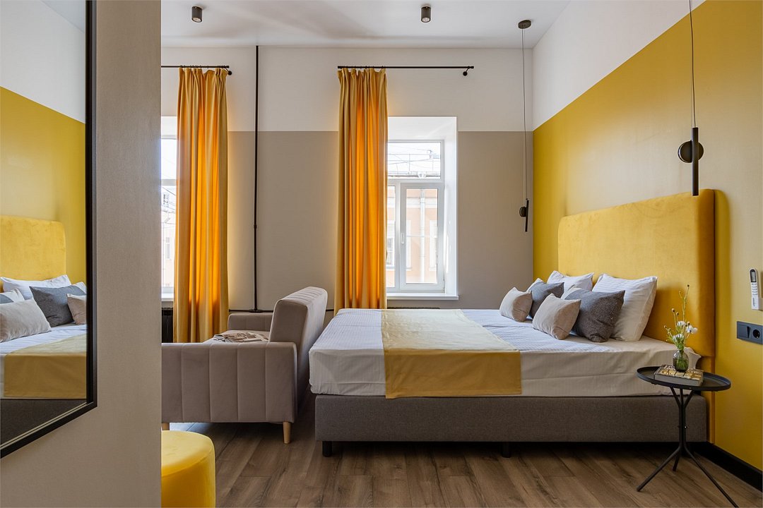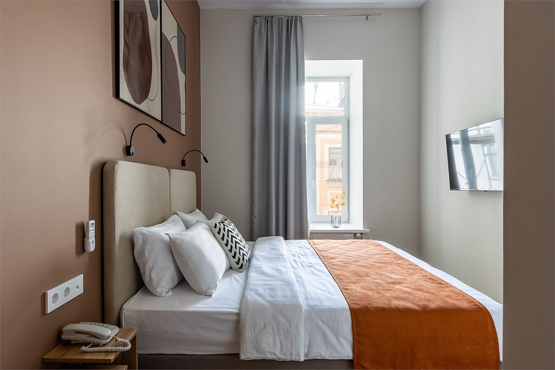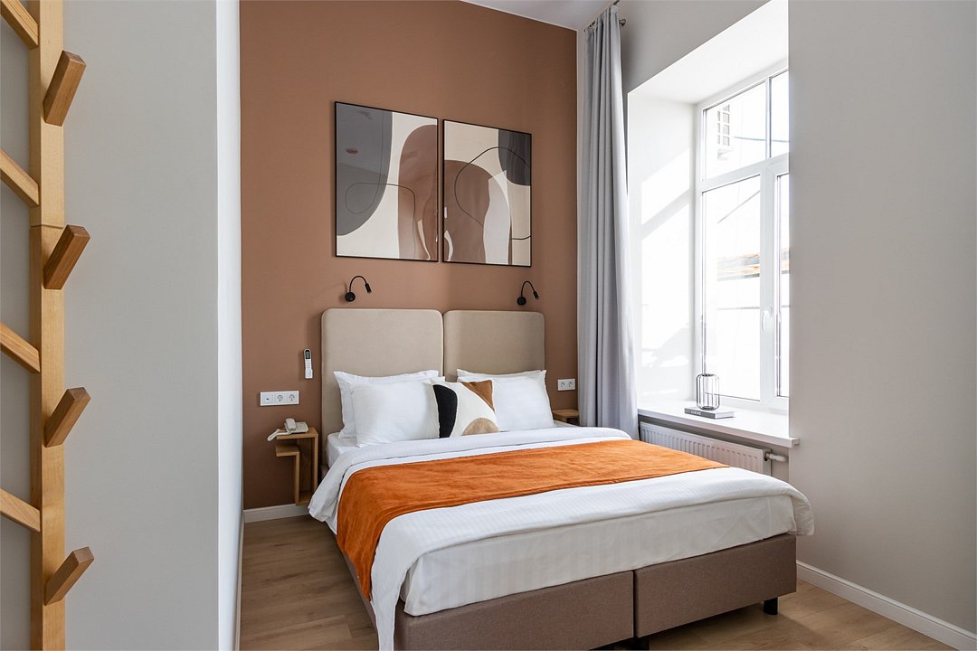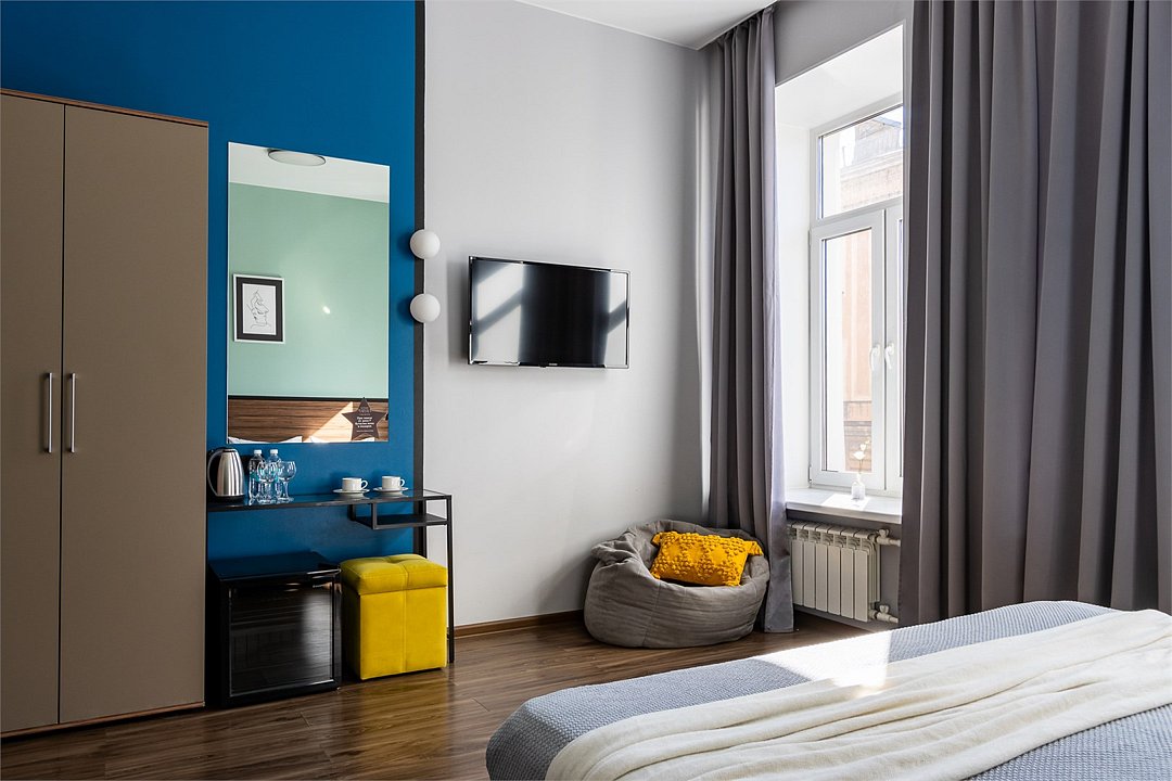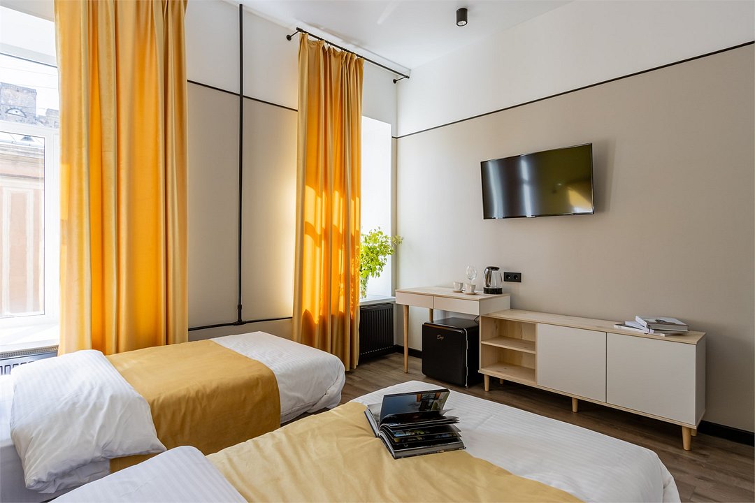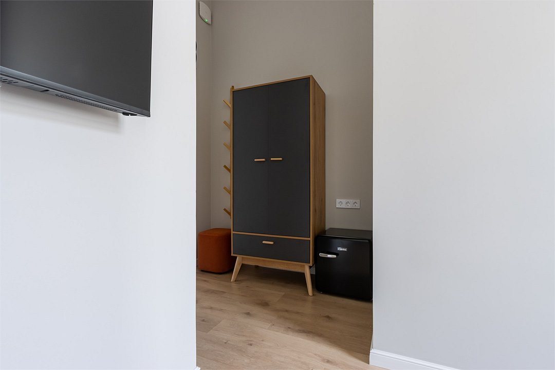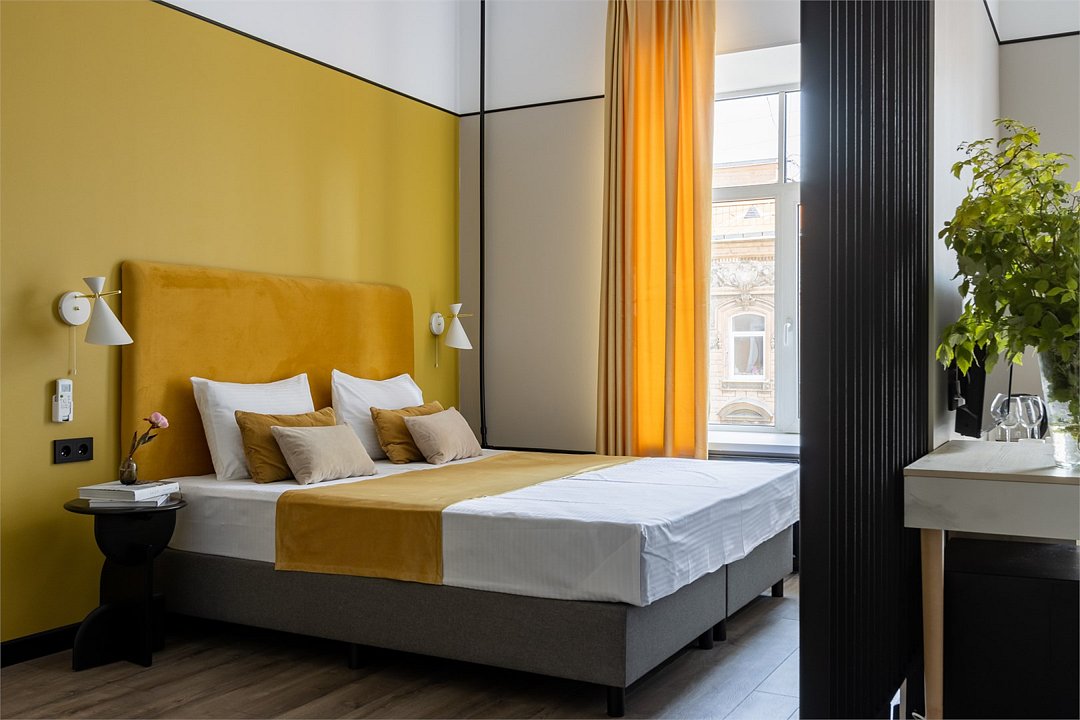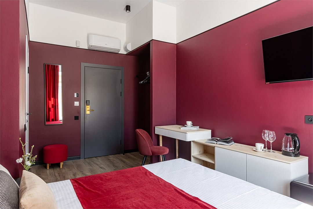 Звукоизолированный двухместный номер с 1 кроватью или 2 раздельными кроватями, электрическим чайником и плоским телевизором. В собственной ванной комнате: • Душ • Фен • Бесплатные туалетно-косметические принадлежности • Тапочки • Полотенца Вид: • Вид на город • Вид во внутренний дворик Услуги и удобства: • Холодильник • Кондиционер • Телефон • Отопление • Деревянный или паркетный пол • Звукоизоляция • Услуга «звонок-будильник» • Москитная сетка • Шкаф или гардероб • Белье • Лестница для доступа к верхним этажам • Вешалка для одежды Бесплатный Wi-Fi! Курение: запрещеноУслуги и удобства