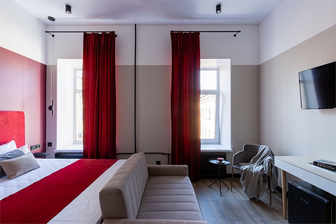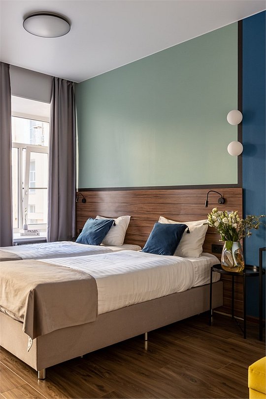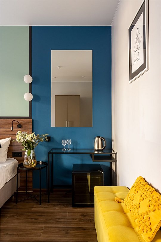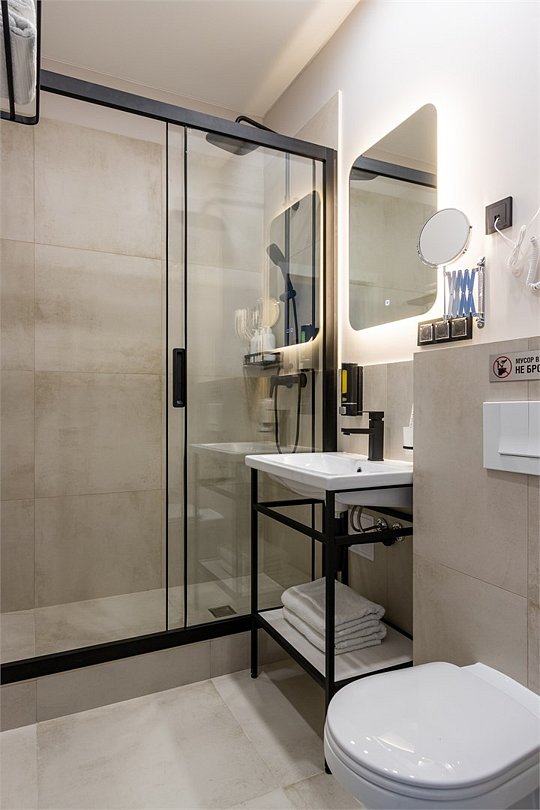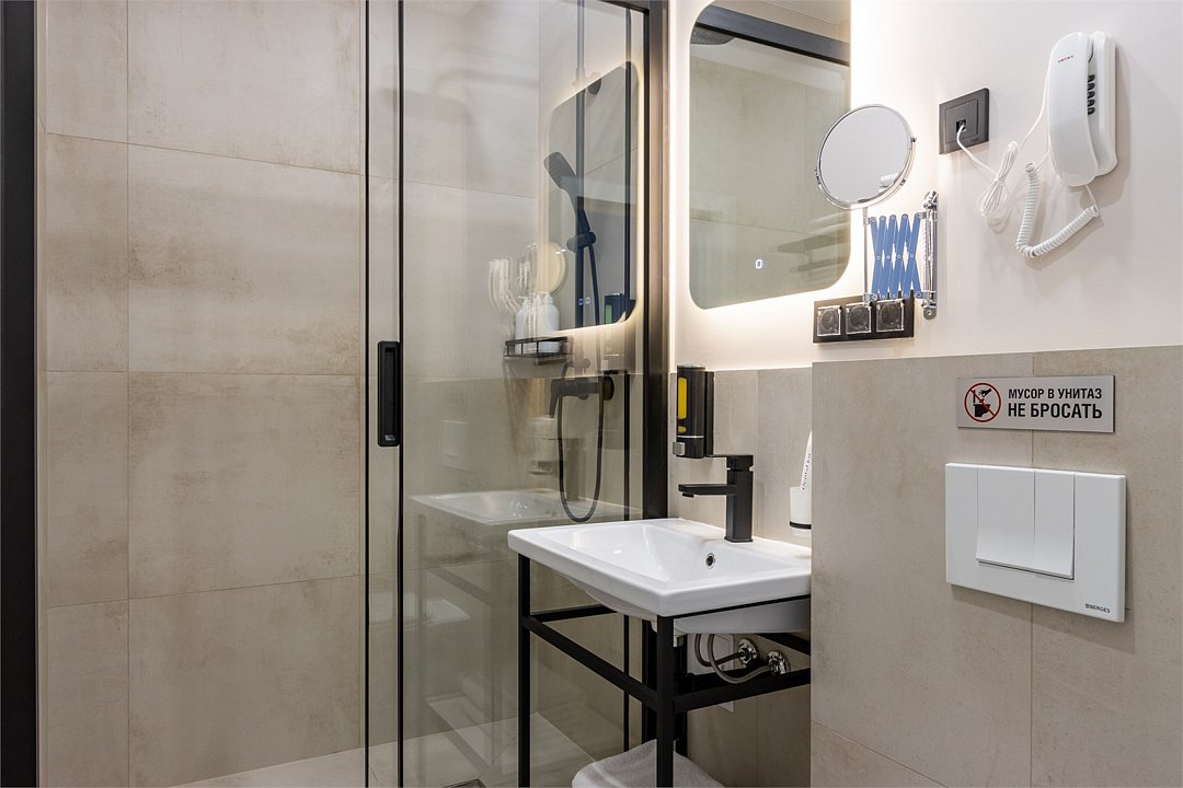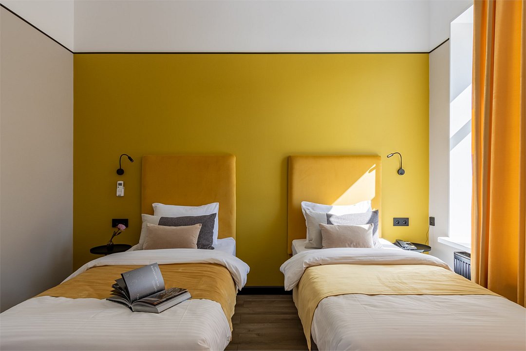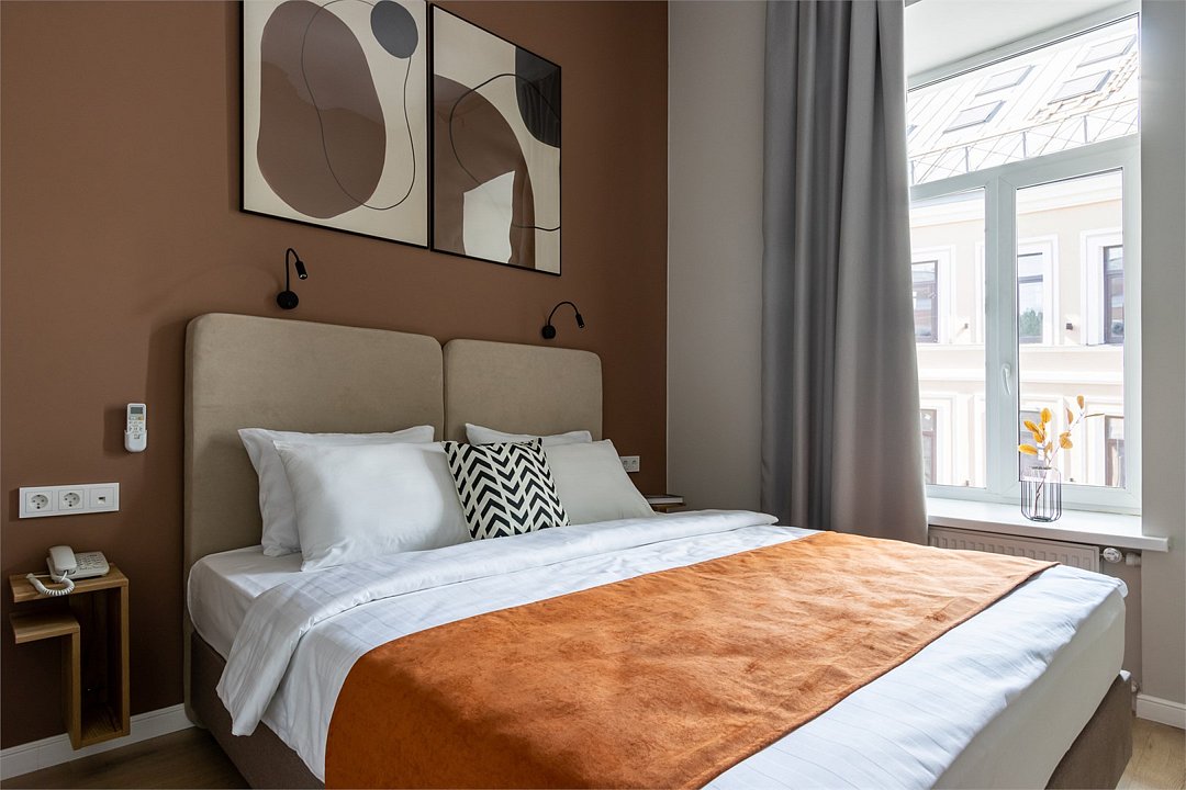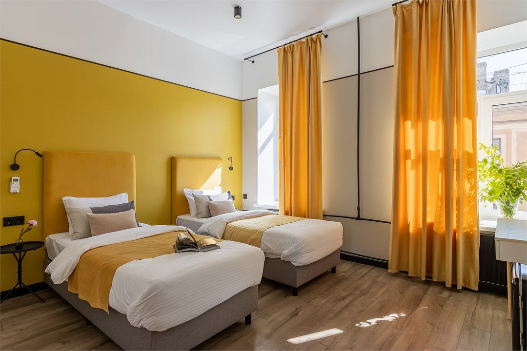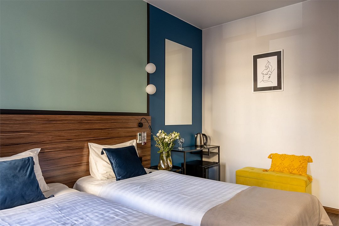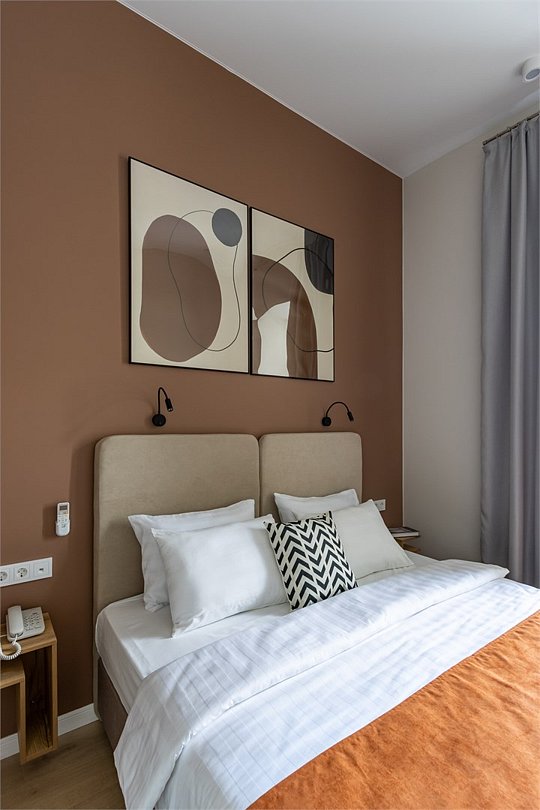 Звукоизолированный двухместный номер с 1 кроватью или 2 раздельными кроватями, электрическим чайником и плоским телевизором. В собственной ванной комнате: • Душ • Фен • Бесплатные туалетно-косметические принадлежности • Тапочки • Полотенца Вид: • Вид на город • Вид во внутренний дворик Услуги и удобства: • Холодильник • Кондиционер • Телефон • Отопление • Деревянный или паркетный пол • Звукоизоляция • Услуга «звонок-будильник» • Москитная сетка • Шкаф или гардероб • Белье • Лестница для доступа к верхним этажам • Вешалка для одежды Бесплатный Wi-Fi! Курение: запрещеноУслуги и удобства