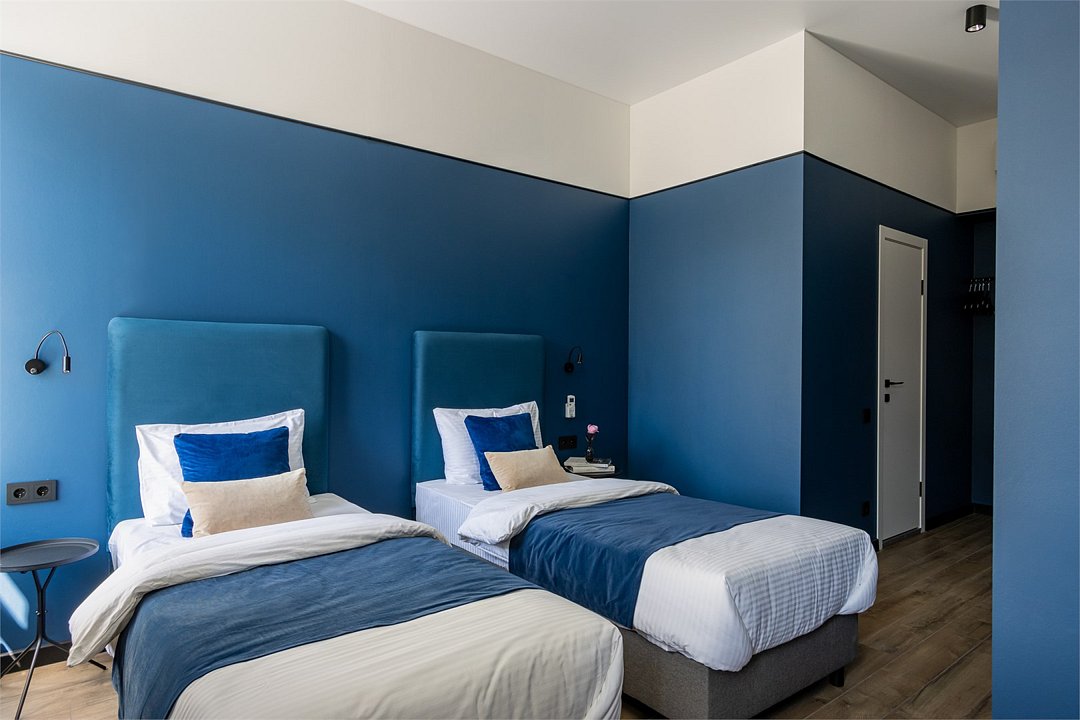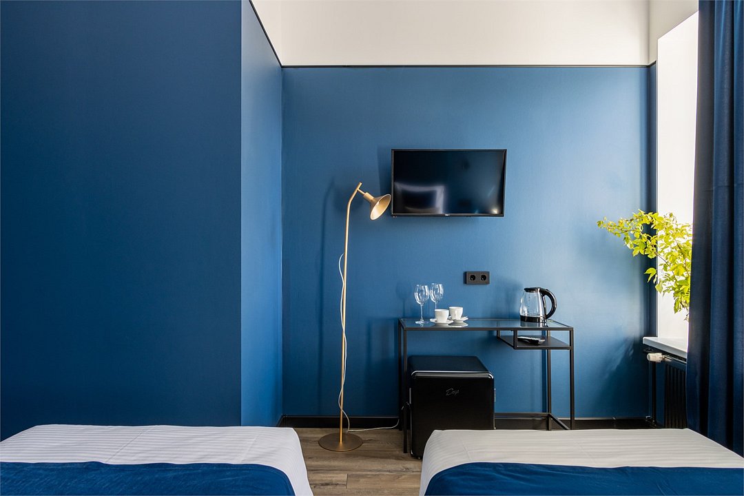 телевизор, кабельное телевидение, Wi-Fi, интернет, кондиционер, светильник, фен, душевая кабина, санузел, тапочки, косметические средства, две односпальные кровати, шкаф для одежды, зеркало, сейф, чайник, унитаз, раковина, отопление, душ, стул, стол, туалетные средства, туалет, внутренний телефон, телевизор с плоским экраном, мини-холодильник, москитная сетка, номер для некурящих, уборка номера, набор для приготовления чая и кофе, мыло, затемняющая штора, можно с питомцамиВ номере