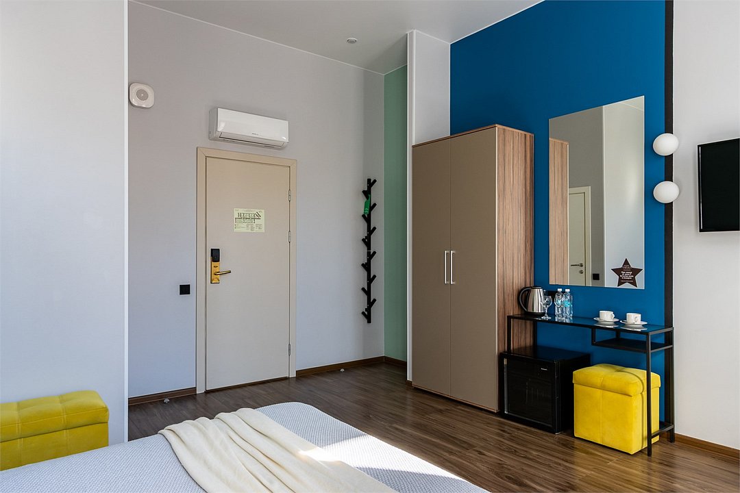 Звукоизолированный двухместный номер с 1 кроватью, электрическим чайником и плоским телевизором. В собственной ванной комнате: • Душ • Фен • Бесплатные туалетно-косметические принадлежности • Тапочки • Полотенца Вид: • Вид на город • Вид во внутренний дворик Услуги и удобства: • Холодильник • Кондиционер • Телефон • Отопление • Деревянный или паркетный пол • Звукоизоляция • Услуга «звонок-будильник» • Москитная сетка • Шкаф или гардероб • Белье • Лестница для доступа к верхним этажам • Вешалка для одежды Бесплатный Wi-Fi! Курение: запрещеноУслуги и удобства