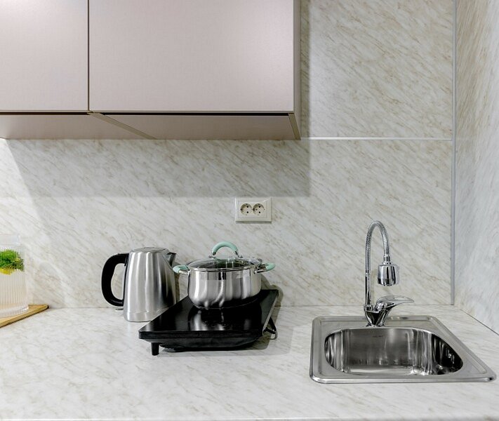 Эргономичная студия, на цокольном этаже для двух гостей 20 кв. м. Есть все необходимое для комфортного пребывания. На небольшой площади компактно размещены двуспальная кровать 130*200 с удобным матрасом и постельным бельем, кухня, санузел с душевой, места для хранения. В кухонной зоне: варочная панель, мини холодильник, чайник и вся необходимая посуда для приготовления и сервировки; в ванной комнате: душевая, раковина, санузел, фен, полотенца, мыльные принадлежности. При необходимости есть утюг, гладильная доска, переносная мини сушилка для одежды. Телевидение с большим выбором каналов, зона wi-fi.