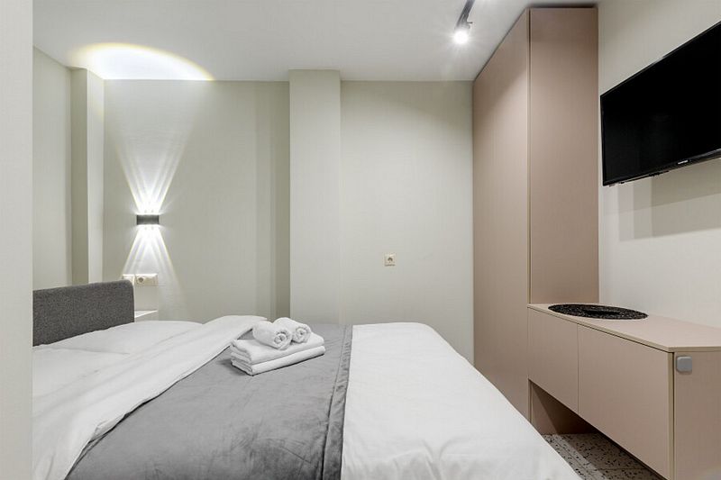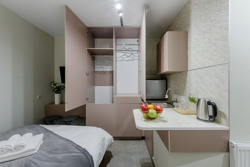 Замечательные двухместные апартаменты в бежевом цвете БЕЗ ОКНА, расположенные на легендарной набережной реки Фонтанки в историческом центре города Санкт-Петербурга.