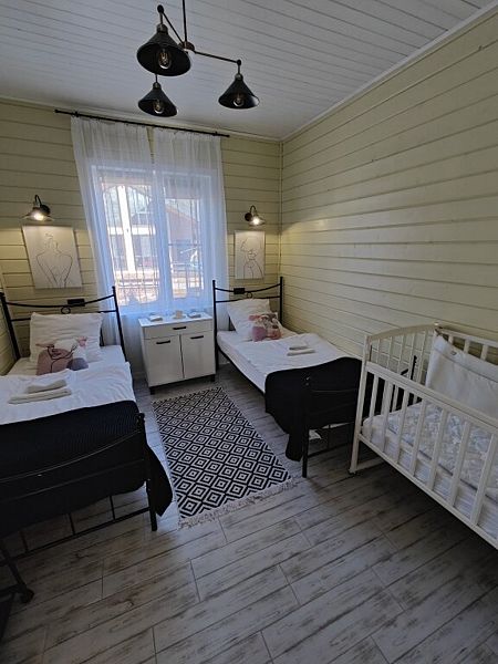 Две односпальные кровати, одна двуспальная кровать, одна диван-кровать, одна детская кроваткаУслуги и удобства