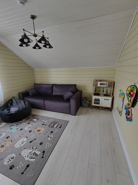 на 2 этаже: 3 спальни, санузел с душем. Одна из спален приспособлена под игровую зону для ваших детей: телевизор, настольные игры, детская кухня, игрушки.