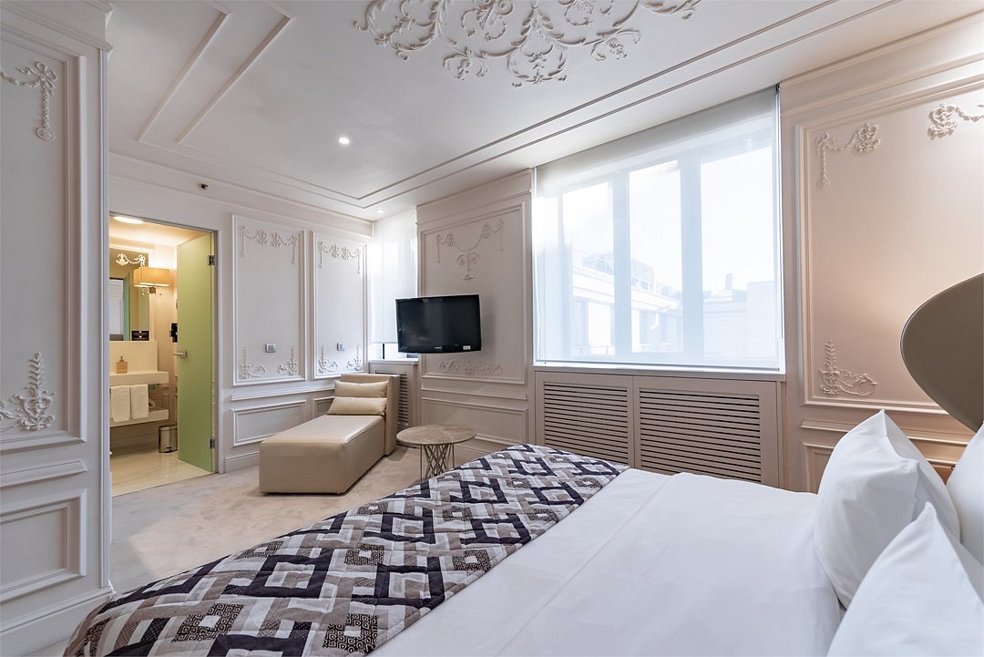 Улучшенный номер с Французским окном, площадью 23 кв.м., порадует гостей видом на город сквозь панорамные окна. К удобству гостей предлагается зона отдыха, оформленная дизайнерской мебелью, эргономичная рабочая зона, телевизор с плоским экраном, Яндекс Станция с Алисой и кофемашина Julius Meinl. В распоряжении гостей бесплатные туалетно-косметические принадлежности, халаты и тапочки, минеральная вода, сейф для хранения ценностей, утюг и гладильная доска. Номер доступен с ванной или душевой кабиной.Услуги и удобства
