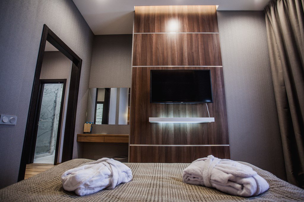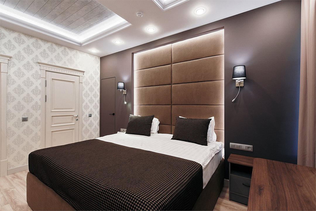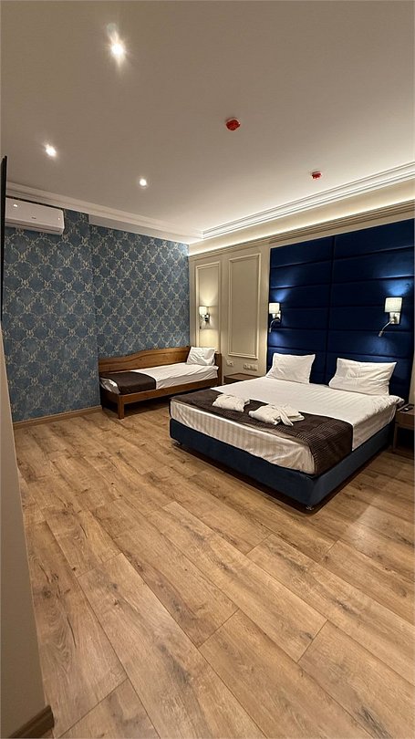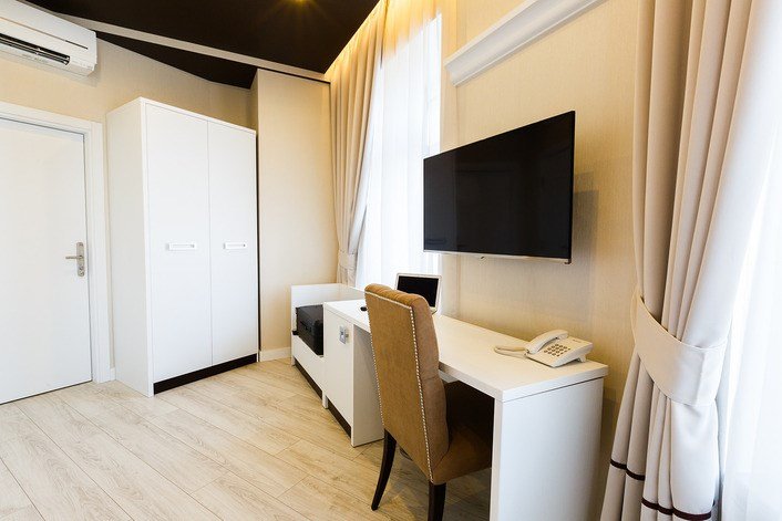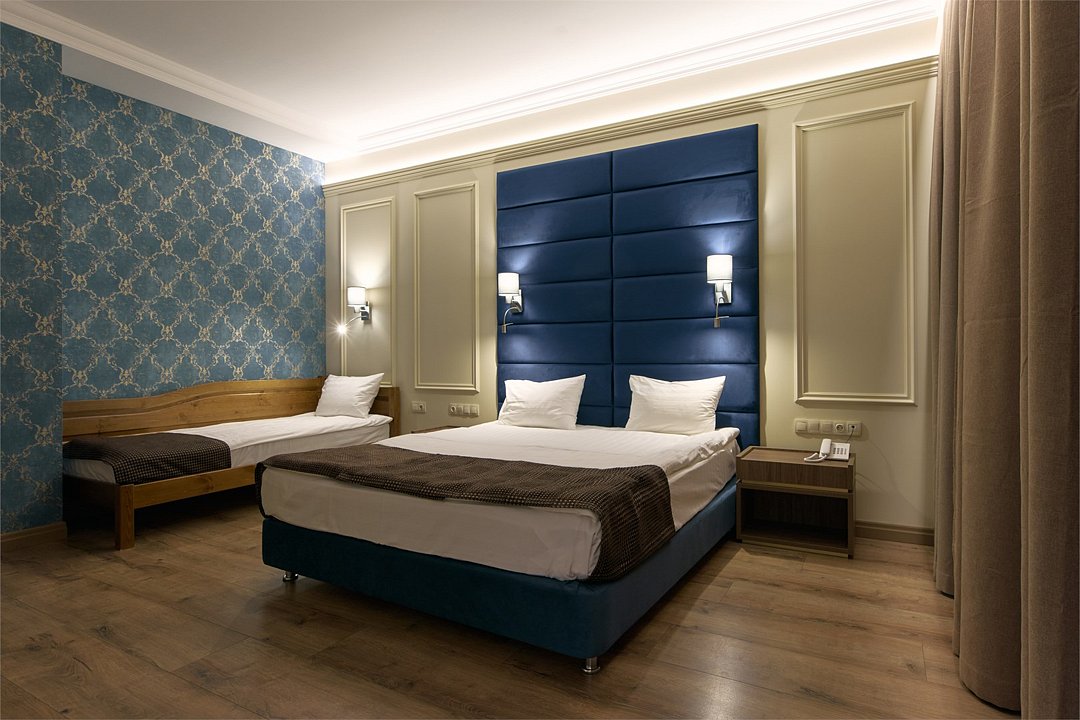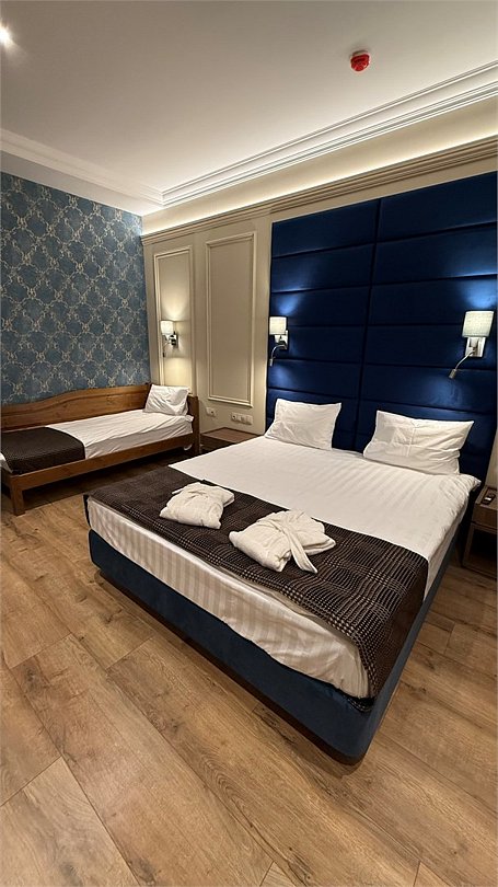 Эксклюзивный дизайн и светлые тона номера создают неповторимое сочетание комфорта и уюта. В каждом номере имеется большая двуспальная кровать, современная техника, ванная комната и душевая кабина. Так же предупреждаем наших гостей о том, что в здании отеля нет лифта. Номера расположены на 2,3.4 этажах.Услуги и удобства
