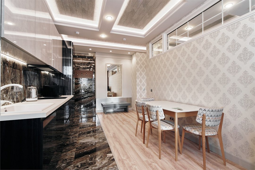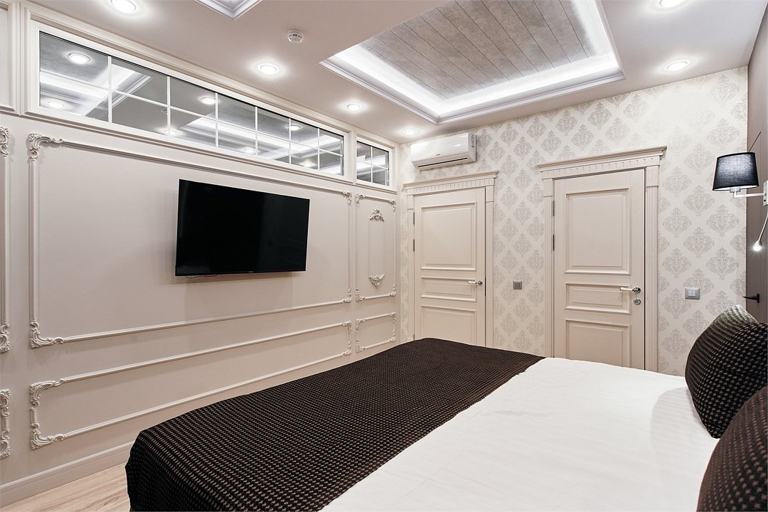 Максимально комфортные апартаменты, оснащенные всем необходимым. В распоряжении гостей полностью оборудованная кухня с индукционной плитой и большим холодильником, в комнате кровать super King-size, на кухне раскладной полутороспальный диван. Ванная комната оснащена душевой со всеми косметическими принадлежностями. Два санузла. Апартаменты выполнены в светлых тонах и идеально подойдут для сбора невест. Так же предупреждаем наших гостей о том, что в здании отеля нет лифта. Номера расположены на 2,3.4 этажах.Услуги и удобства