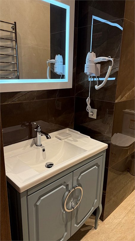 два телевизора, Wi-Fi, интернет, холодильник, кондиционер, фен, электронные замки, плита для приготовления пищи, микроволновая печь, душевая кабина, ванна или душевая кабина, дополнительный санузел, халаты, банные полотенца, тапочки, гигиенические средства, косметические средства, кровать «Queen size», односпальная кровать, ортопедический матрас, диван, шкаф для одежды, вешалки, обеденный стол, багажная тумба, кухня, чайный набор, набор посуды, сейф, посудомоечная машина, чайник, раковина, мягкая мебель, отопление, душ, кухонная посуда, стаканы, кухонная утварь, столовые приборы, стул, туалет, диван-кровать, раскладной диван, внутренний телефон, телевизор с плоским экраном, гостиничная парфюмерия, телевизор со Smart TV, номер для некурящих, гигиенический душ, морозильная камера, чайная станция, вид на канал, фумигатор, межкомнатная дверь, набор для приготовления чая и кофе, вешалки-плечики, шапочка для душа, мыло, затемняющая штора, можно с питомцамиВ апартаментах