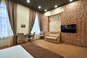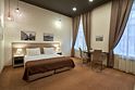 Халаты в номере, сейф, холодильник, сравнительно большой стол, телевизор.