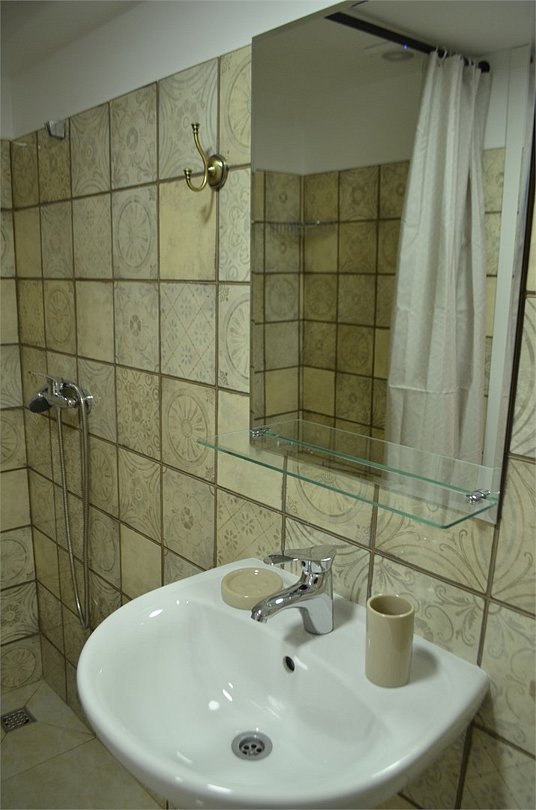 Прихожая: вешалка для верхней одежды, шкаф. В комнате: кровать 1,6 м, прикроватная тумбочка, стол с зеркалом, стул, телевизор, DVD, выход в Интернет. В ванной комнате: душ, индивидуальные одноразовые туалетные принадлежности (шампунь, мыло, гель для душа, шапочка), комплект полотенец, фен.Услуги и удобства