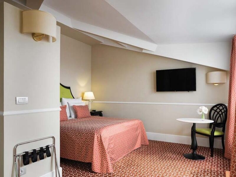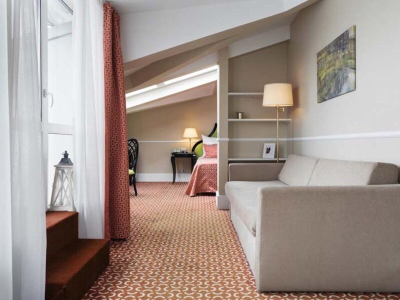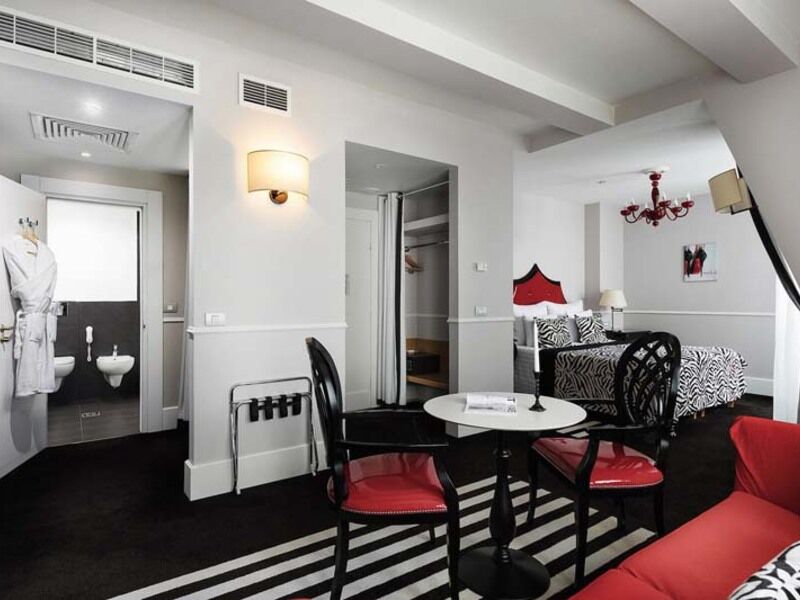 Все номера отеля выполнены итальянской студией дизайна и не похожи друг на друга. Гость может выбрать номер в мансарде с террасой и видом на город или семейный двухкомнатный номер в тихой флигельной части здания.