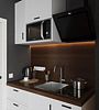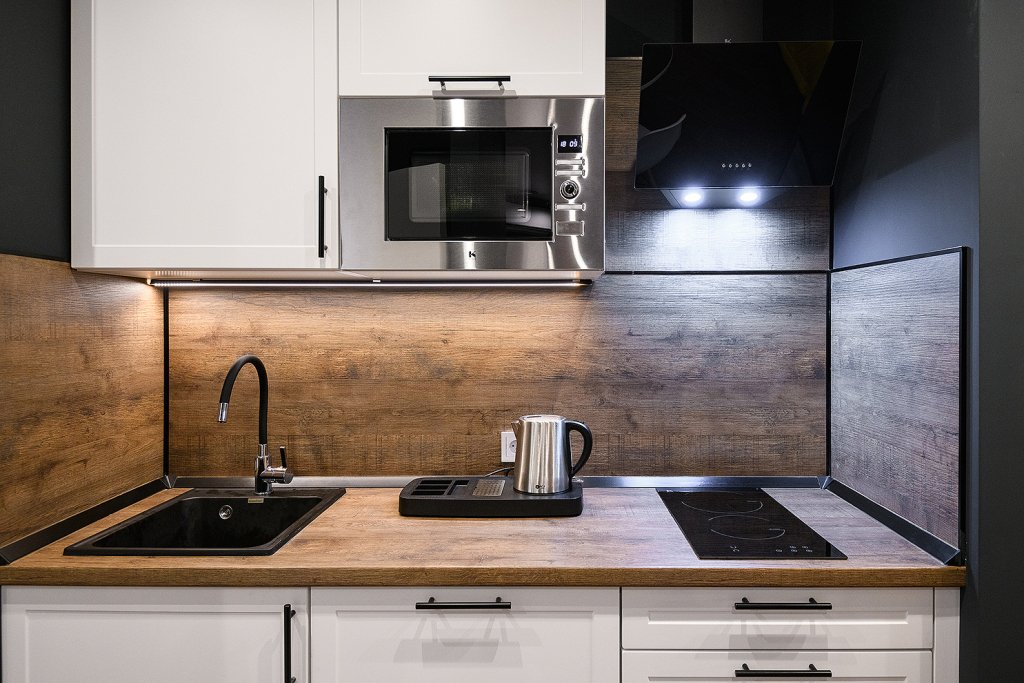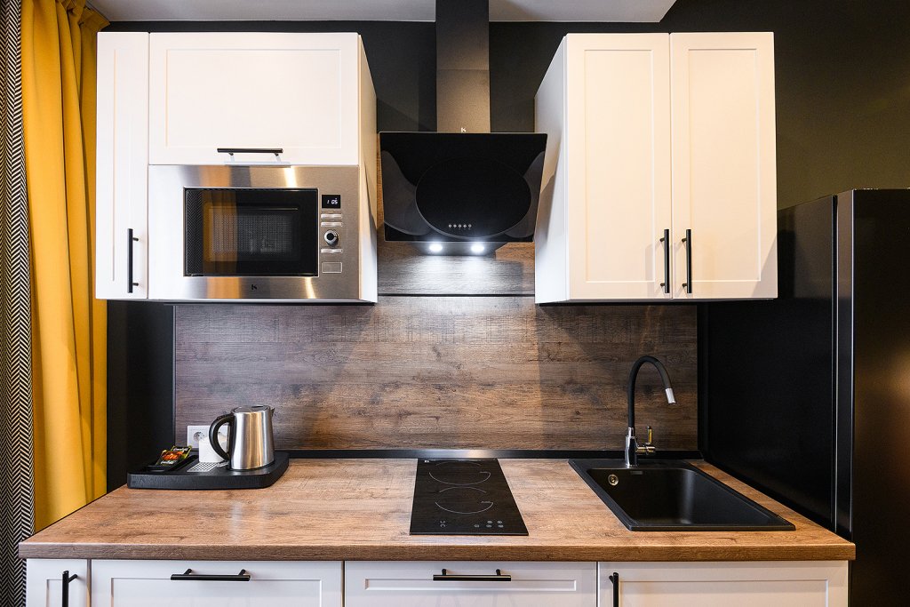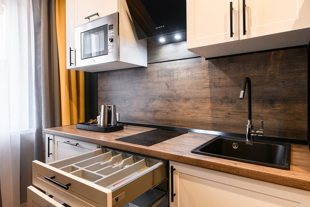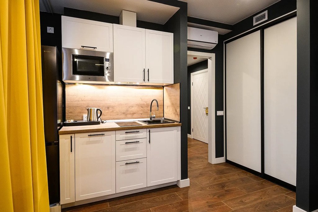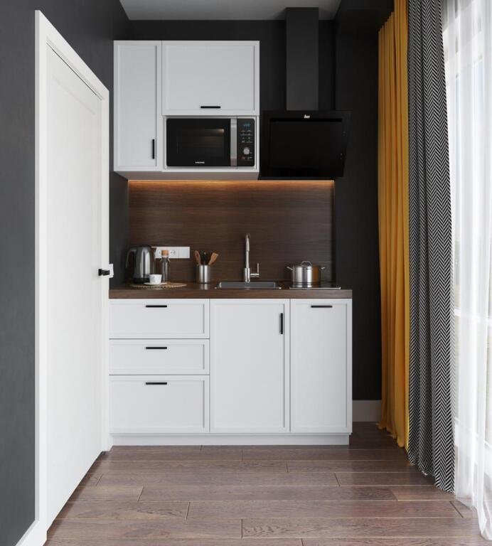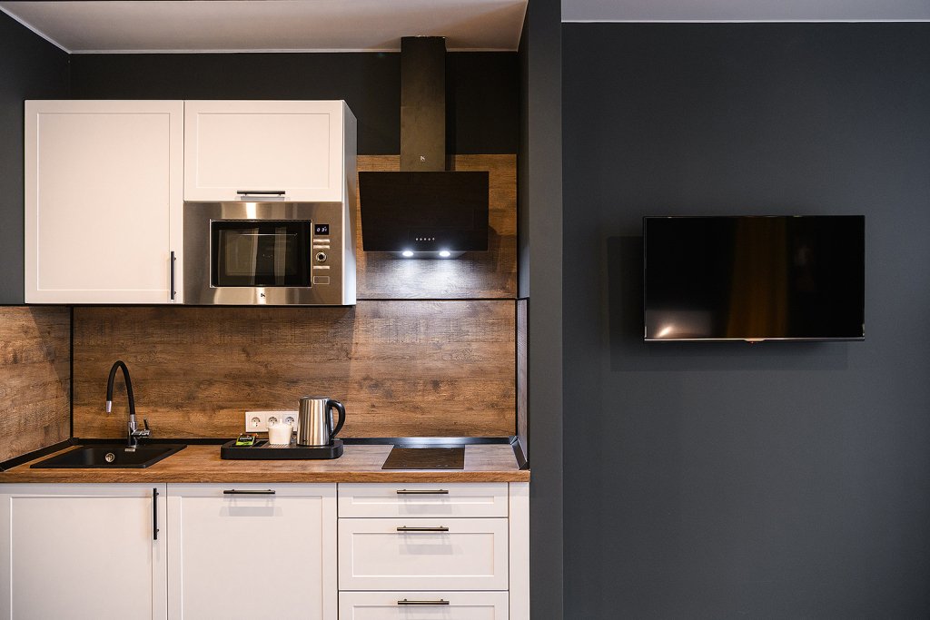 Каждый номер укомплектован для проживания и работы как на короткий, так и на длительный срок. Собственная кухня оснащена необходимой техникой: микроволновая печь, электрический чайник, плита, холодильник, посудомоечная машина и кухонная утварь для готовки. Гости всегда могут приготовить себе чай, воспользовавшись чайной станцией. В номерах есть стиральные машины, а также гладильные принадлежности и прочие мелочи, телевизор, доступ к Wi-fi. В качестве бонуса в номерах присутствуют косметические наборы, банные полотенца и тапочки, а в номерах категорий «Полулюкс» и «Люкс» также предоставляются халаты. Из номеров категории «Люкс» открывается панорамный вид города.