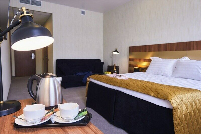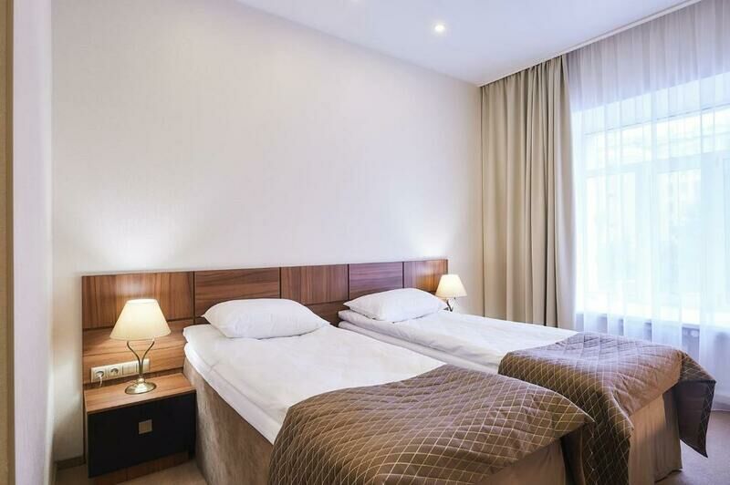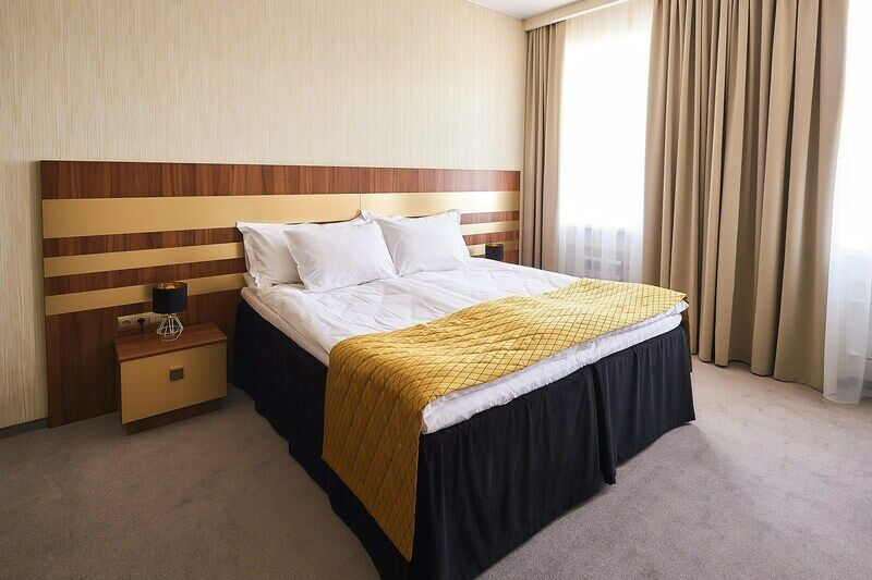 Отличный номер (брали полулюкс) - мебель свежая, всё чистое, плотные шторы, большая удобная кровать, ежедневная уборка номера в удобное время, всё необходимое