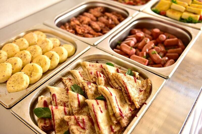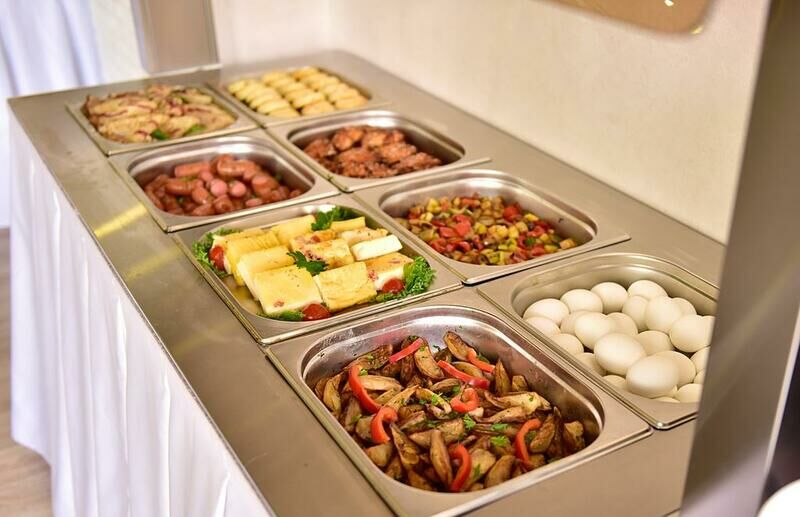 При отеле есть ресторан. Завтрак (шведский стол) проходил в одном из залов ресторана, очень понравился. Вкусно, большой выбор, приятный интерьер. Но меню рум сервиса очень скудное, буквально нечего выбрать. Комплексные обеды/ужин не брали, так как тоже не понравилось меню.
