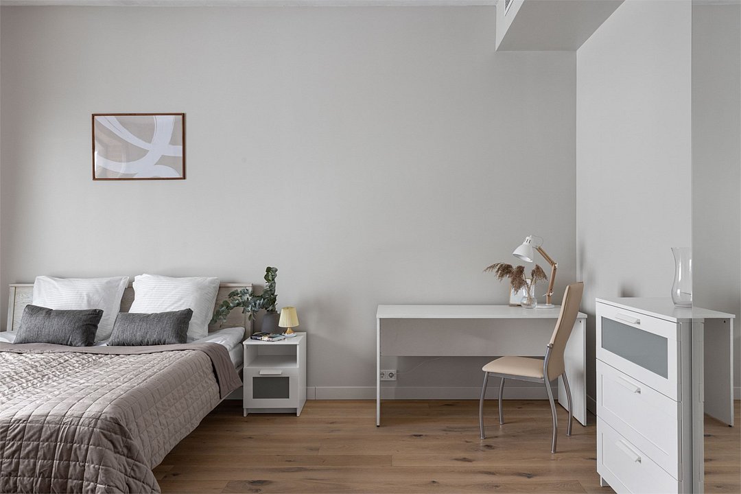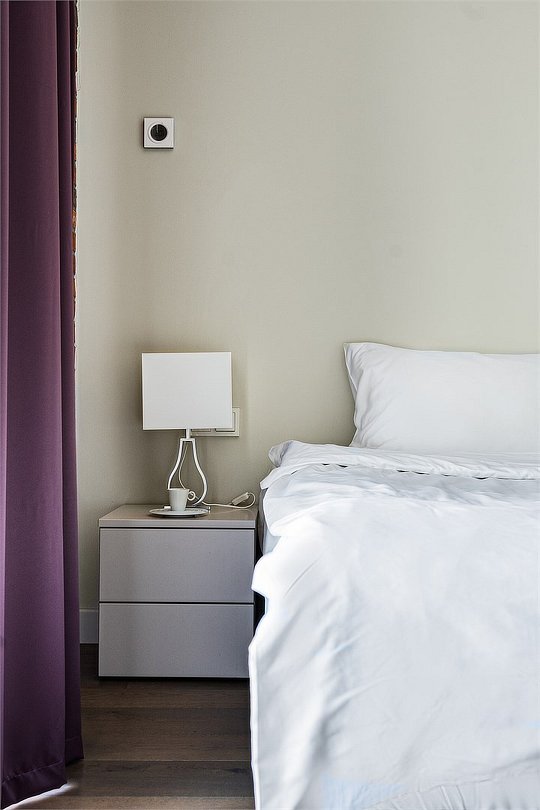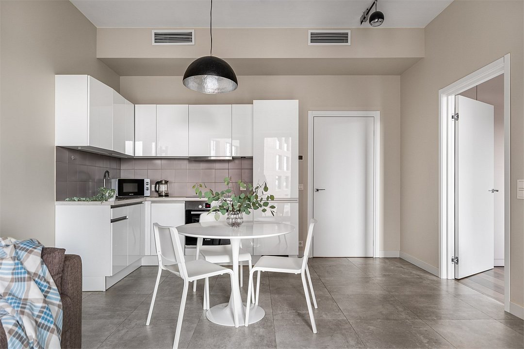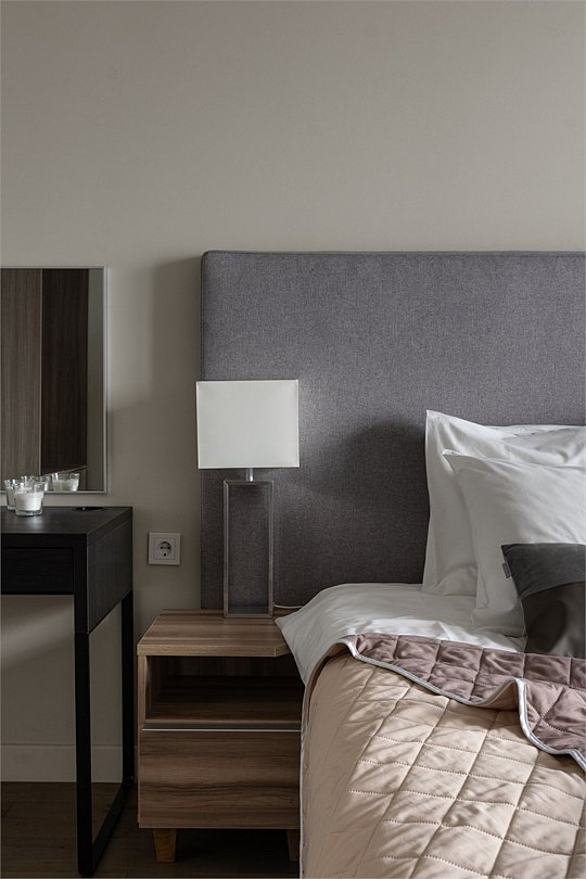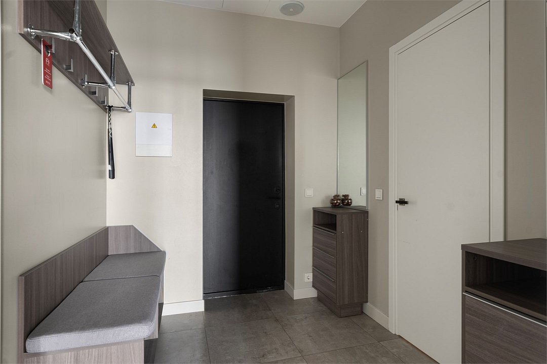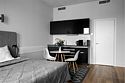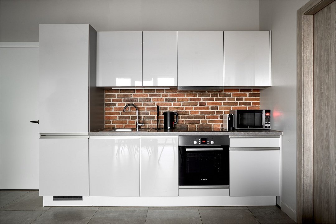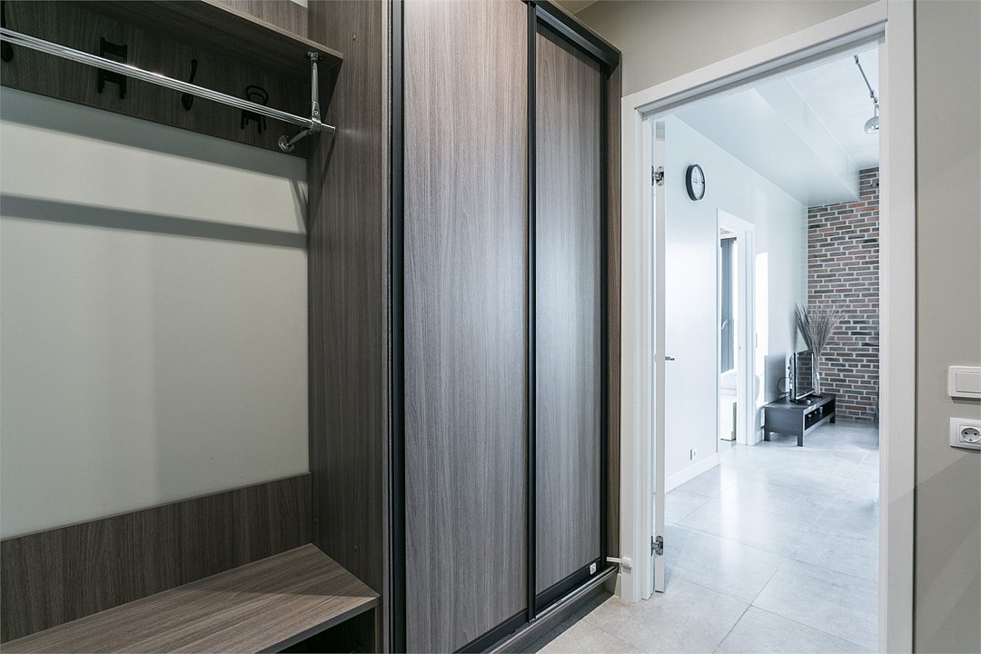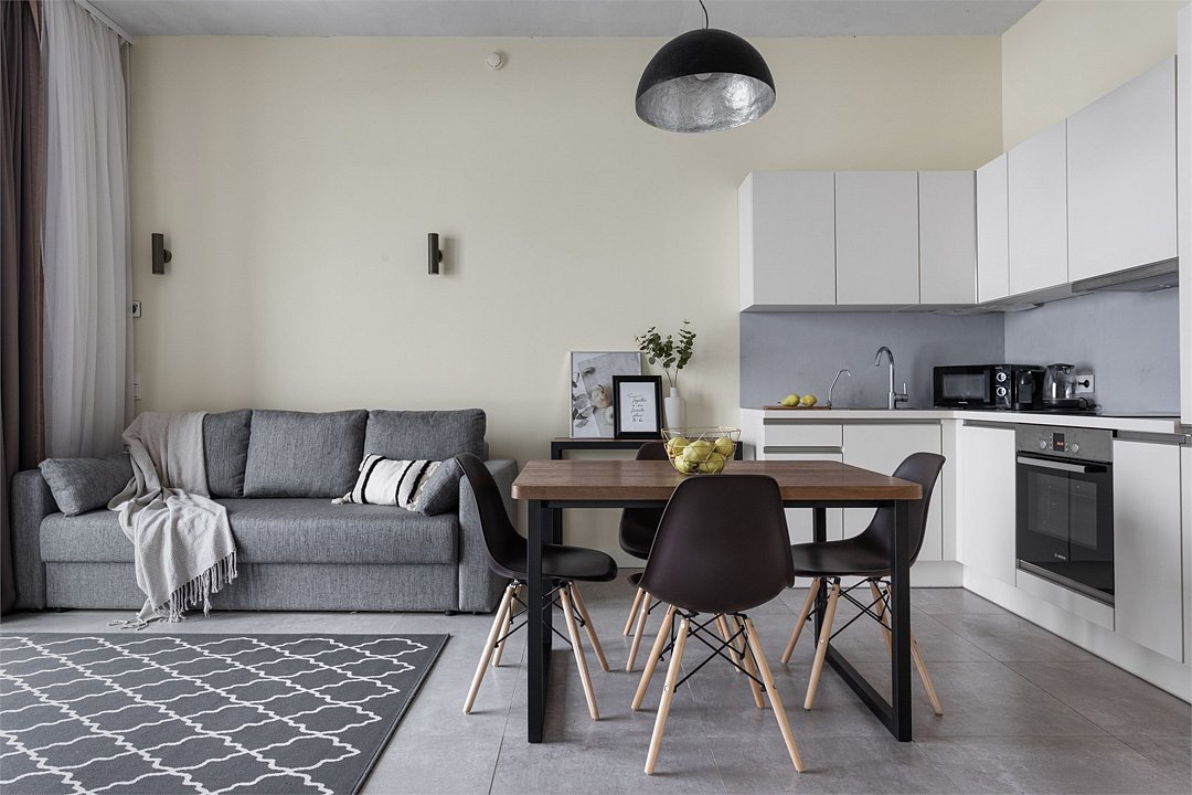 Апартаменты на 7,9 и 11 этажах площадью по 37 м² с видом на город для семейной пары с детьми или 3-х гостей Санкт-Петербурга. Высокие потолки, панорамные окна, отделка стен клинкерным кирпичом, звукоизоляция, климатконтроль. В апартаментах есть все необходимое: двуспальная кровать King size в спальне, гардеробная, удобный раскладной диван (ширина 120 см) в кухне-гостиной. Кухня оборудована бытовой техникой (плита, холодильник, чайник, микроволновка), а также посудой и столовыми приборами. В ванной комнате есть фен, гигиенические принадлежности, набор полотенец, тапочки. В стоимость проживания не включена ежедневная уборка со сменой постельного белья и полотенец — оплачивается дополнительно по запросу.Услуги и удобства