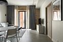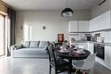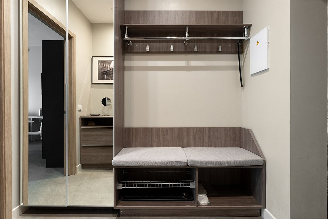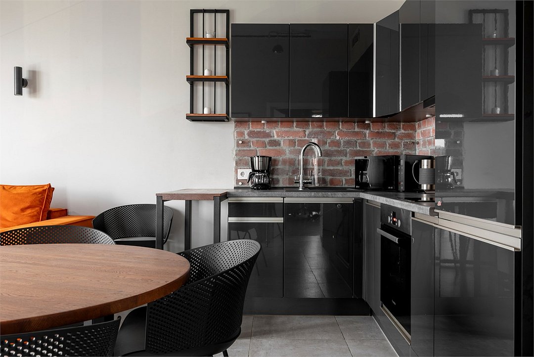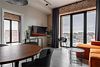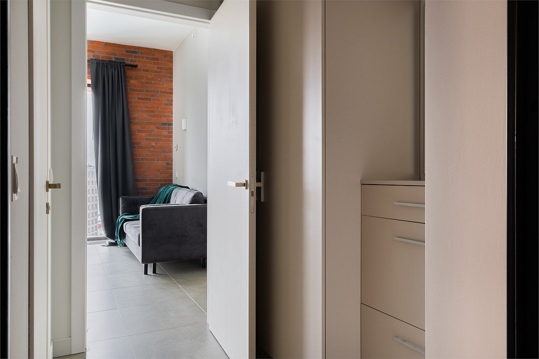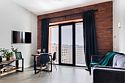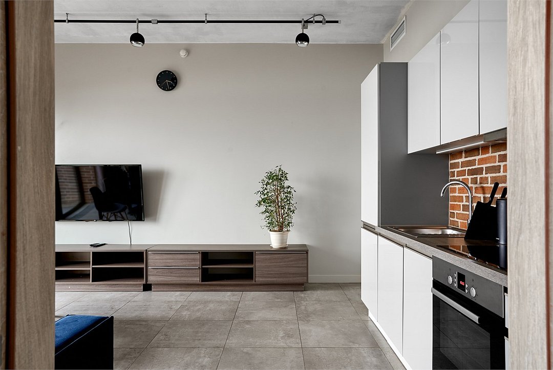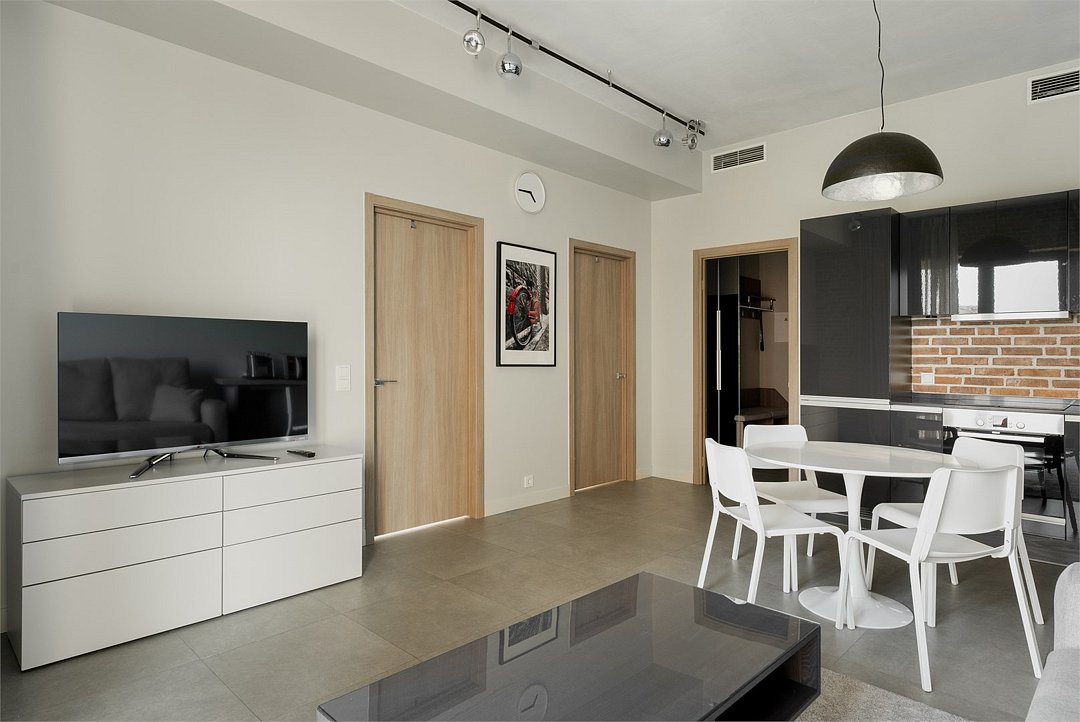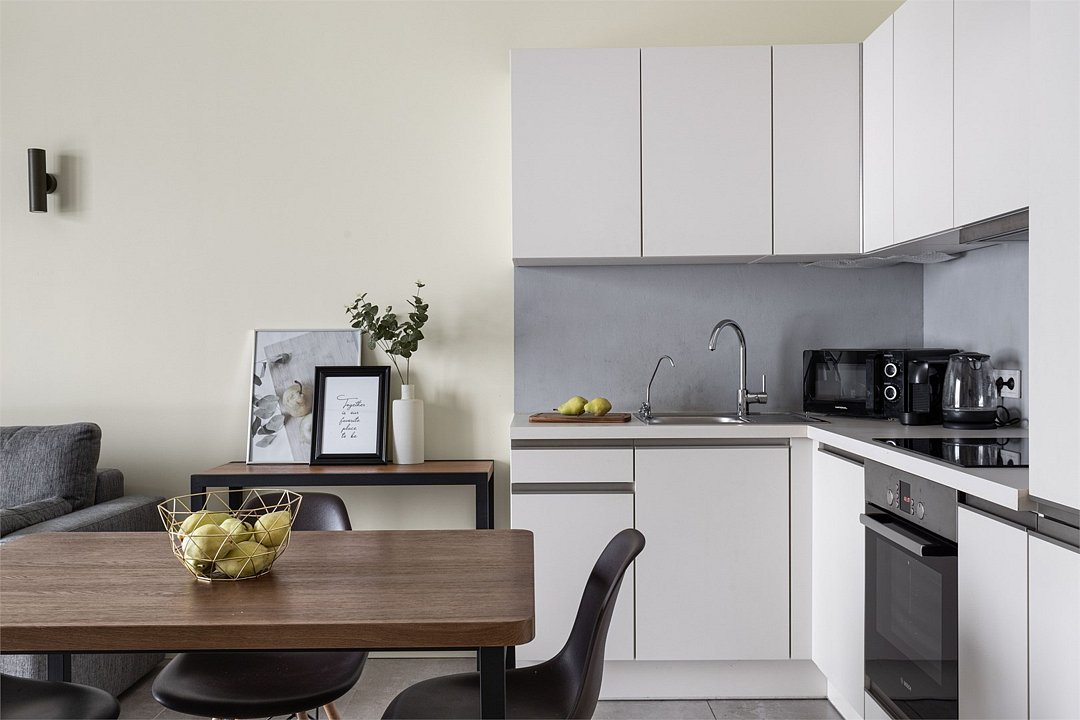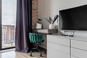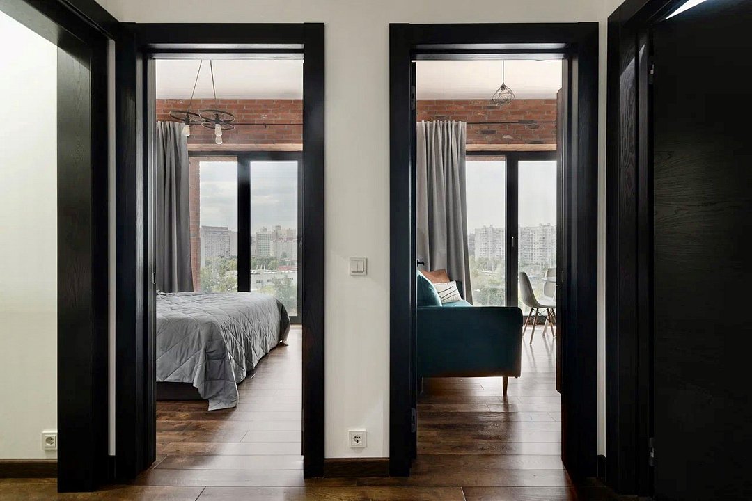 Апартаменты площадью 40м² на 7 или 11 этажах с видом на город для семейной пары с детьми или 4-х гостей — в категории фото двух апартаментов. Высокие потолки, панорамные окна, отделка стен клинкерным кирпичом, звукоизоляция, климатконтроль. В апартаментах есть все необходимое: двуспальная кровать King size в спальне, гардеробная, удобный раскладной диван (ширина 160 см) в кухне-гостиной. Кухня оборудована бытовой техникой (плита, холодильник, чайник, кофемашина, микроволновка), посудой и столовыми принадлежностями. В ванной комнате есть фен, гигиенические принадлежности и набор полотенец. В стоимость проживания не включена ежедневная уборка со сменой постельного белья и полотенец — оплачивается дополнительно по запросу.Услуги и удобства