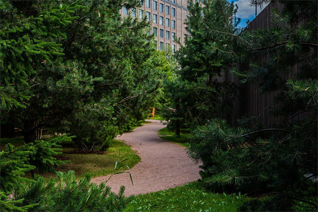 Неподалеку есть мини-парк в скандинавском стиле с деревьями и кустарниками для пеших прогулок.