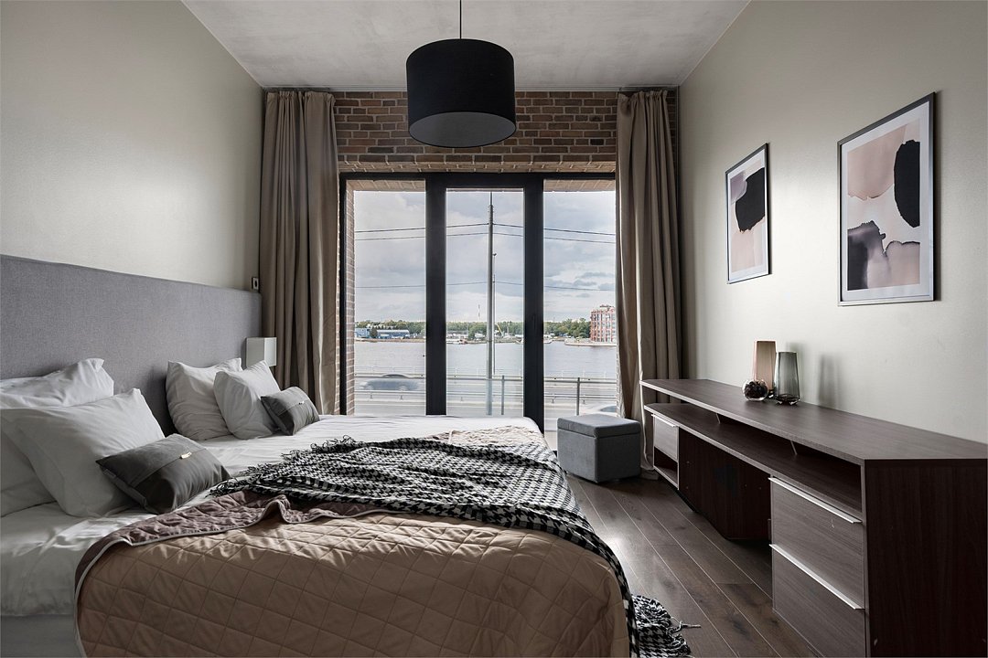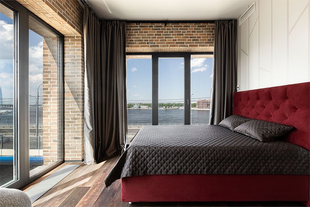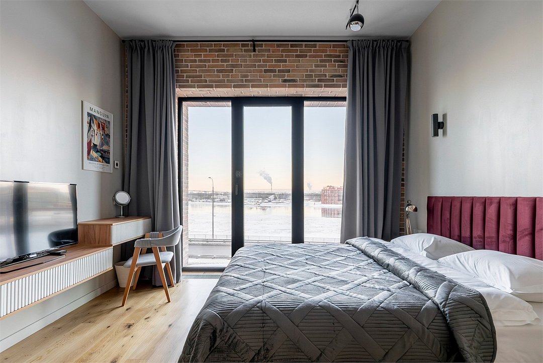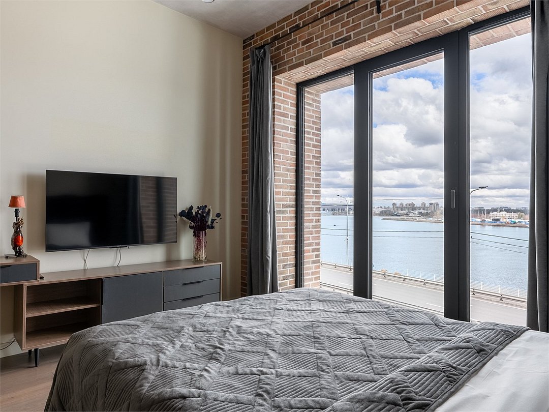 Просторные трехкомнатные Люкс апартаменты на 5 этаже площадью 70м² с шикарным панорамным видом из окон на реку Неву, Газпром Арену и Лахта- Центр для семейной пары с детьми или 5-ти гостей Санкт-Петербурга! Высокие потолки, панорамные окна, потрясающий вид из окон на реку, отделка стен клинкерным кирпичом, звукоизоляция, климатконтроль, ортопедические матрасы — сделают ваш отдых незабываемым! В апартаментах есть все необходимое: две двуспальные кровати в 2-х спальнях с удобными ортопедическими матрасами, мягкий раскладной диван для 5-го гостя в кухне-гостиной, большой телевизор с функцией Smart TV. Кухня оборудована всей бытовой техникой (плита, холодильник, чайник, микроволновка), посудой и столовыми приборами, а также капсульной кофемашиной c приветственным набором капсул. В ванной комнате: душевая, фен, гигиенические принадлежности, набор полотенец, стиральная машина, тапочки. В стоимость проживания не включена ежедневная уборка со сменой постельного белья и полотенец — оплачивается дополнительно по запросу.Услуги и удобства