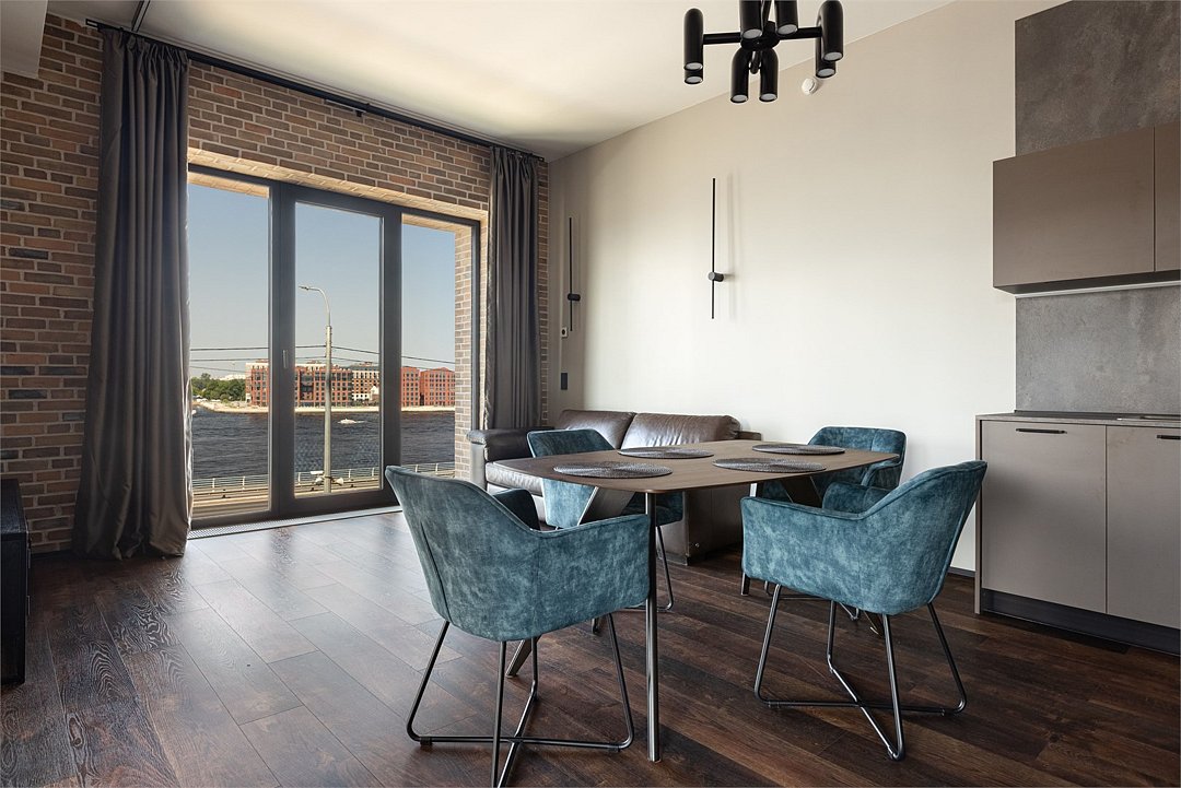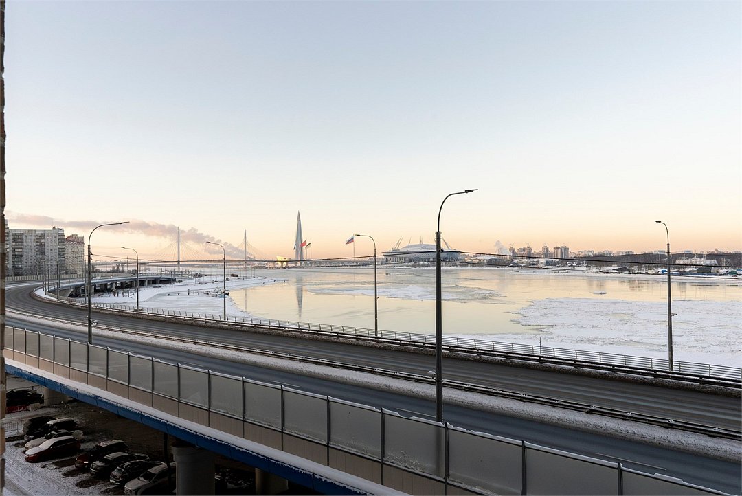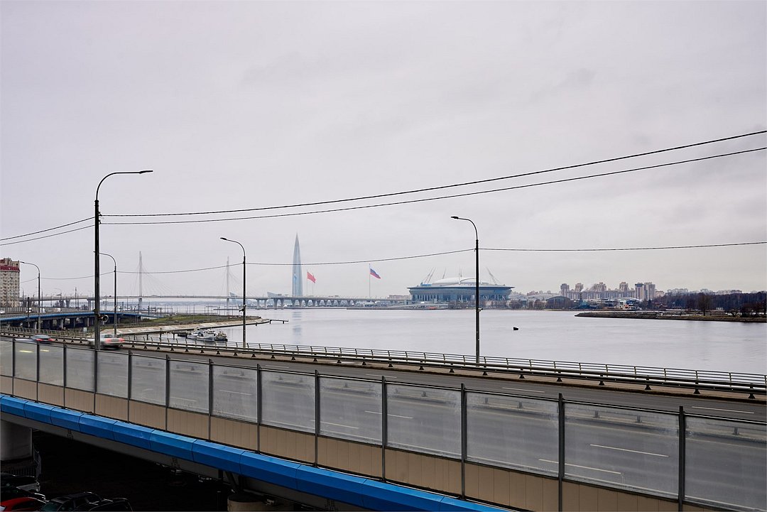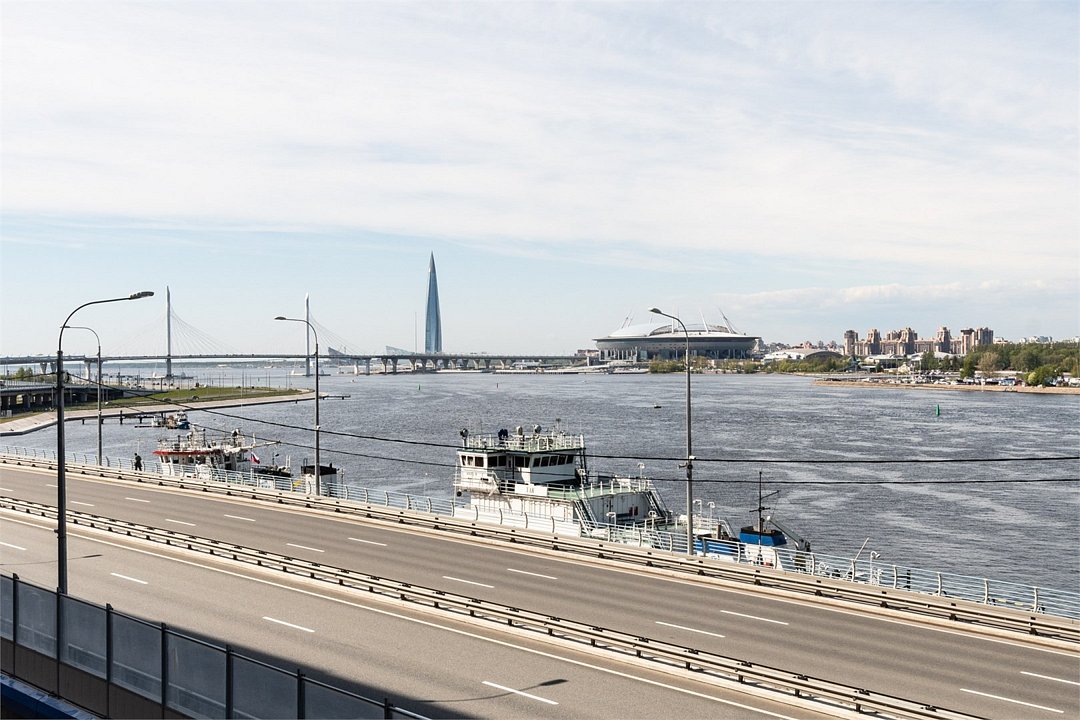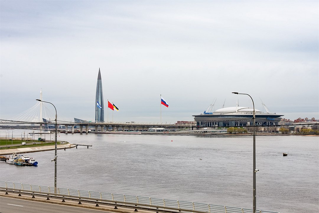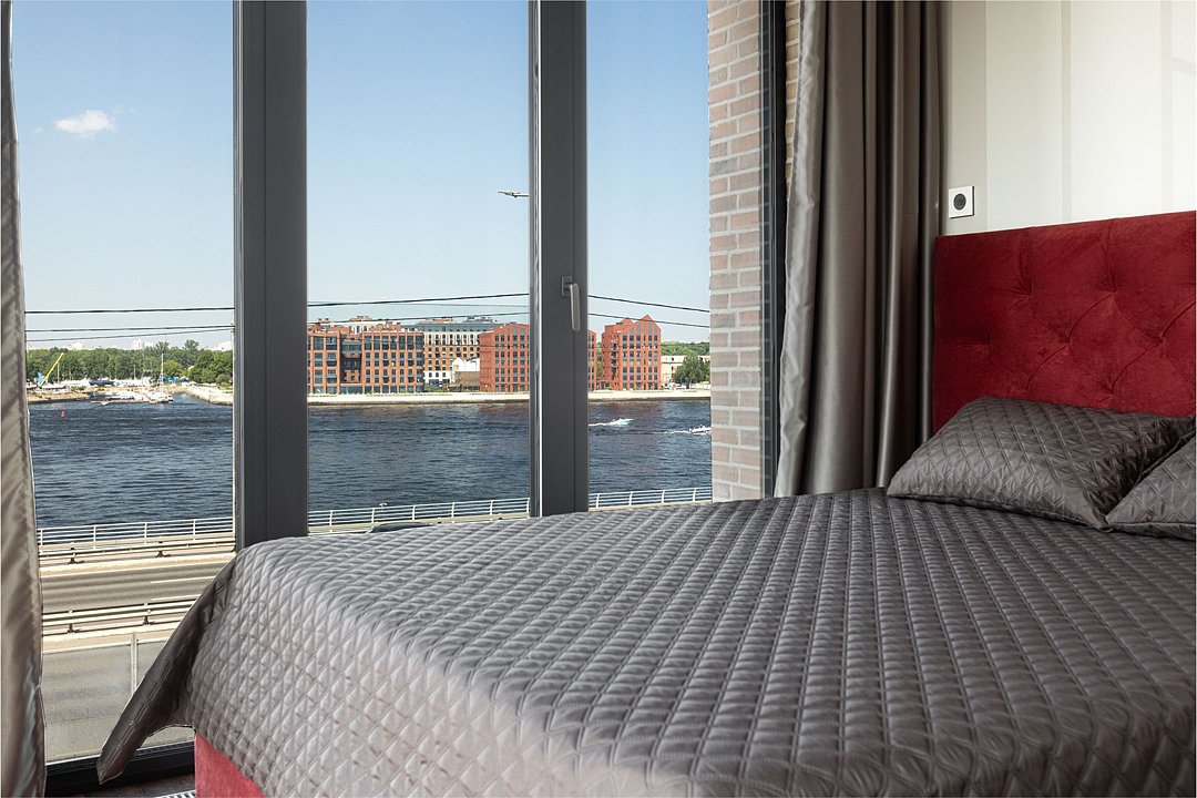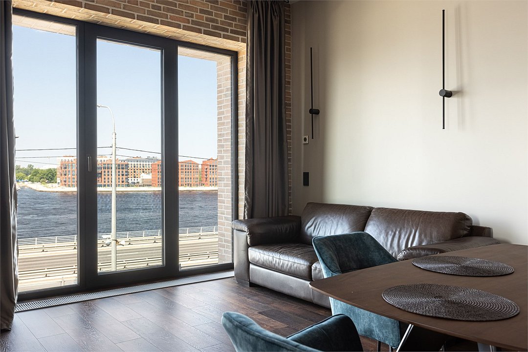 Просторный Люкс апартамент на 4 этаже площадью 60м² с видом из окон на реку Неву, Газпром Арену и Лахта Центр для семейной пары с детьми или 4-х гостей Санкт-Петербурга! Высокие потолки, панорамные окна, отделка стен клинкерным кирпичом, звукоизоляция, климатконтроль. В апартаментах есть все необходимое: двуспальная кровать в спальне, гардеробная с утюгом и гладильной доской, удобный раскладной диван (ширина 160 см) в кухне-гостиной, большой телевизор с функцией Smart TV, техника (плита, холодильник, чайник, кофемашина, микроволновка, стиральная машина), посуда, столовые приборы, фен, гигиенические принадлежности, набор полотенец, тапочки. В стоимость проживания не включена ежедневная уборка со сменой постельного белья и полотенец — оплачивается дополнительно по запросу.Услуги и удобства