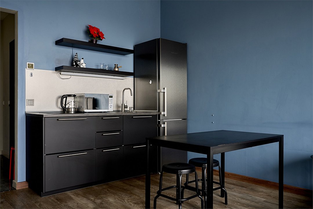 Семейные апартаменты на 6 этаже или 5 этаже площадью по 70м² c 2-мя спальнями и кухней-гостиной с видом из панорамных окон на тихий внутренний двор лофт-квартала идеально подойдут для семейной пары с детьми или 6-ти гостей. Высокие потолки, панорамные окна, отделка стен клинкерным кирпичом, звукоизоляция, климатконтроль. В апартаменте есть все необходимое: 2 двуспальные кровати в спальнях, удобный раскладной диван (шириной 150 см), просторная кухня- гостиная. Кухонная зона: обеденная группа, плита, микроволновая печь, холодильник, чайник, посуда, столовые приборы, капсульная кофемашина c набором капсул. Гардеробный шкаф с утюгом и гладильной доской. В ванной комнате фен, гигиенические принадлежности и набор полотенец, стиральная машина. В стоимость проживания не включена ежедневная уборка со сменой постельного белья и полотенец — оплачивается дополнительно по запросу.Услуги и удобства