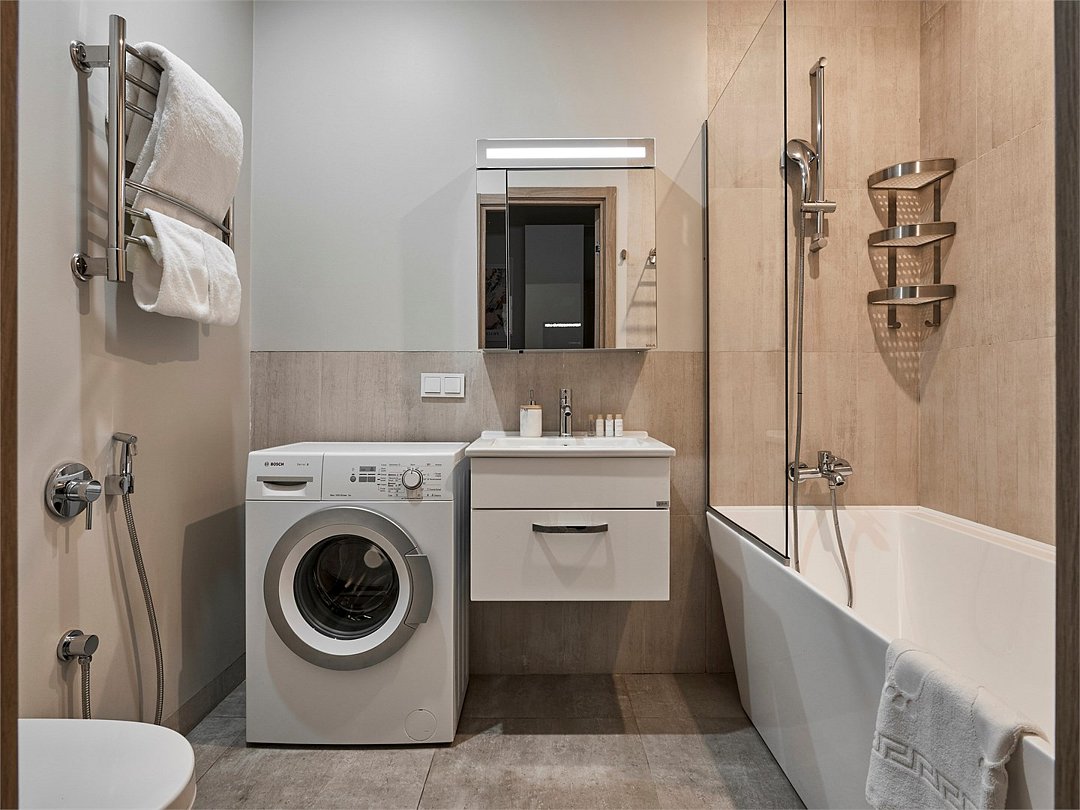 Во всех номерах исправно работает сеть Wi-Fi. На полностью оборудованных кухнях имеются стиральные машины, микроволновки, посудомоечные машины, холодильники, обеденный стол, посуда, электрочайник. В спальнях предусмотрен климат-контроль, установлены телевизоры. В ванной комнате постояльцев обнаружат бесплатные наборы косметики для душа и туалетные принадлежности.