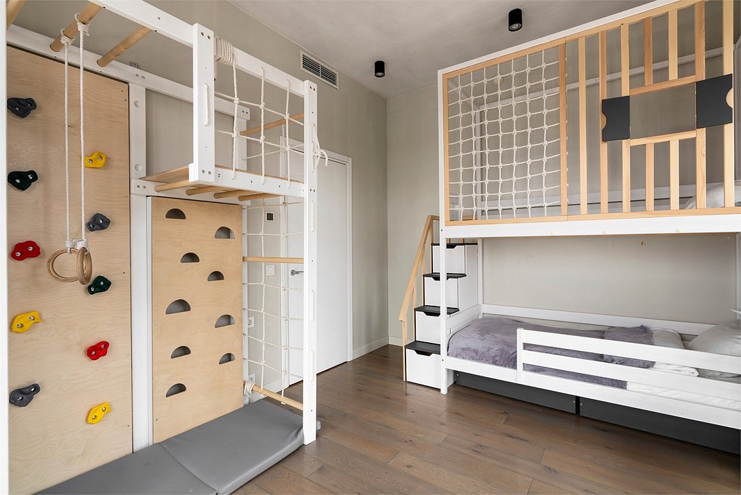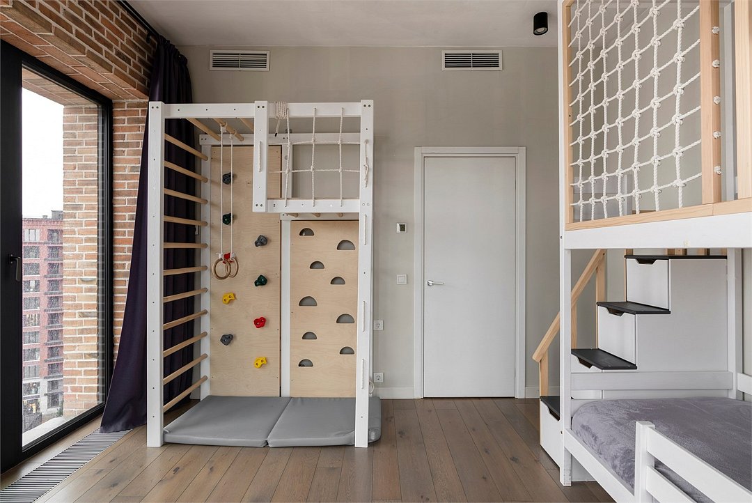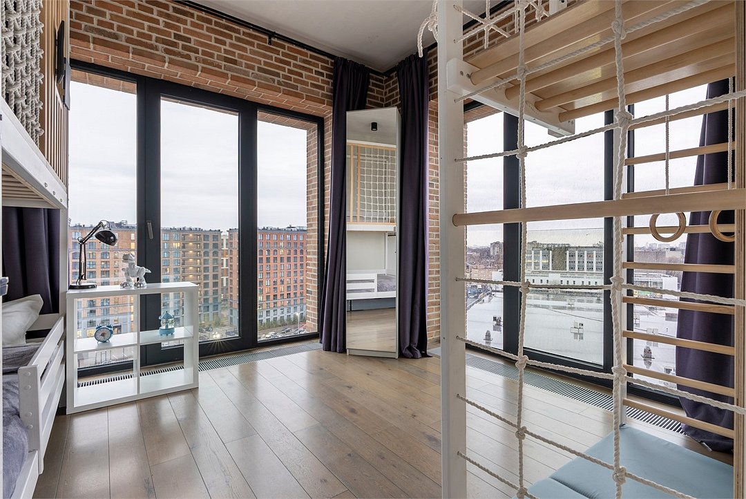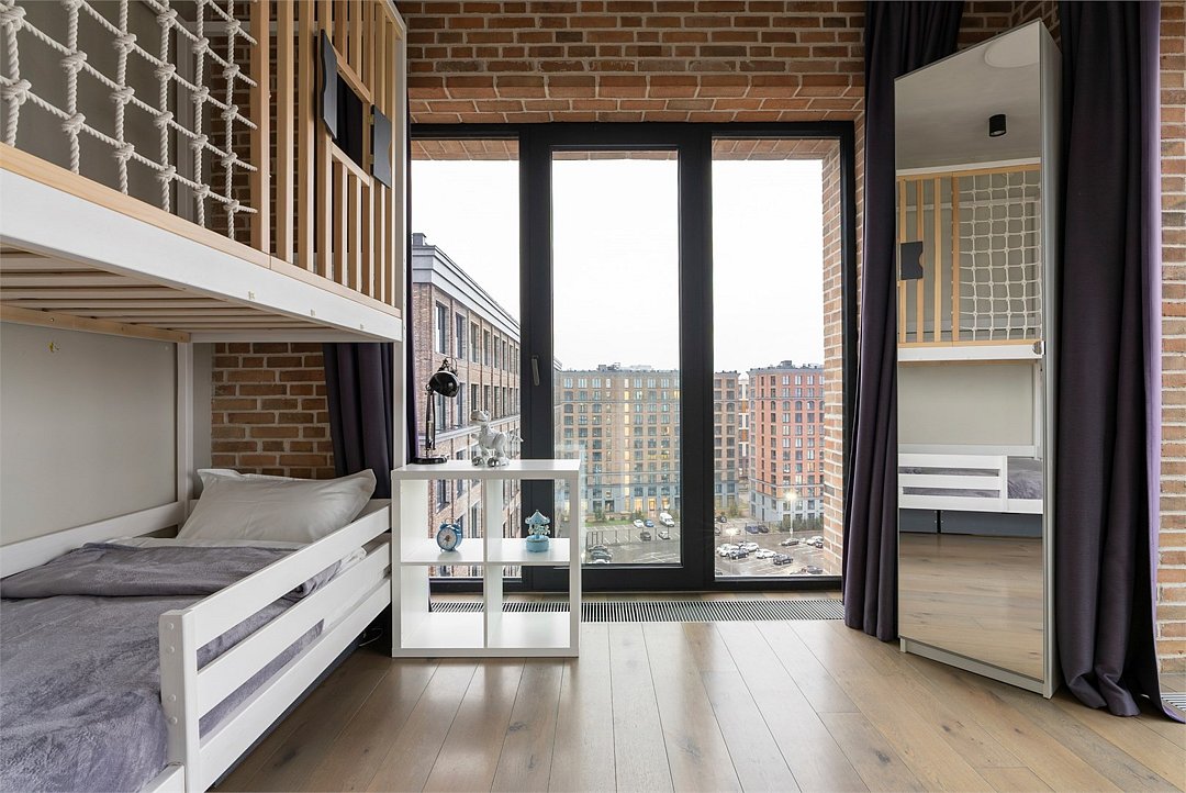 Эксклюзивный апартамент с ДЕТСКОЙ комнатой на 10 этаже площадью 70 м² c 2-мя спальнями и кухней-гостиной с видом из панорамных окон на тихий внутренний двор лофт-квартала и на историческую часть Петербурга идеально подойдет для семейной пары с детьми до 6-ти гостей. Детская комната, которая станет любимым местом ваших детей: мебель из экологичных материалов, спортивный комплекс и двухъярусная кровать в морском стиле. В апартаменте есть все необходимое: климатконтроль, двуспальная кровать King size и двухъярусная кровать в детской, удобный раскладной диван (шириной 160 см), просторная кухня-гостиная с обеденной группой, индукционная плита, духовка, микроволновая печь, холодильник, чайник, посуда, столовые приборы, кофеварка, гардеробный шкаф с утюгом и гладильной доской, душевая, фен, гигиенические принадлежности, набор полотенец, стиральная и сушильная машины, тапочки. В стоимость проживания не включена ежедневная уборка со сменой постельного белья и полотенец — оплачивается дополнительно по запросу.Услуги и удобства