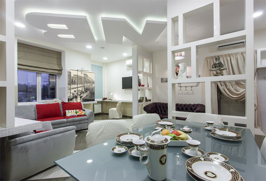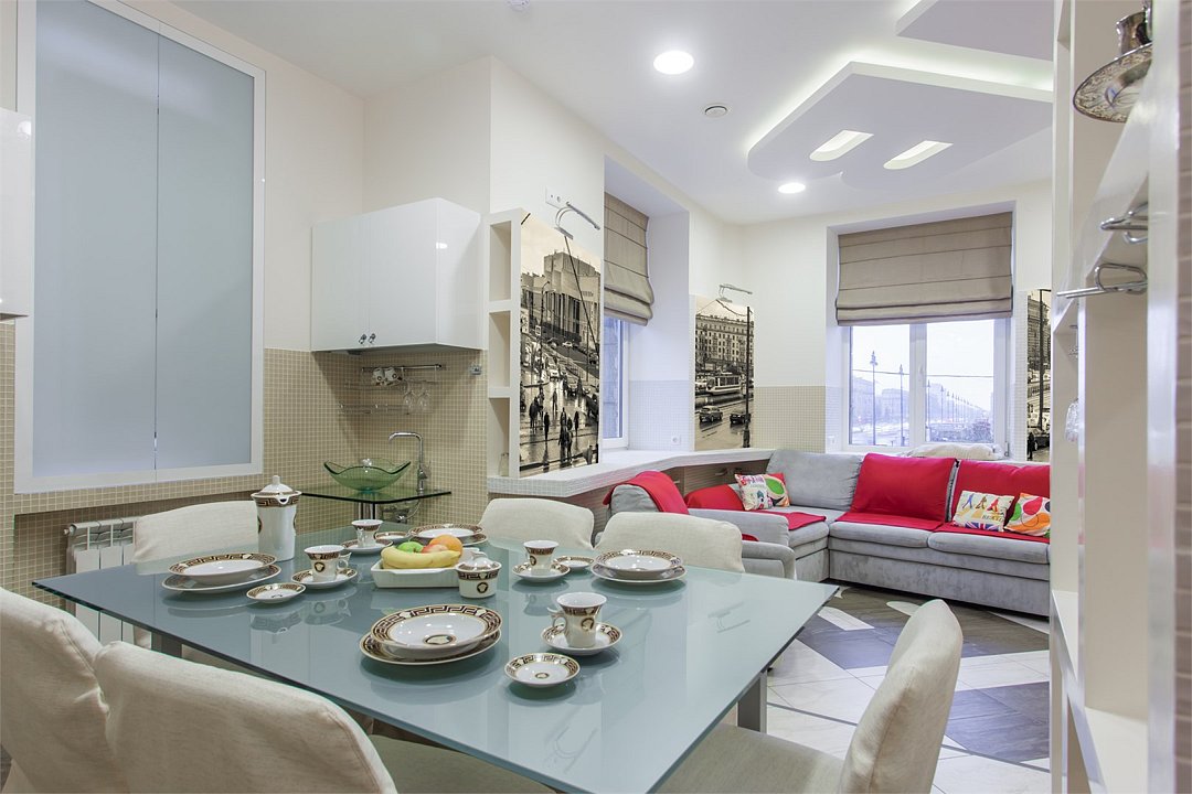 Комфортабельные апартаменты с двумя спальнями и большой общей зоной, которая совмещает в себе гостиную, обеденную и кухонную зоны. Также в общей зоне располагаются два раскладных дивана. Апартаменты оборудованы всем необходимым для комфортного проживания. Из окон открывается вид на Московский проспект, Российскую национальную библиотеку и Парк Победы.Услуги и удобства