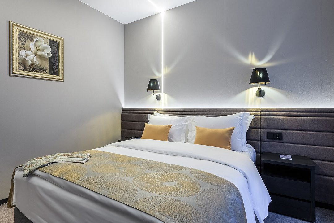 Стильный и удобный номер площадью 23 кв.м. оснащен всем необходимым для плодотворной работы и отдыха. Мы рады предложить одну двуспальную кровать. В номере: рабочая зона, ЖК-телевизор, беспроводной интернет, мини-бар, чайная станция, бутилированная вода, гладильные принадлежности и сейф. Ванная комната оснащена душевой кабиной, набором индивидуальных банных принадлежностей, а также феном. В стоимость проживания включено безлимитное посещение гидротермального комплекса по предварительной записи (для посещения с детьми действуют ограничения). Для путешествующих на автомобиле наземная парковка предоставляется бесплатно при наличии мест.Услуги и удобства