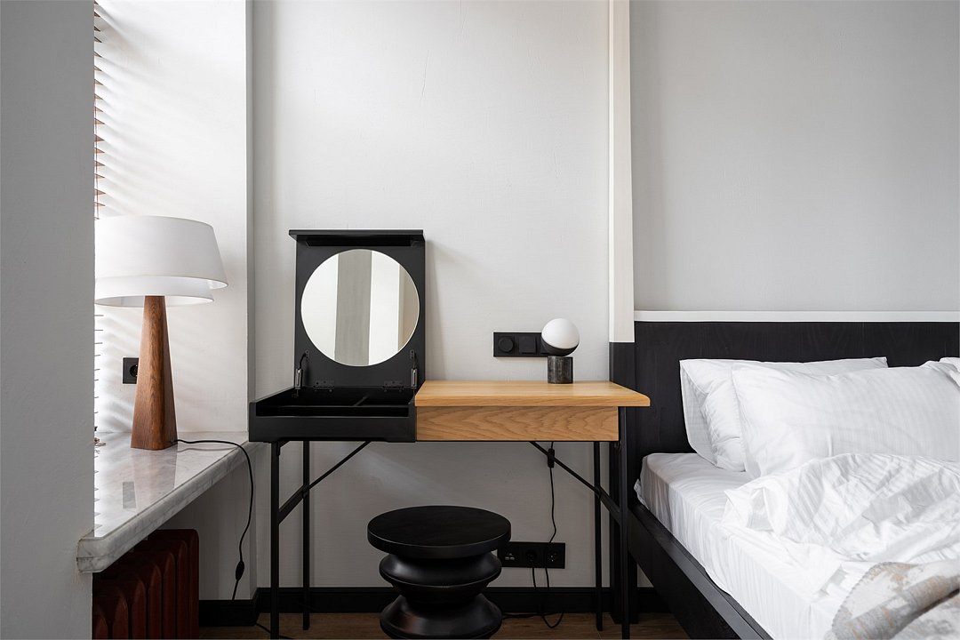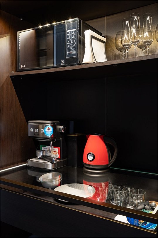Wi-Fi, интернет, холодильник, светильник, настольные лампы, фен, вентилятор, система безопасности, электронные замки, плита для приготовления пищи, кофемашина, микроволновая печь, утюг, ванна, санузел, халаты, банные полотенца, тапочки, гигиенические средства, двуспальная кровать, гладильная доска, тумбы, стулья, шкаф для одежды, вешалки, обеденный стол, зеркало, эксклюзивная мебель, кухня, чайный набор, набор посуды, чайник, отопление, душ, вид на город, плиточное покрытие, высокие потолки, кухонная посуда, стаканы, кухонная утварь, столовые приборы, туалетный столик, стол, туалетные средства, раскладной диван, мини-холодильник, телевизор со Smart TV, теплые полы, usb порт, рабочий столВ аппартаментах
