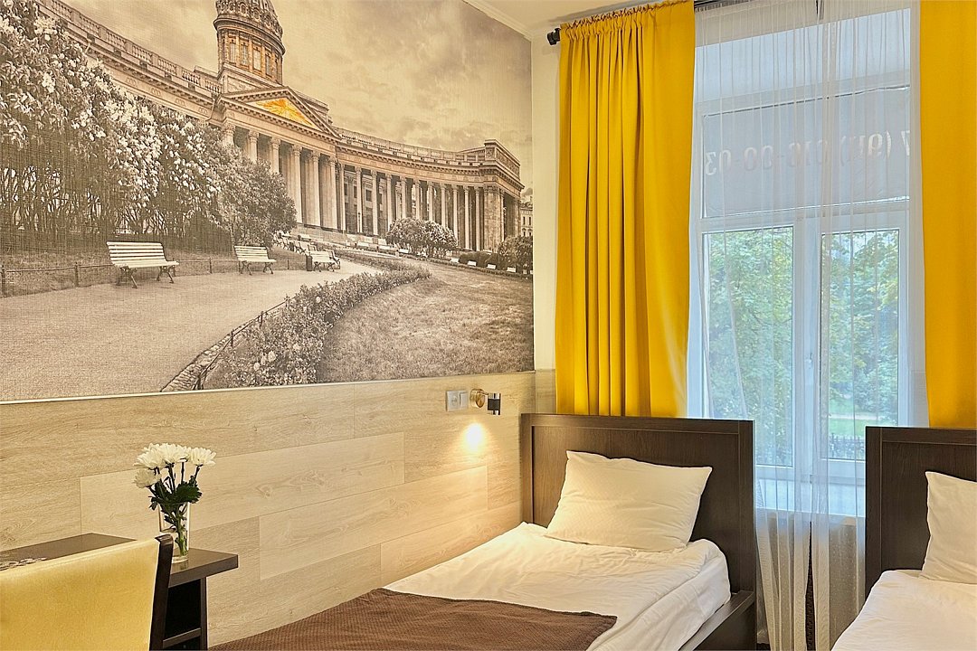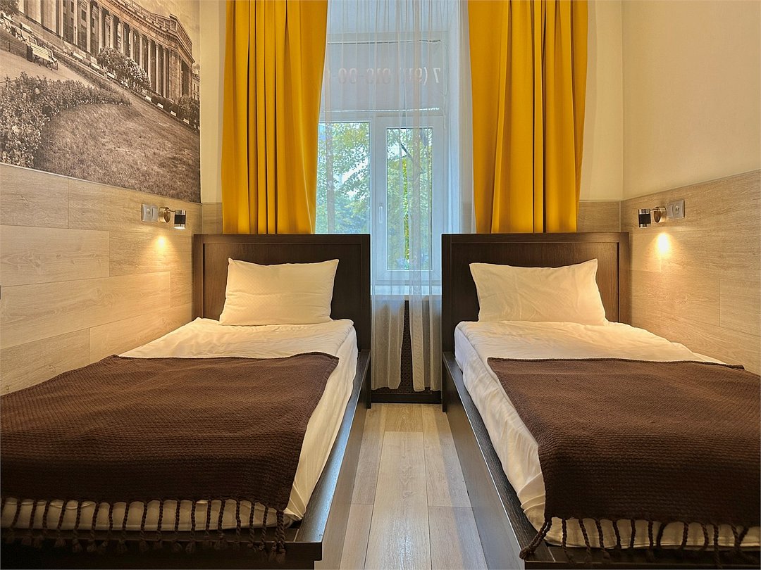 Стандартный номер с двумя полуторными кроватями. Можно сложить в одну.Услуги и удобства