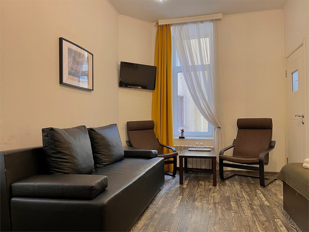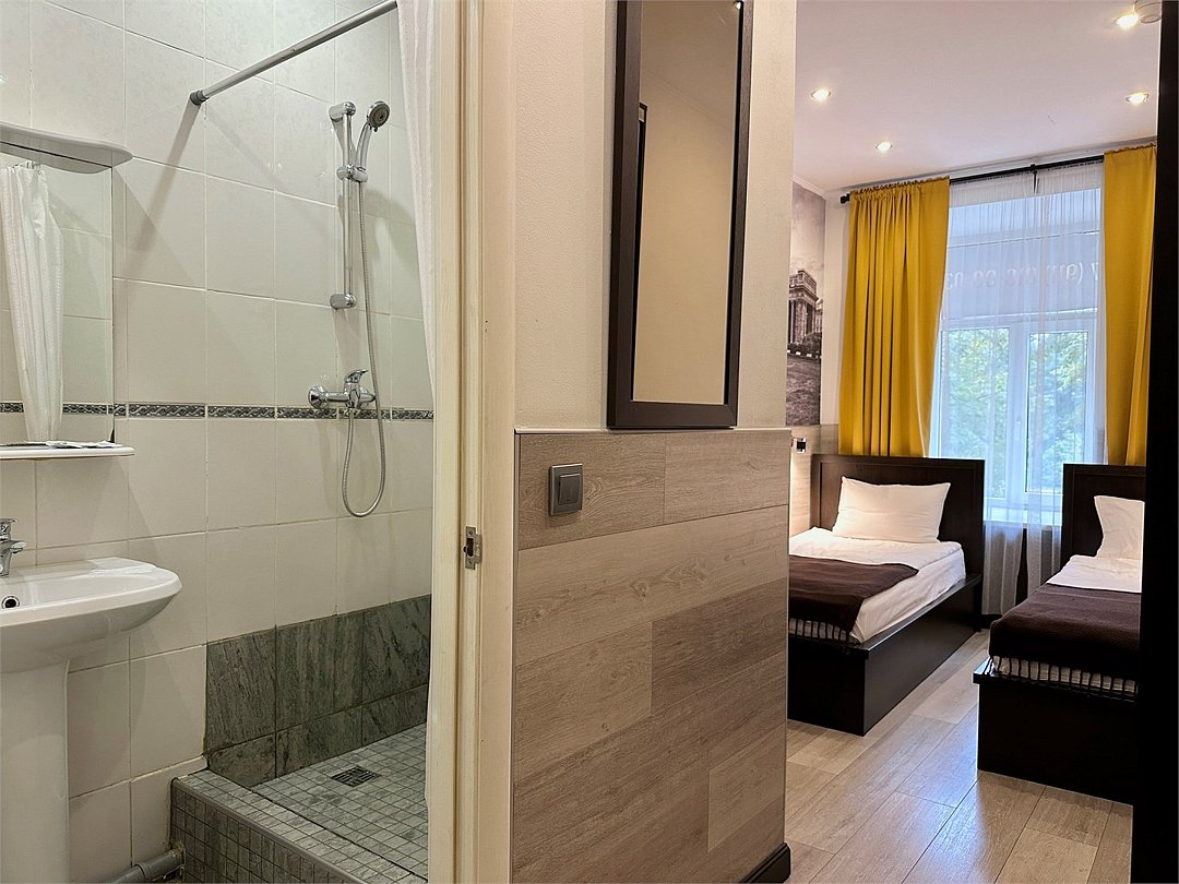 Увеличенный улучшенный номер рассчитанный на группы от двух до четырёх человек. Подойдёт для экономного заселения семьёй. Два из трёх выходят окнами во двор.Услуги и удобства