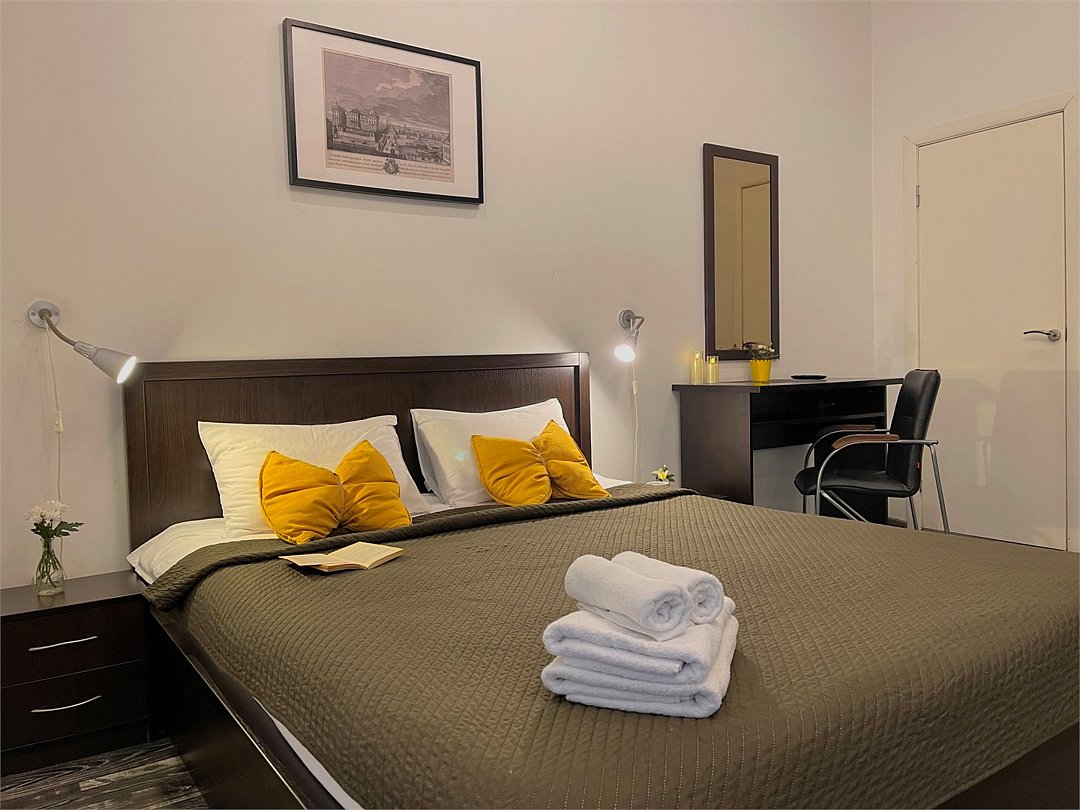 кабельное телевидение, Wi-Fi, фен, обогреватель, ванная комната, банные полотенца, тапочки, гигиенические средства, двуспальная кровать, тумбы, стулья, шкаф для одежды, вешалки, журнальный столик, зеркало, раковина, отопление, душ, кулер на этаже, стаканы, стиральная машина и сушилка, стол, туалет, диван-кровать, раскладное кресло, москитная сетка, уборка номера, мыло, затемняющая штора, можно с питомцамиВ номере
