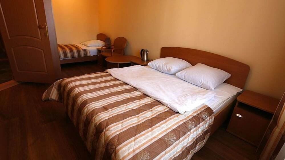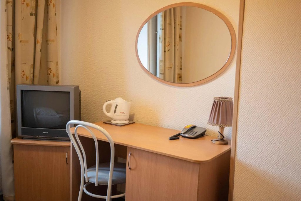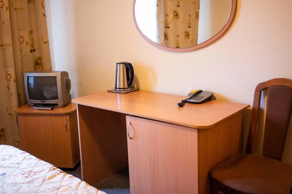 Номер уютно обставлен и оснащён необходимым, чтобы отдохнуть после долгого и насыщенного дня. Имеются телевизор и халат. Перечисленные услуги есть не во всех номерах.