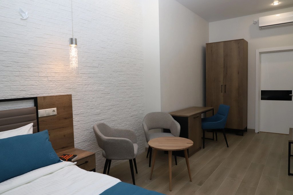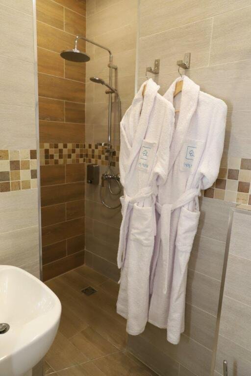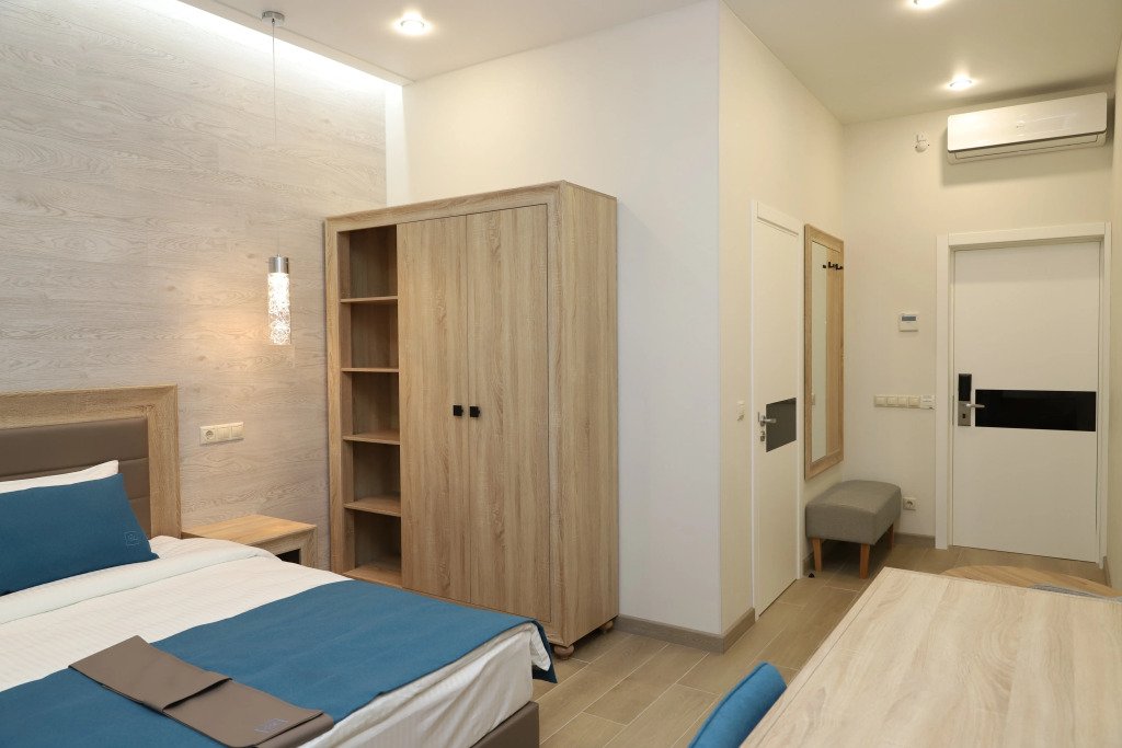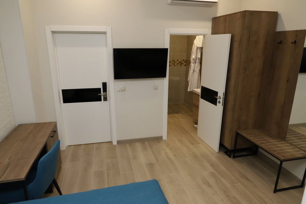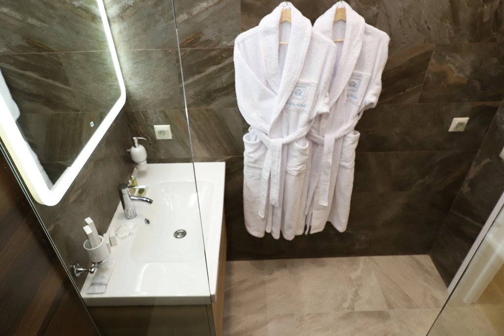 В номере вас будут ждать телевизор, мини-бар и халат. Перечисленные услуги есть не во всех номерах.